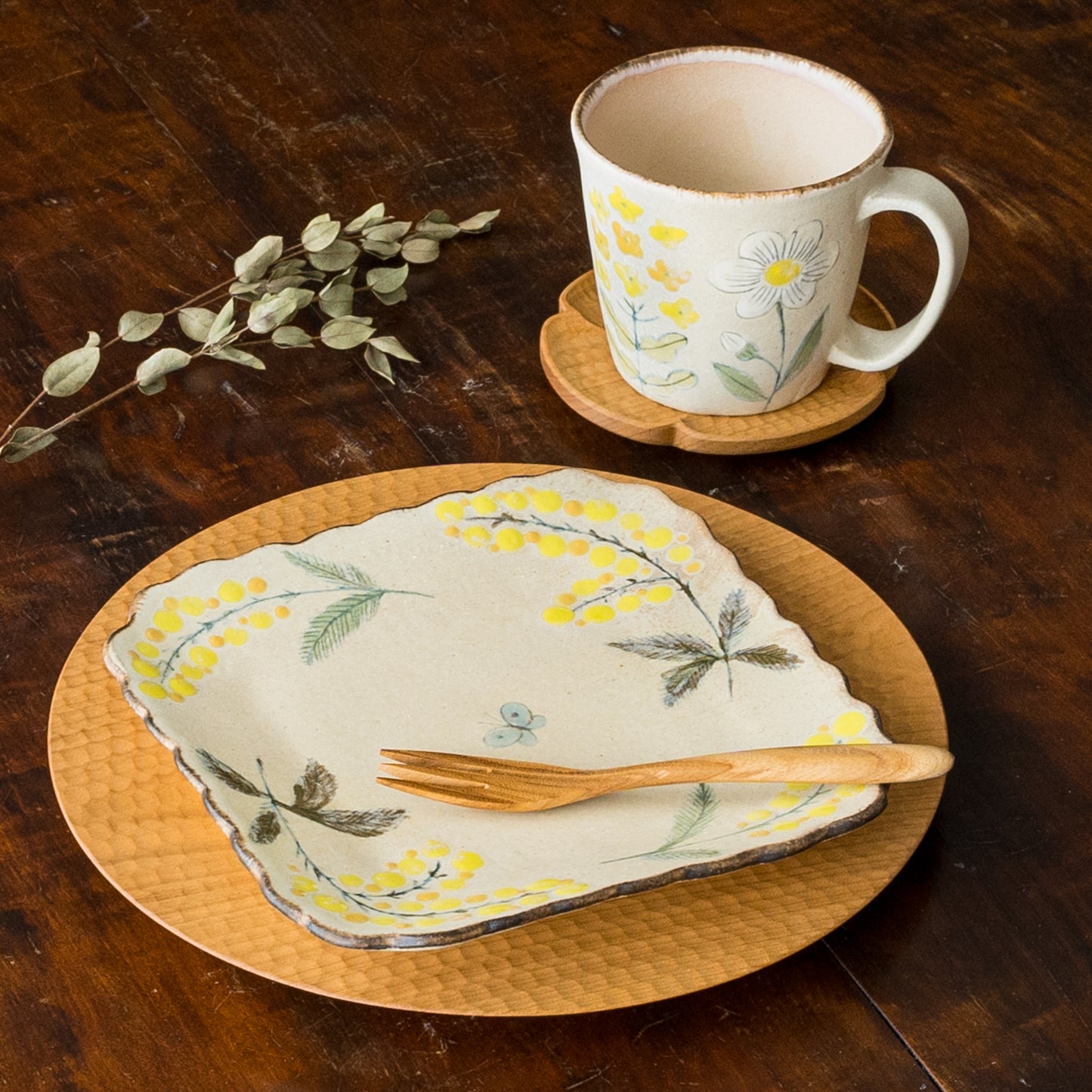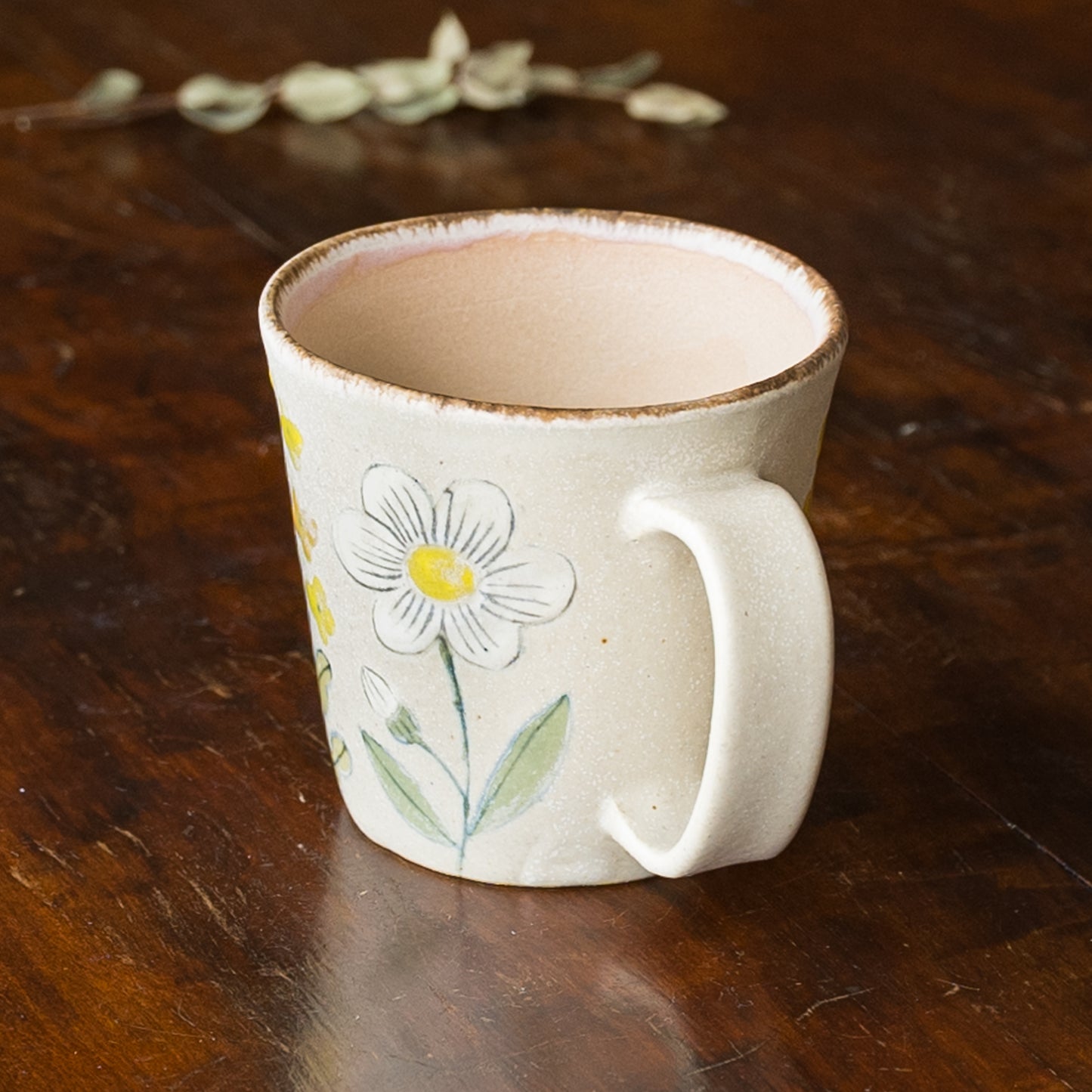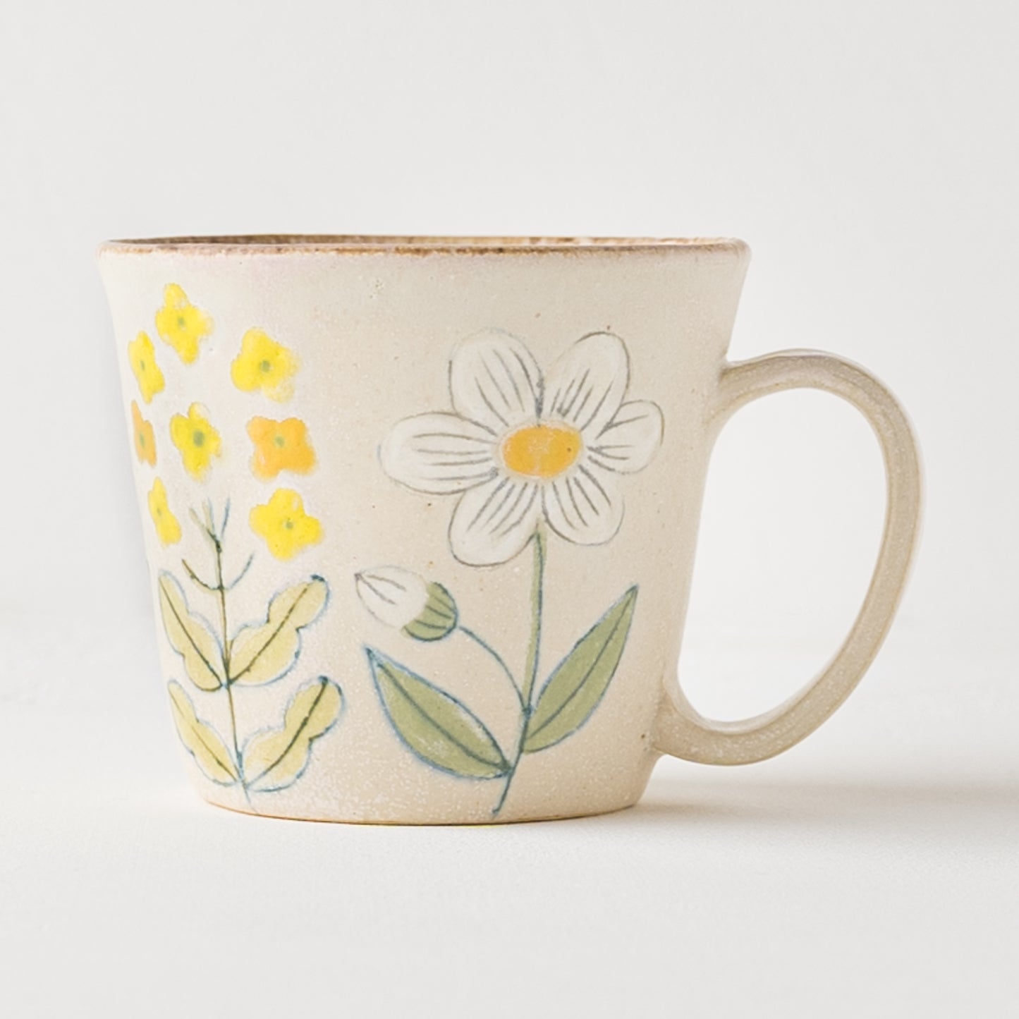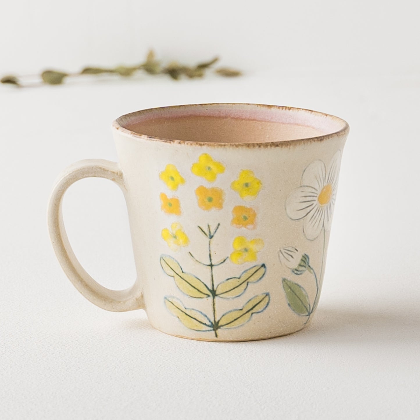 ふんわり優しいお花模様のうつわやカップが食卓に置いてあるだけで、ぱっと明るく彩ってくれます。淡く優しい風合いの模様と色味のマグがあると明るく軽やかな気持ちにしてくれます。
