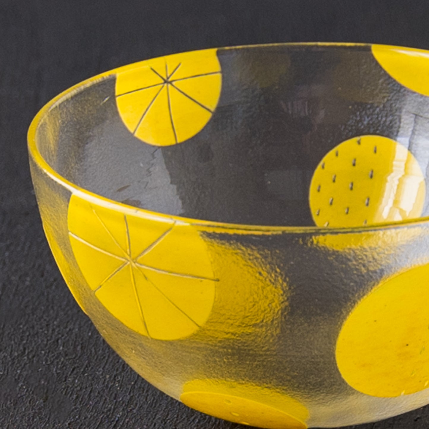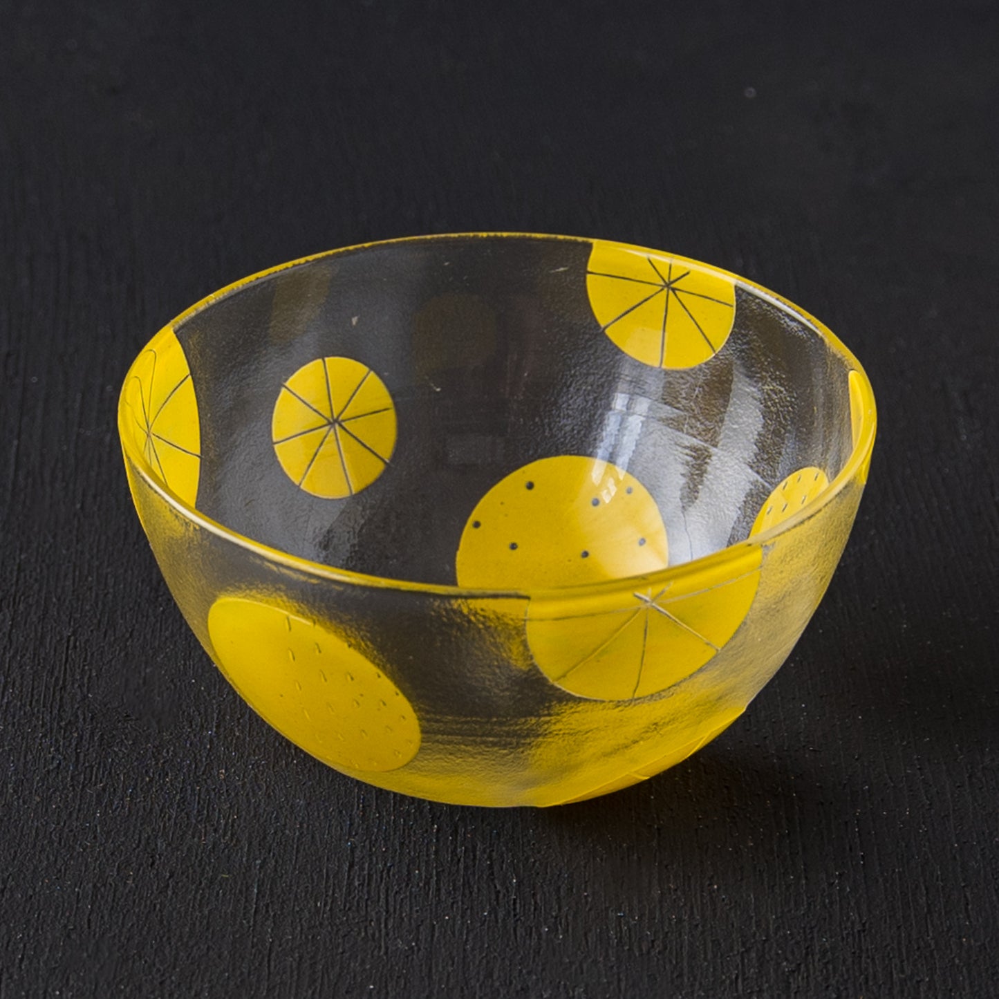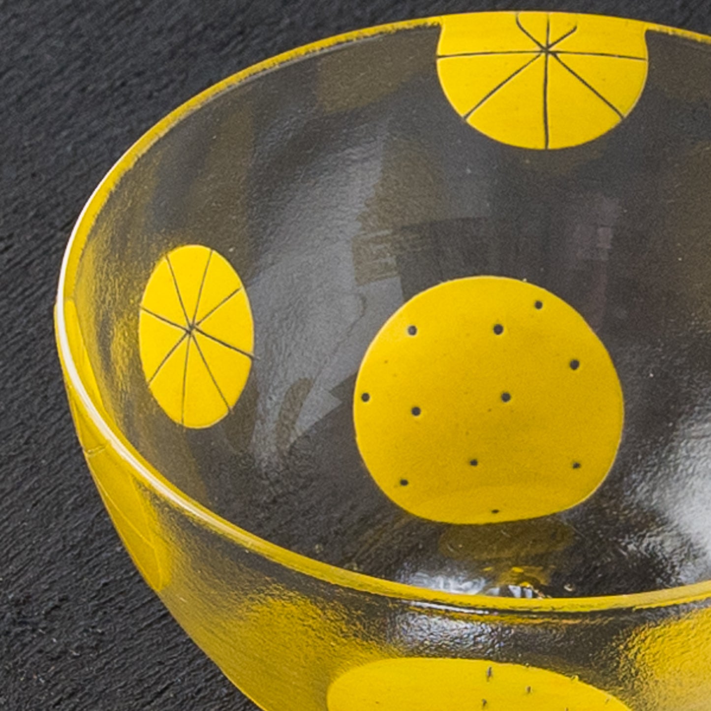 まあるいフォルムがなんとも愛らしいボウル。ドットや破線、ラインの入った立体感のある爽やかな黄色い水玉模様もスタイリッシュで素敵です。