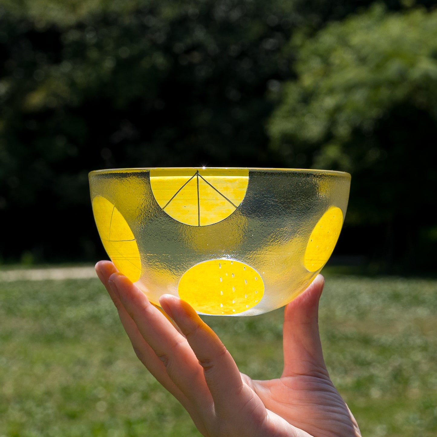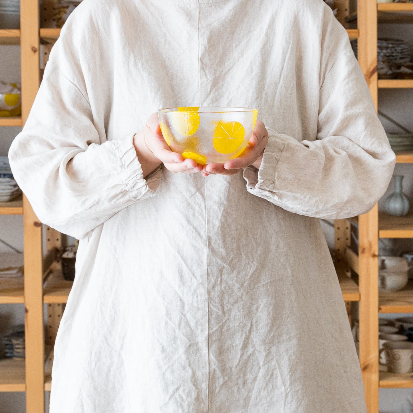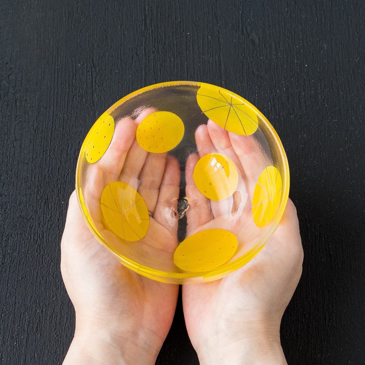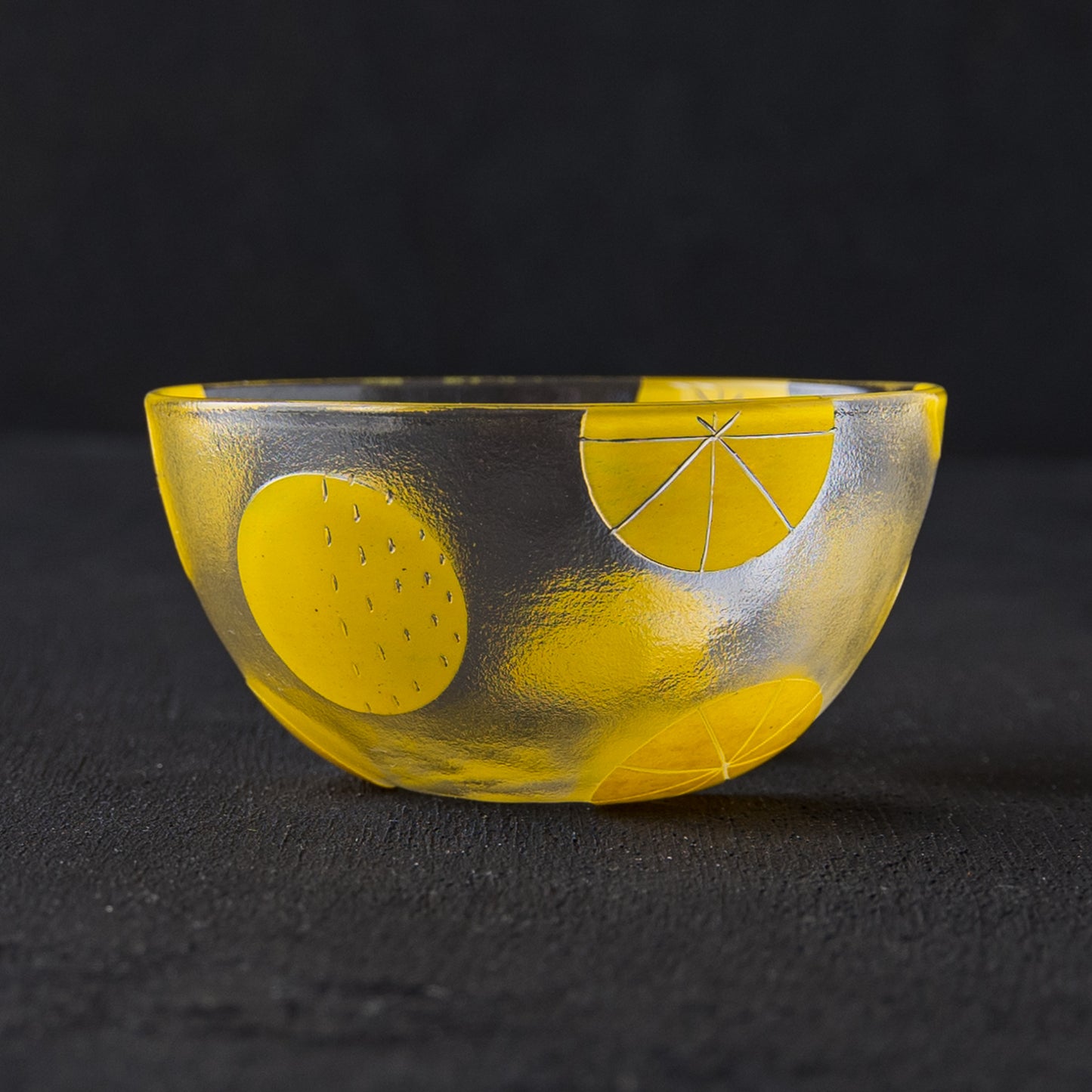 まあるいフォルムがなんとも愛らしいボウル。ドットや破線、ラインの入った立体感のある爽やかな黄色い水玉模様もスタイリッシュで素敵です。