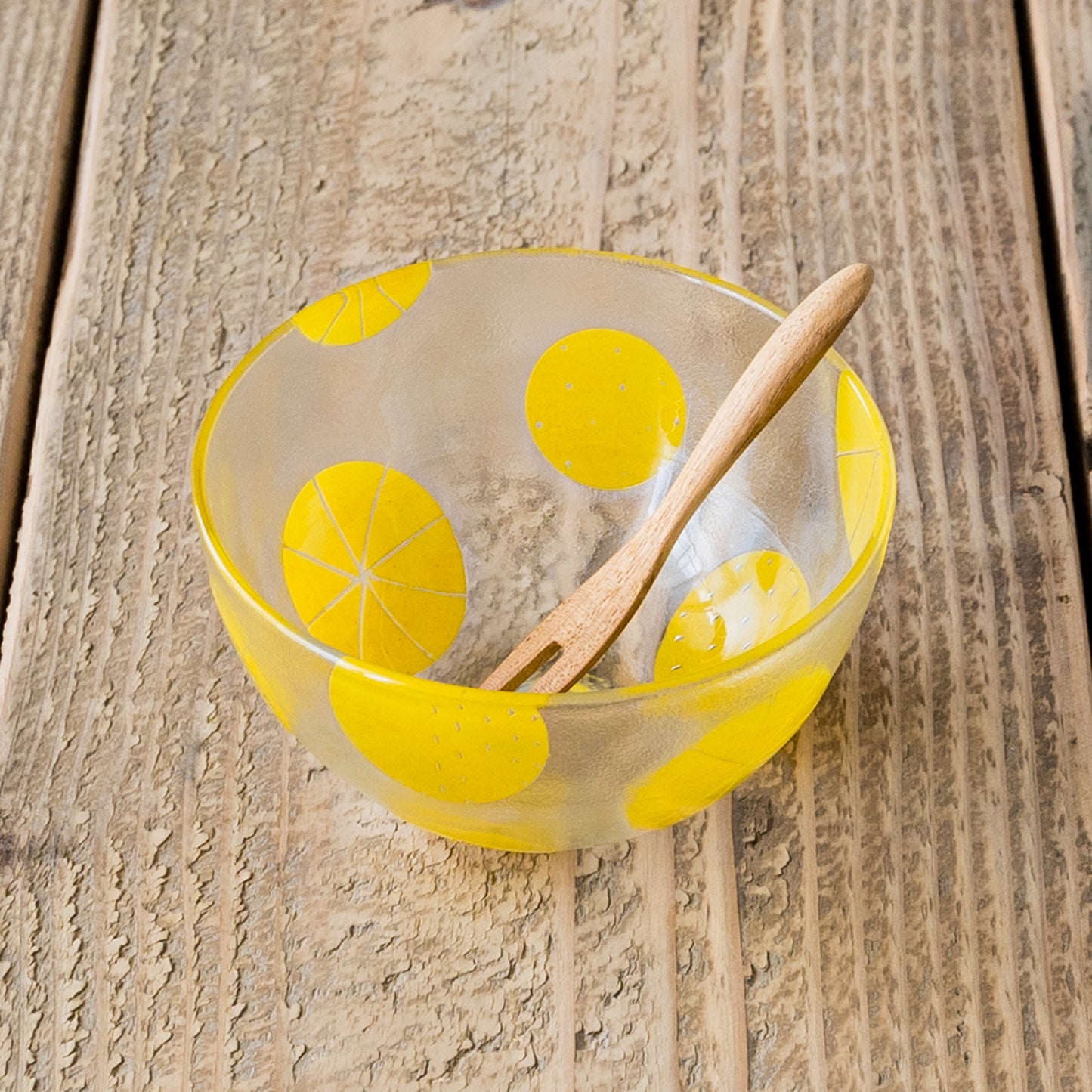 径約12cm、深さ約5.5cm。テーブルに置いてあるだけで絵になるかわいいボウル。フルーツやスイーツ、ヨーグルト、アイス、サラダなど素敵に映えてより一層美味しく感じます。