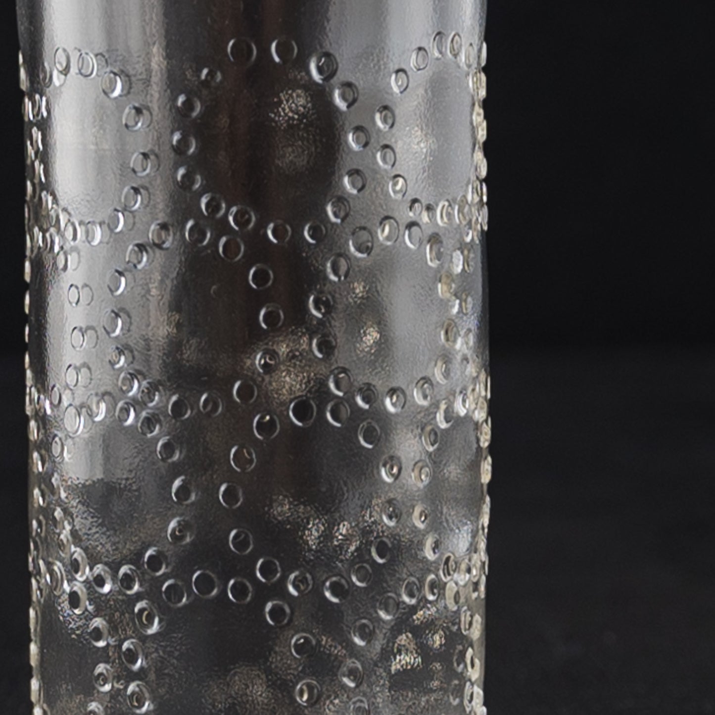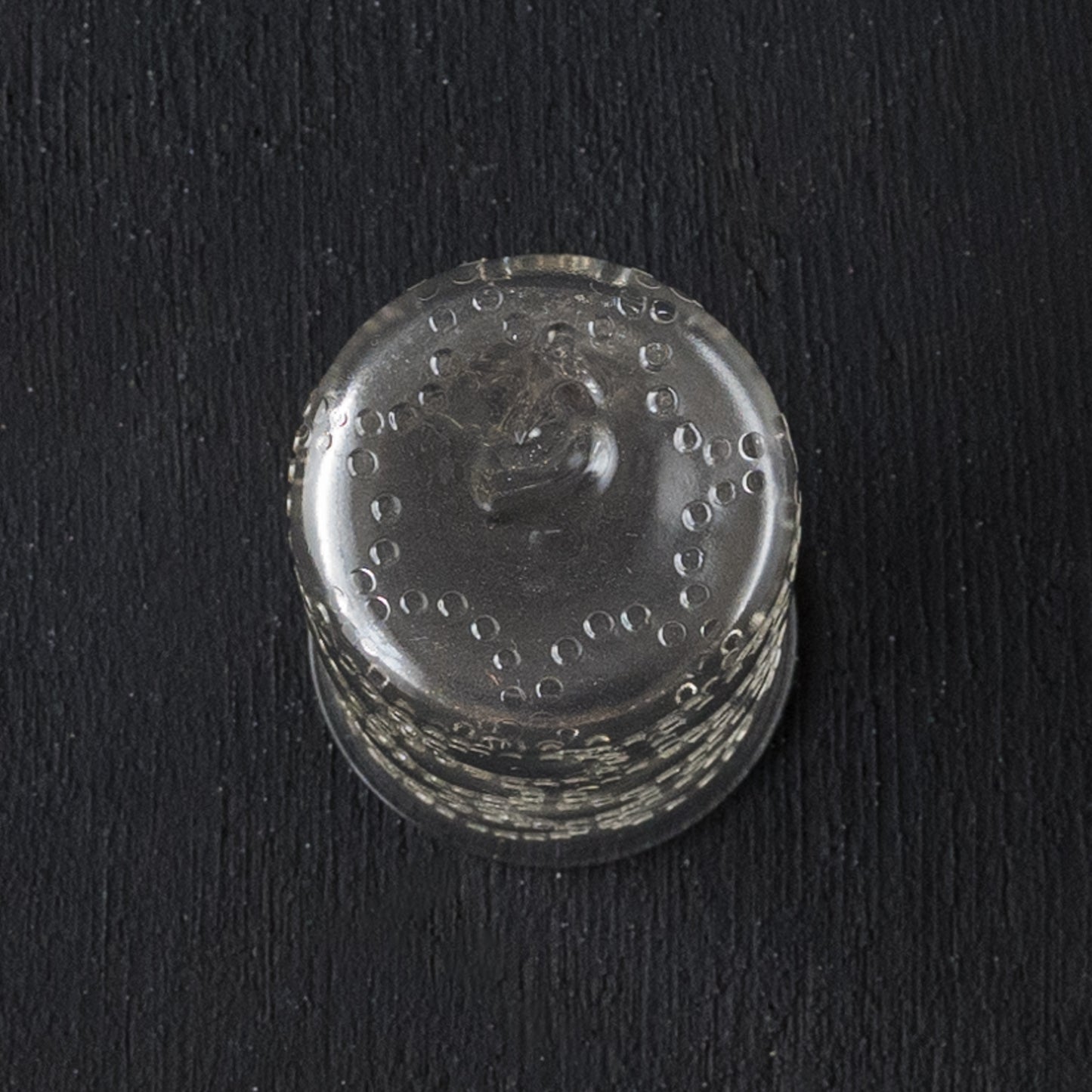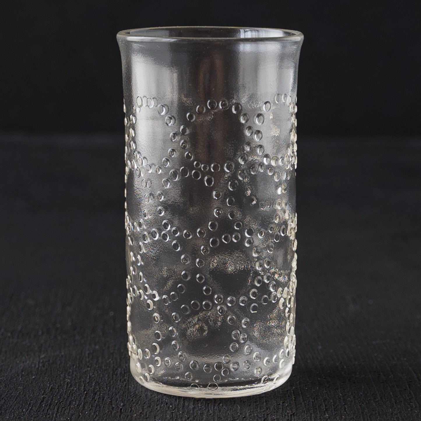 円柱形のフォルムがきりっとしていてシックなゾンビグラス(「ゾンビ」という名前のカクテルが由来)。立体感のある点でデザインした丸い模様が上品かつスタイリッシュな佇まいで見惚れてしまいます。