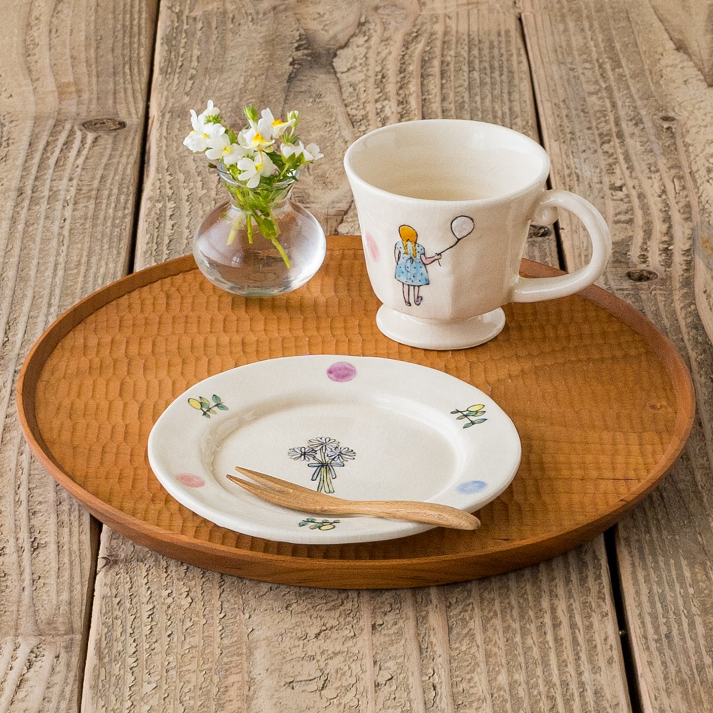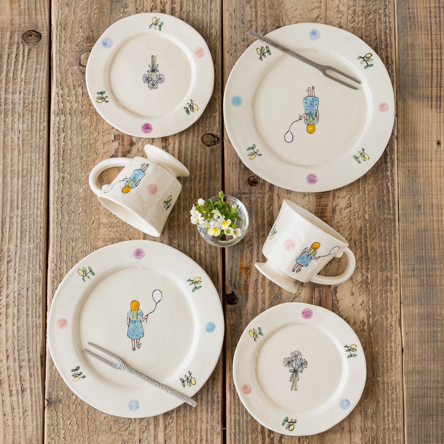 こんな愛らしいうつわが食卓に並べてあったら自然と顔がほころんでしまいます。優しさが伝わってくる絵柄と色使いが盛り付けたお料理を素敵に引き立ててくれるので明るく楽しいテーブルにしてくれます。