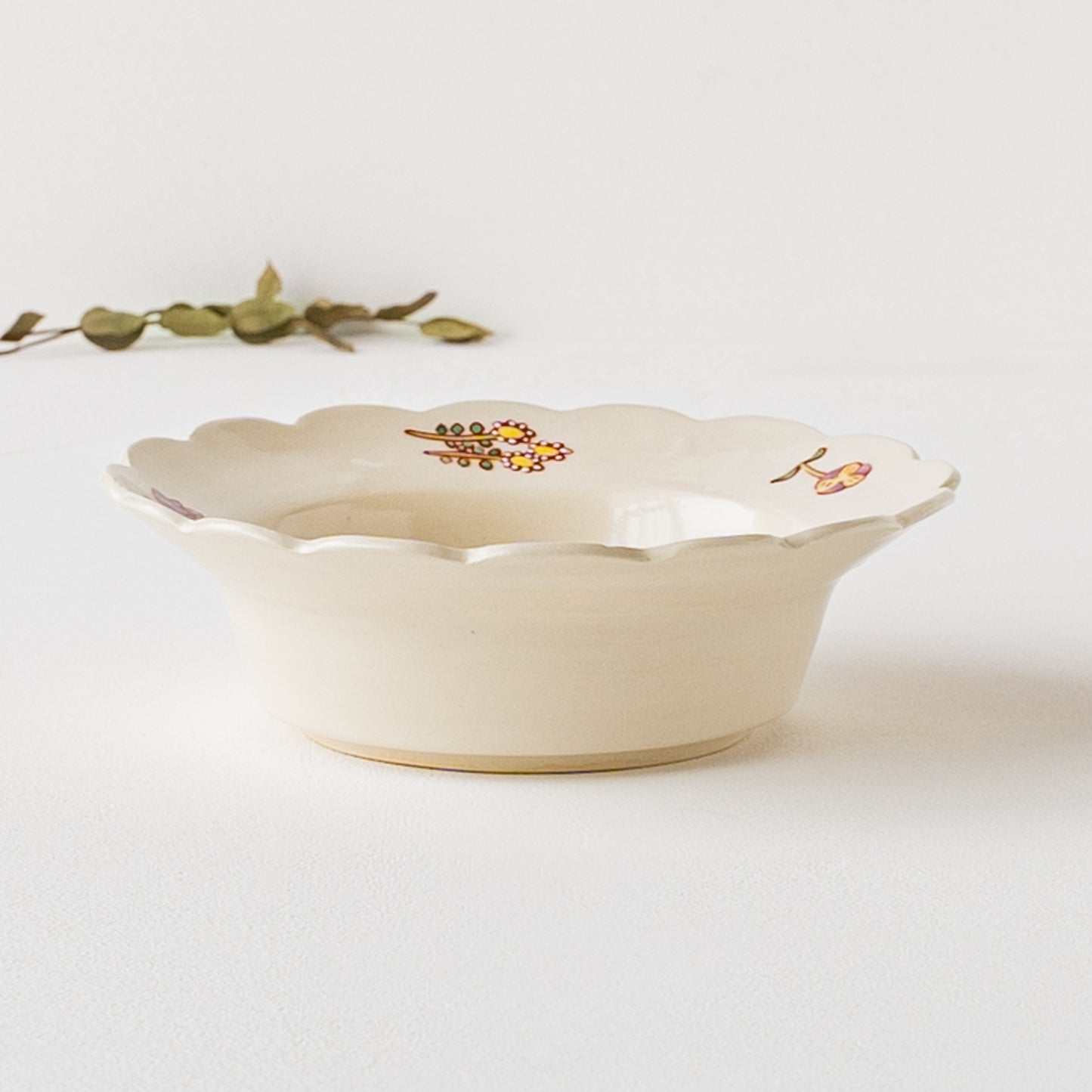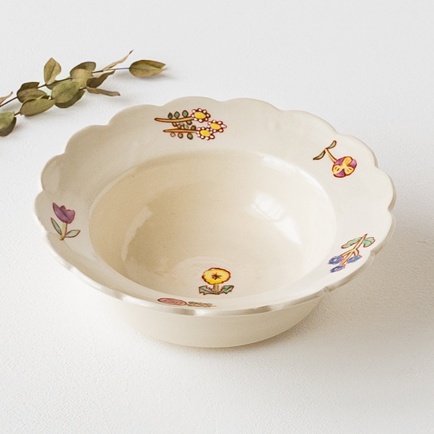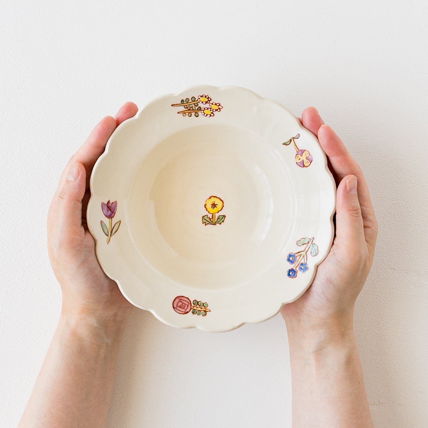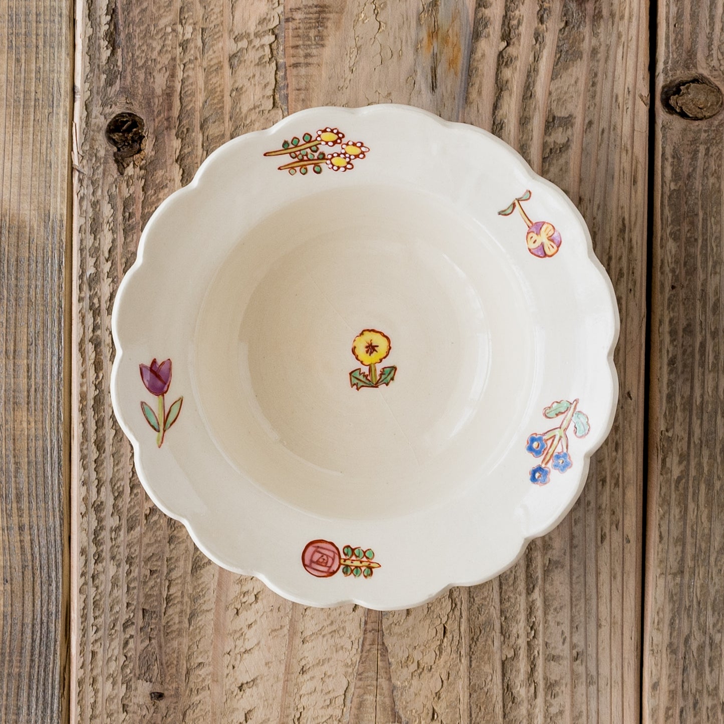 こんな愛らしいうつわが食卓に並べてあったら自然と顔がほころんでしまいます。色鮮やかな小花が盛り付けたお料理を素敵に引き立ててくれるので明るく楽しいテーブルにしてくれます。
