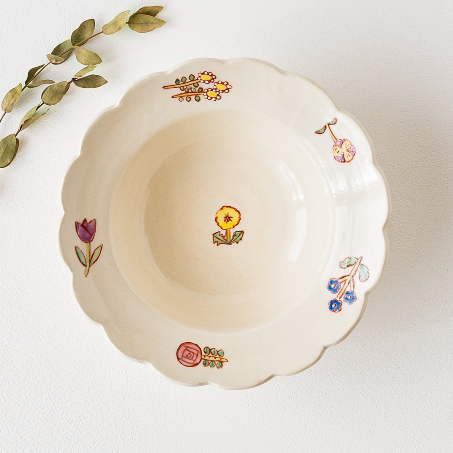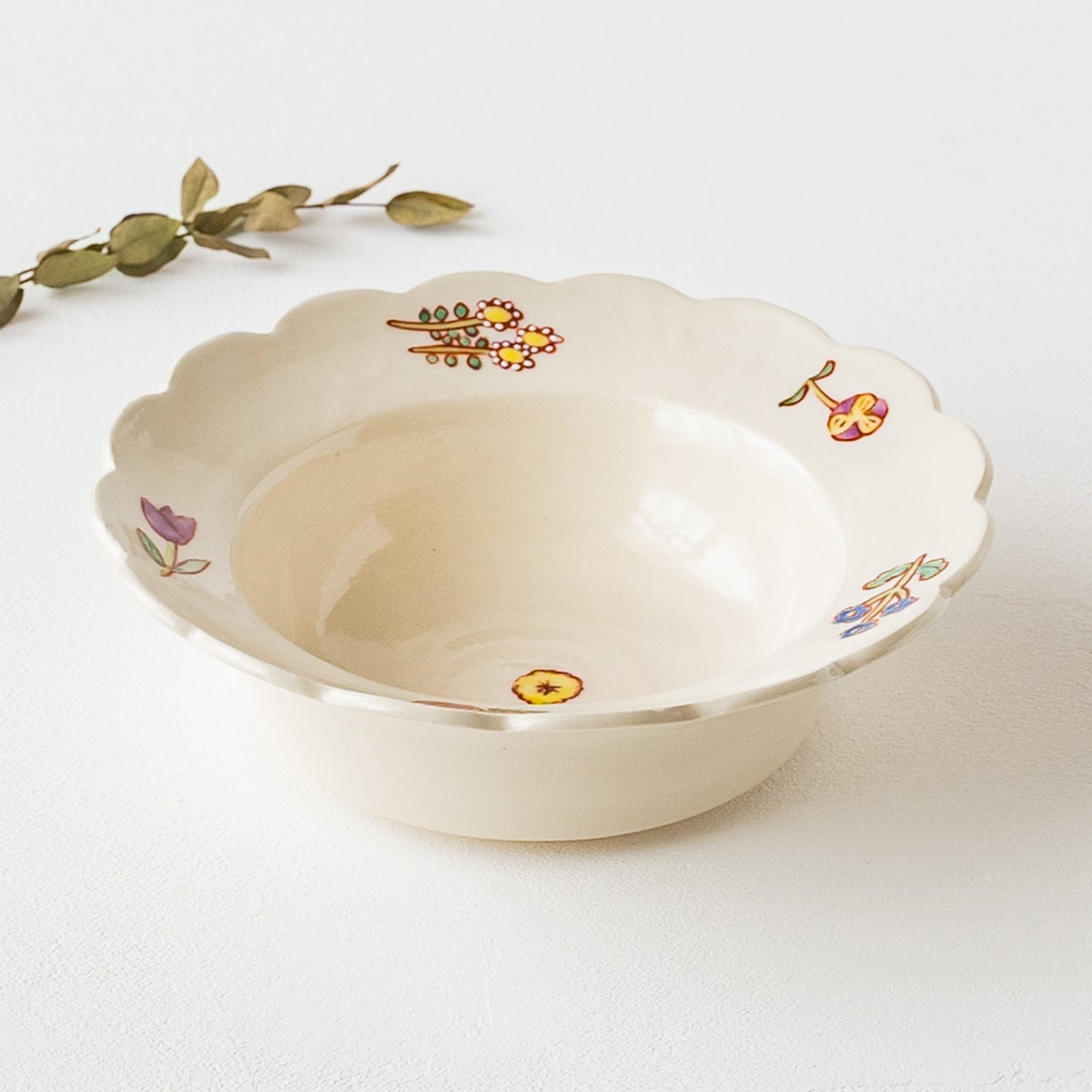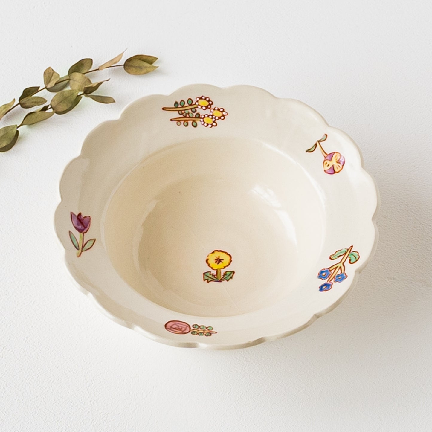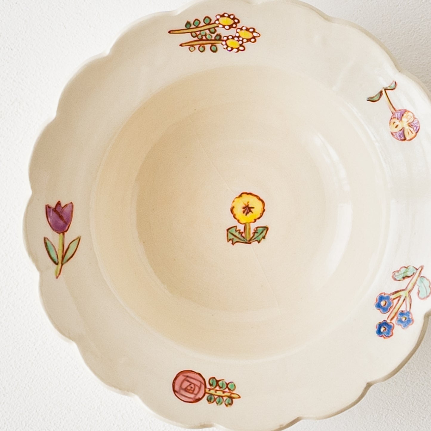こんな愛らしいうつわが食卓に並べてあったら自然と顔がほころんでしまいます。色鮮やかな小花が盛り付けたお料理を素敵に引き立ててくれるので明るく楽しいテーブルにしてくれます。