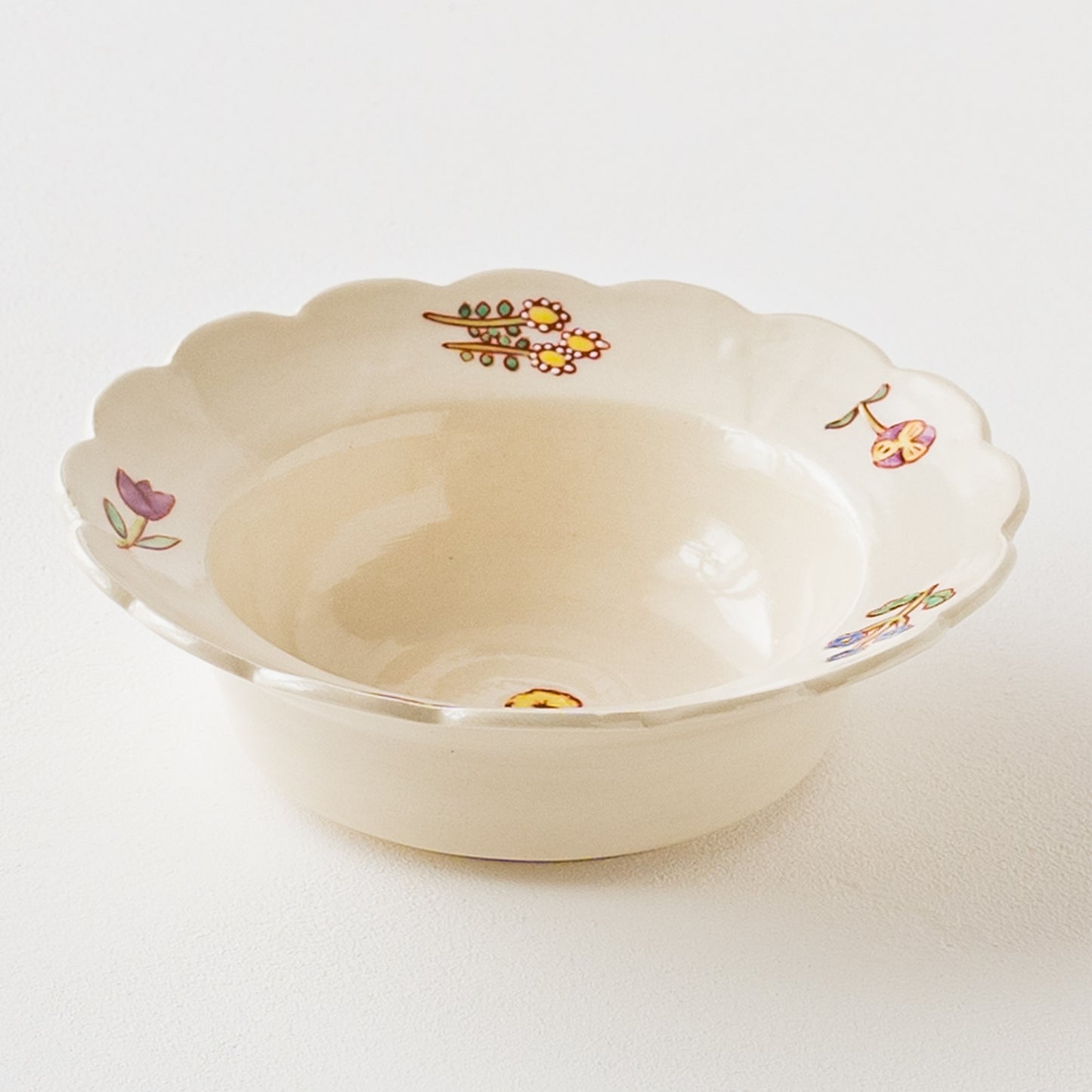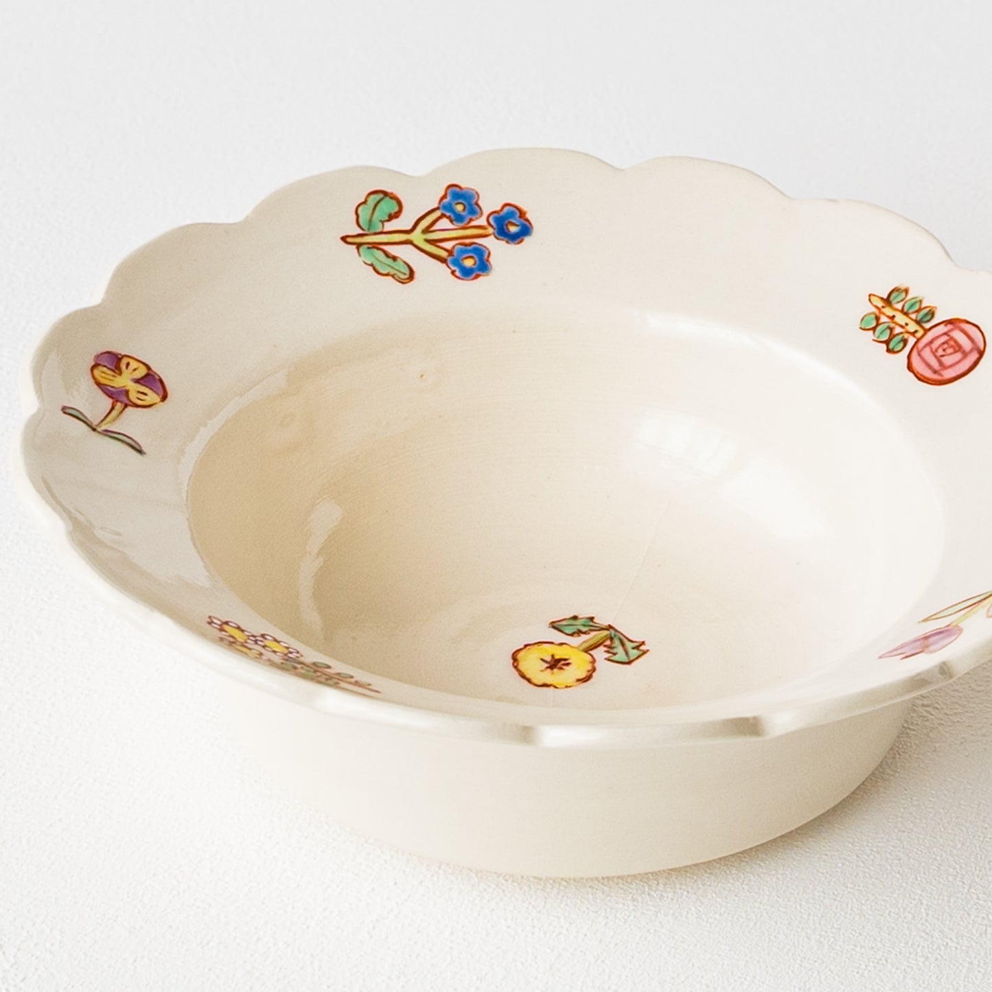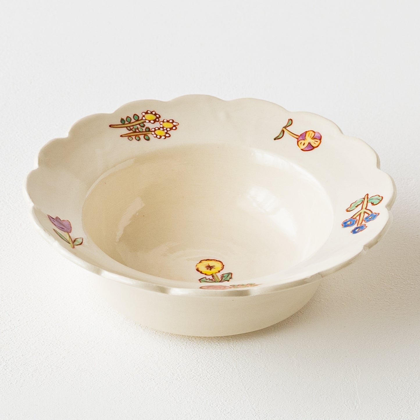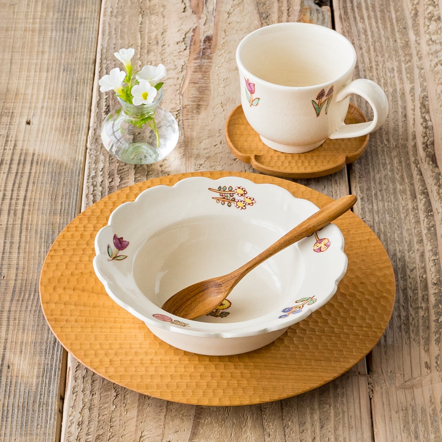 こんな愛らしいうつわが食卓に並べてあったら自然と顔がほころんでしまいます。色鮮やかな小花が盛り付けたお料理を素敵に引き立ててくれるので明るく楽しいテーブルにしてくれます。