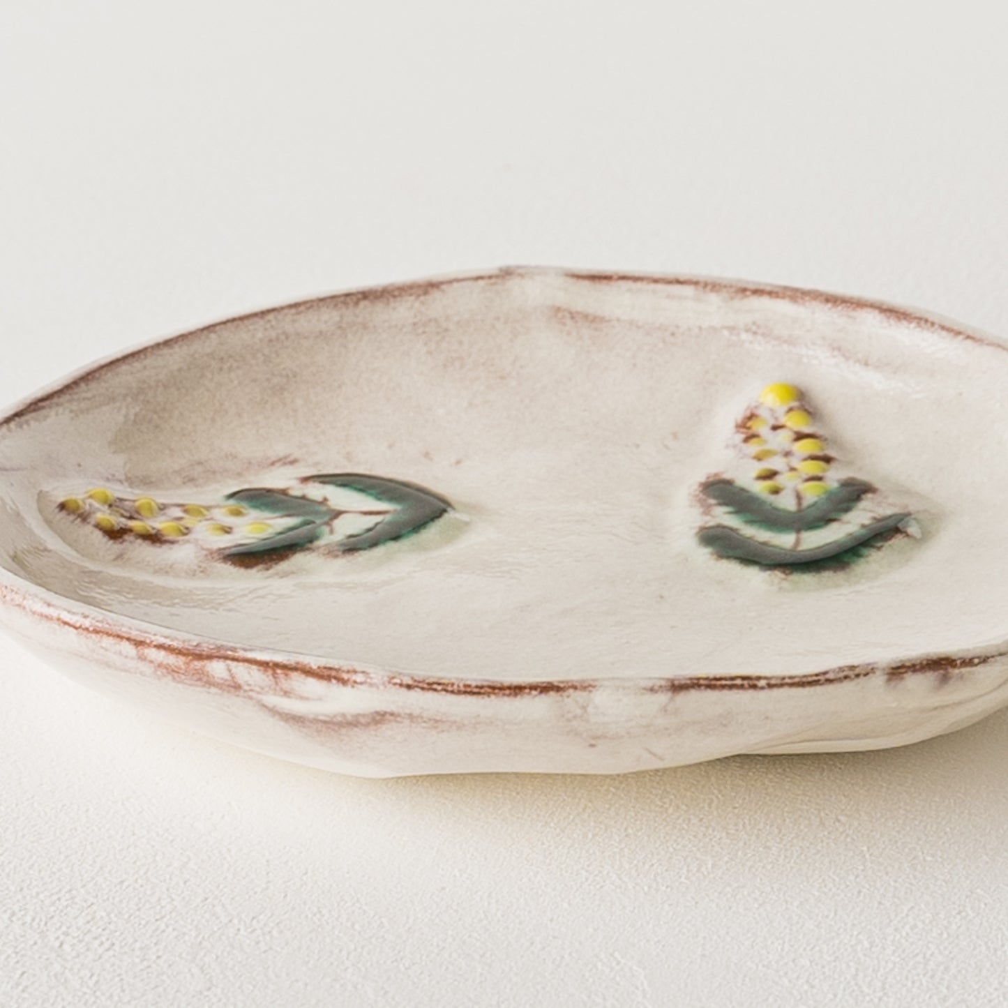 春の訪れを告げてくれる鮮やかで明るい黄色が美しいミモザ。ふわふわとやさし気なミモザとあわせてミモザの4寸皿を食卓に置けば明るく華やいだ気持ちにしてくれます。