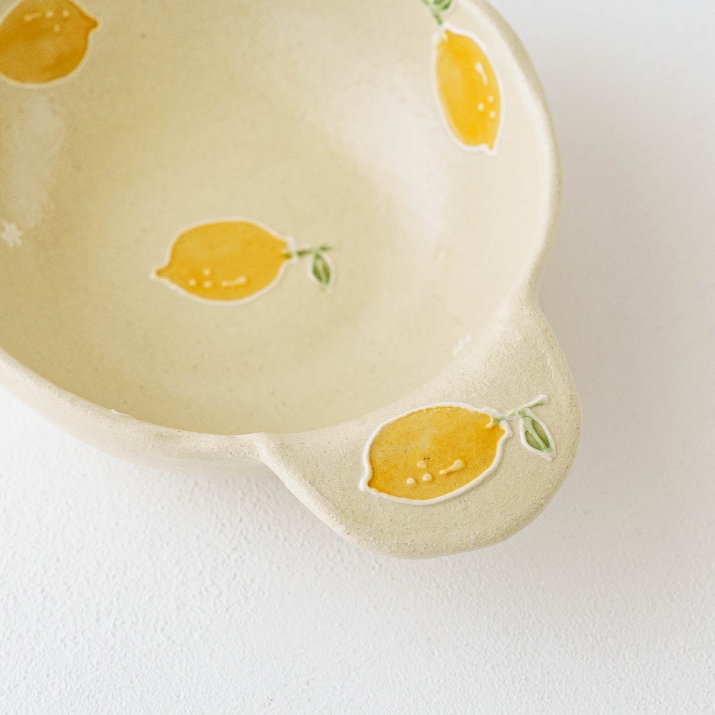 素地の上には、繊細さの中にも遊び心が感じられる絵柄がイッチン技法で描かれています。白泥で描いて素焼きをし、その後模様に色釉を施し本焼きをします。スイーツやフルーツの色彩と造形は、思わず本物かしら?と思うほど。精巧さの中にある愛らしさとどこか品のある表情が魅力です。