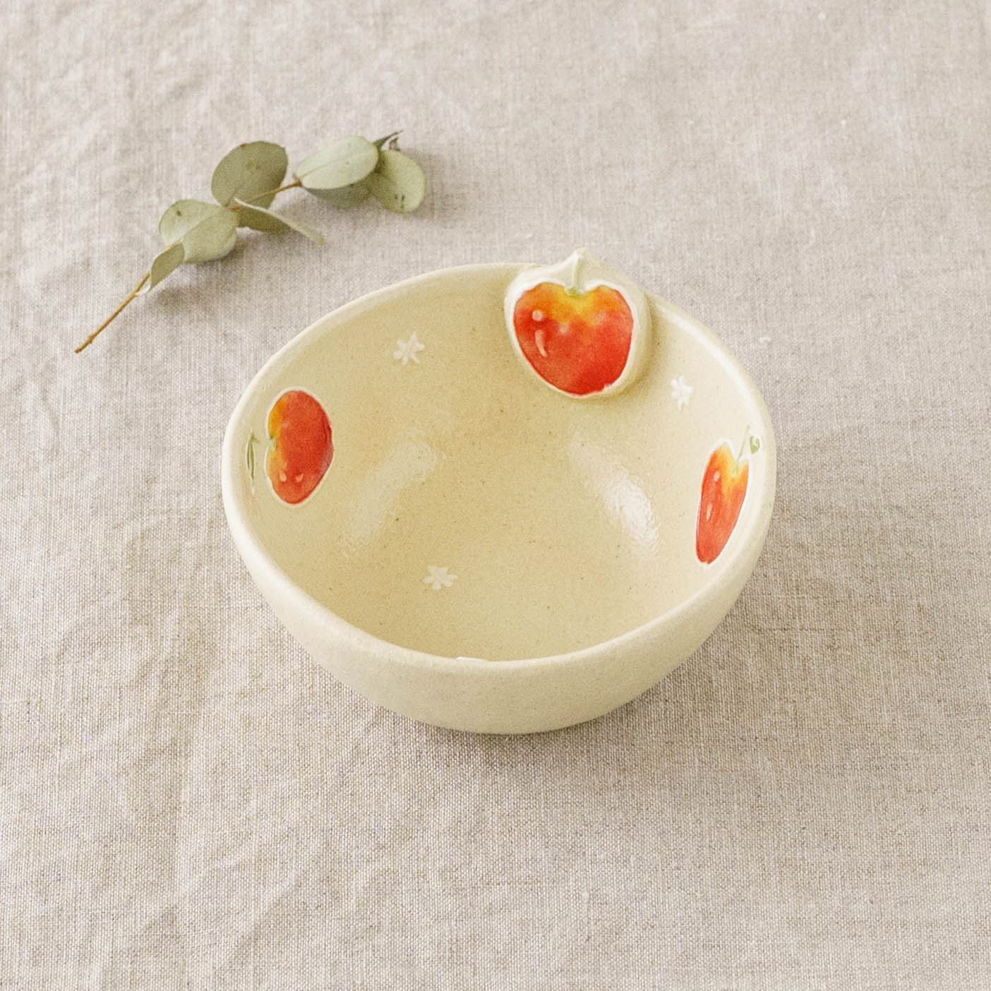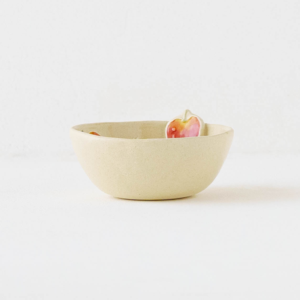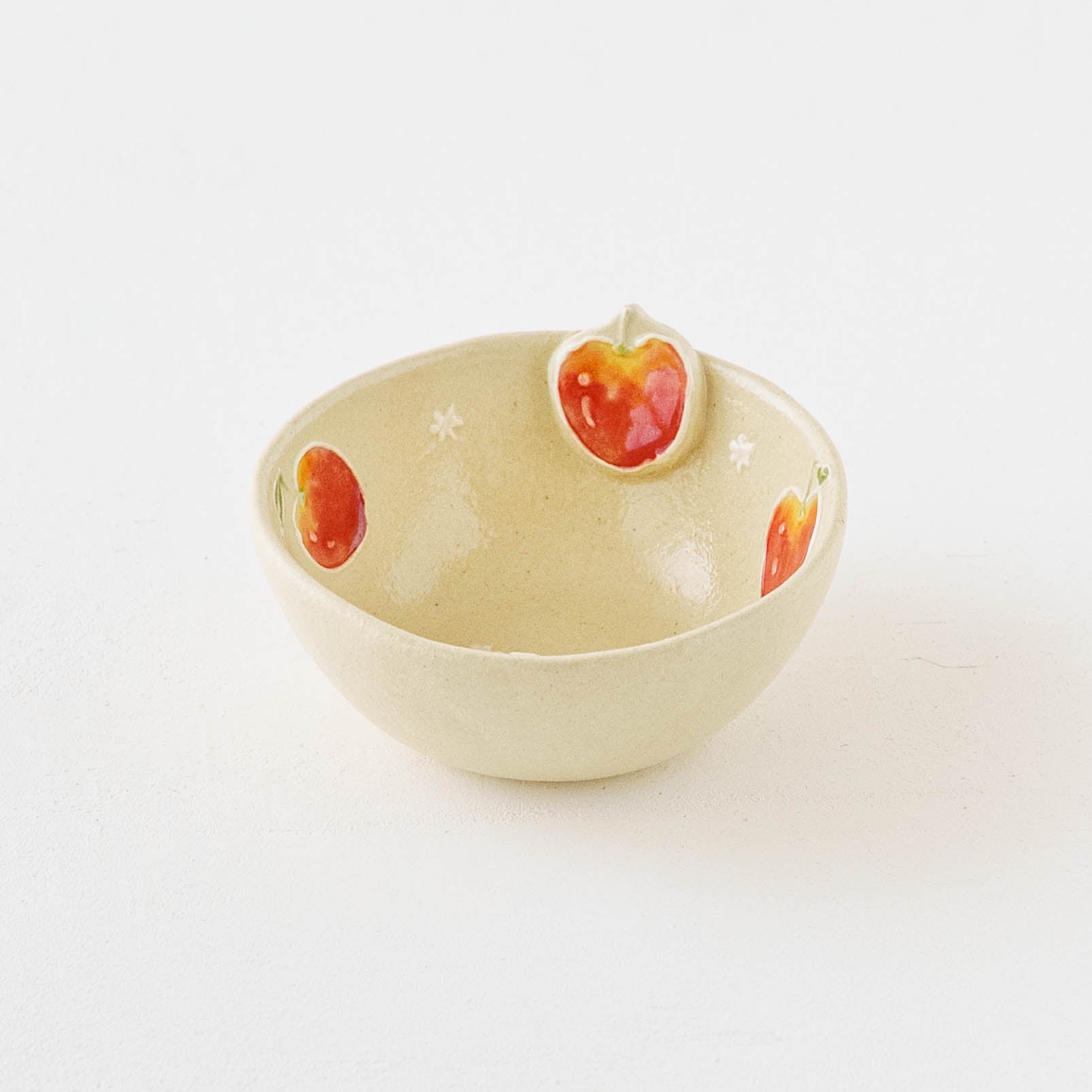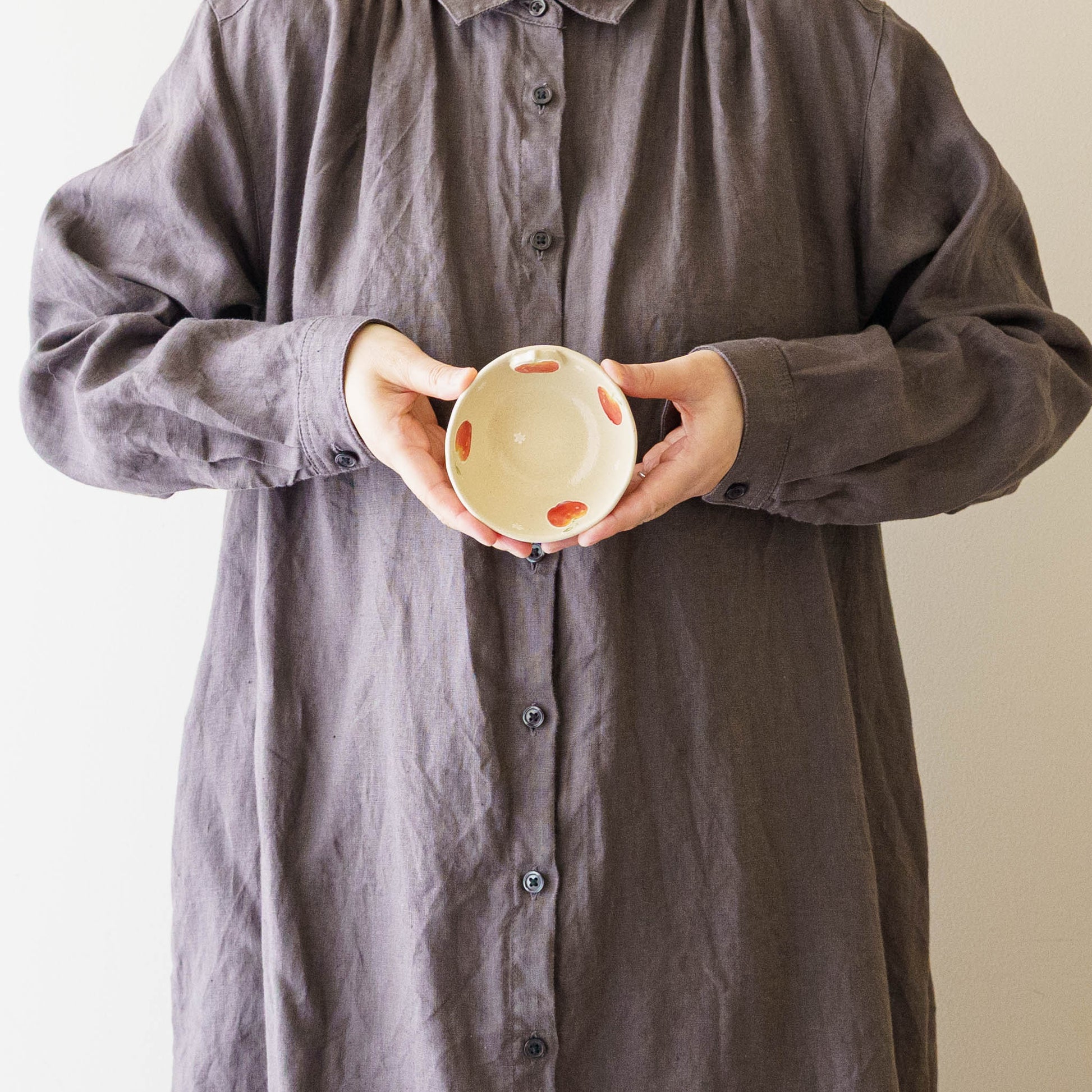 やわらかな土のぬくもりに、そっと忍ばせた可憐な気配。ロクロで成形された器は、無駄のないシンプルなかたちながら、愛くるしい絵柄に自然と笑顔になってしまいます。手に取ると自然と馴染み、使うほどに日常の風景に溶け込んでいく。そんな“ちょうどよさ”を大切に生み出されています。