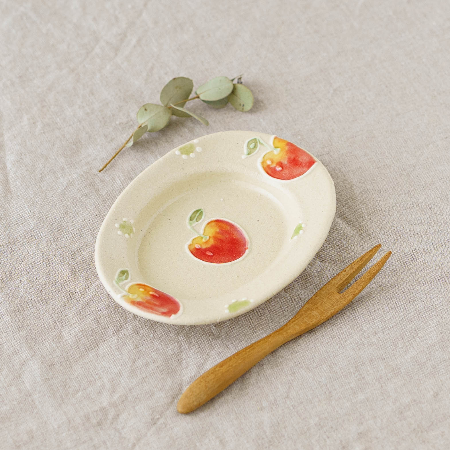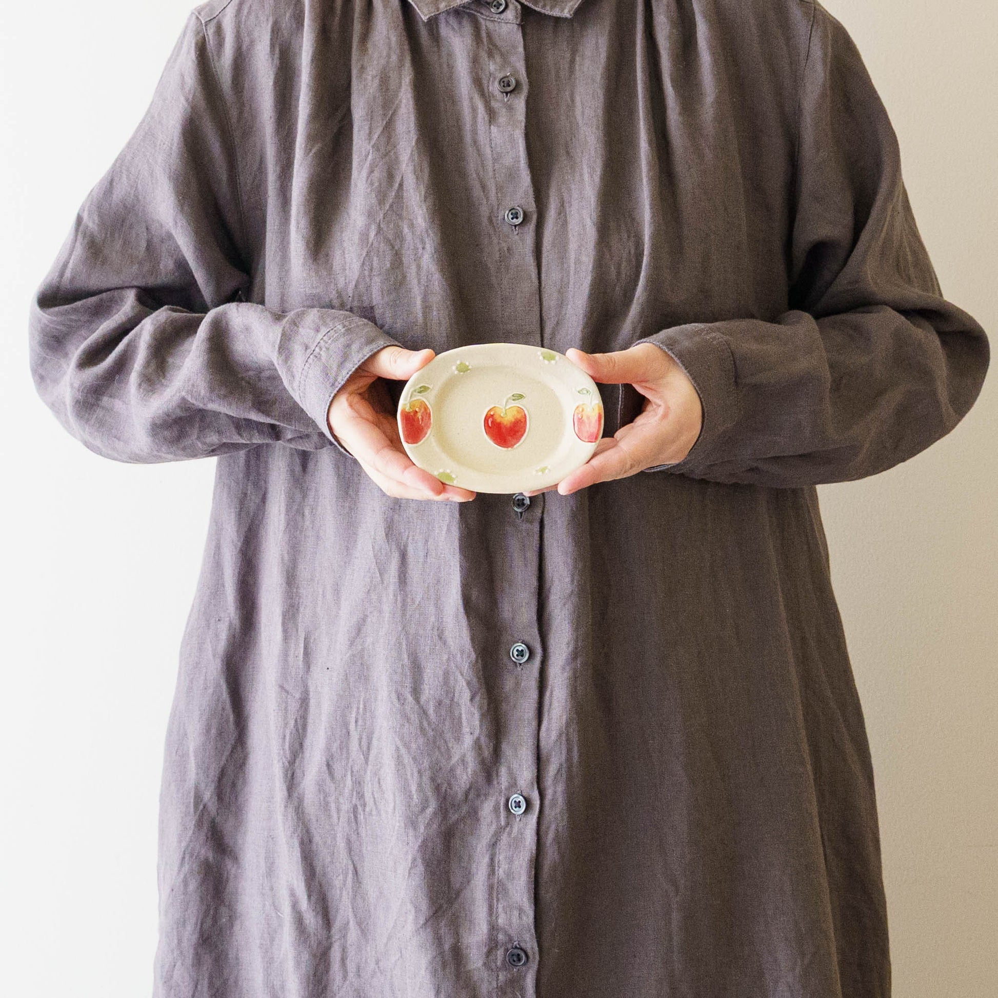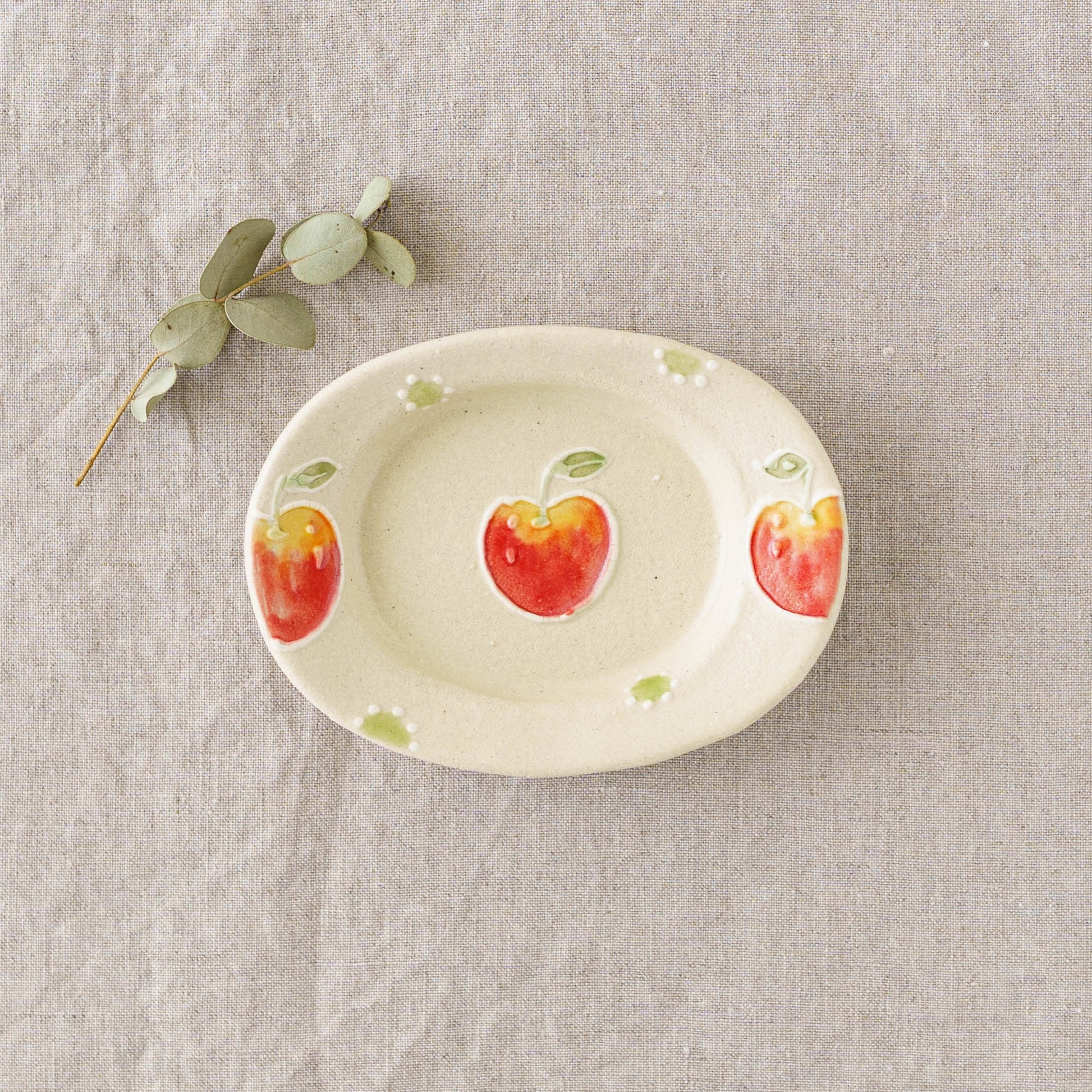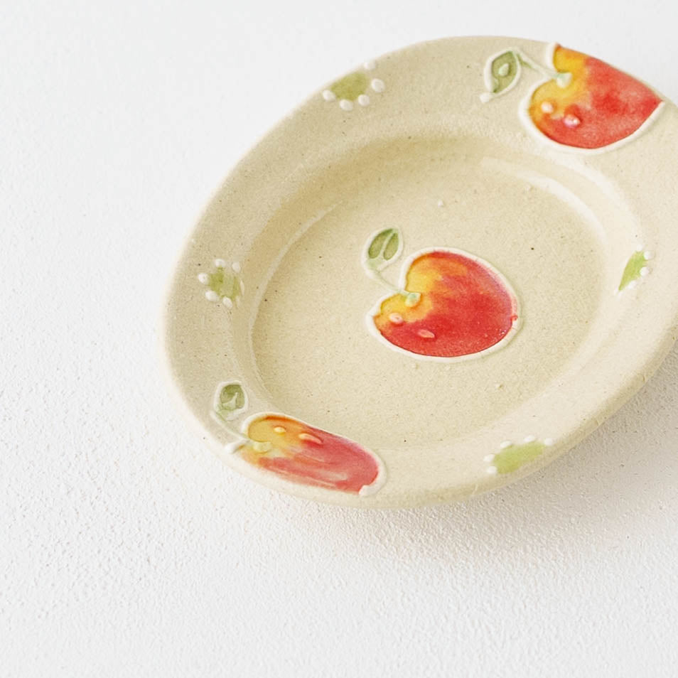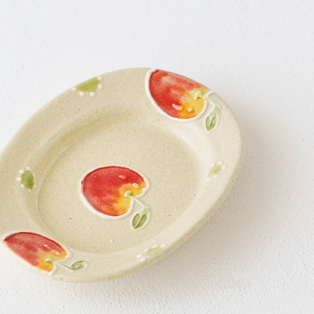 リムあり オーバル豆皿 アップルドット|中村佳菜子