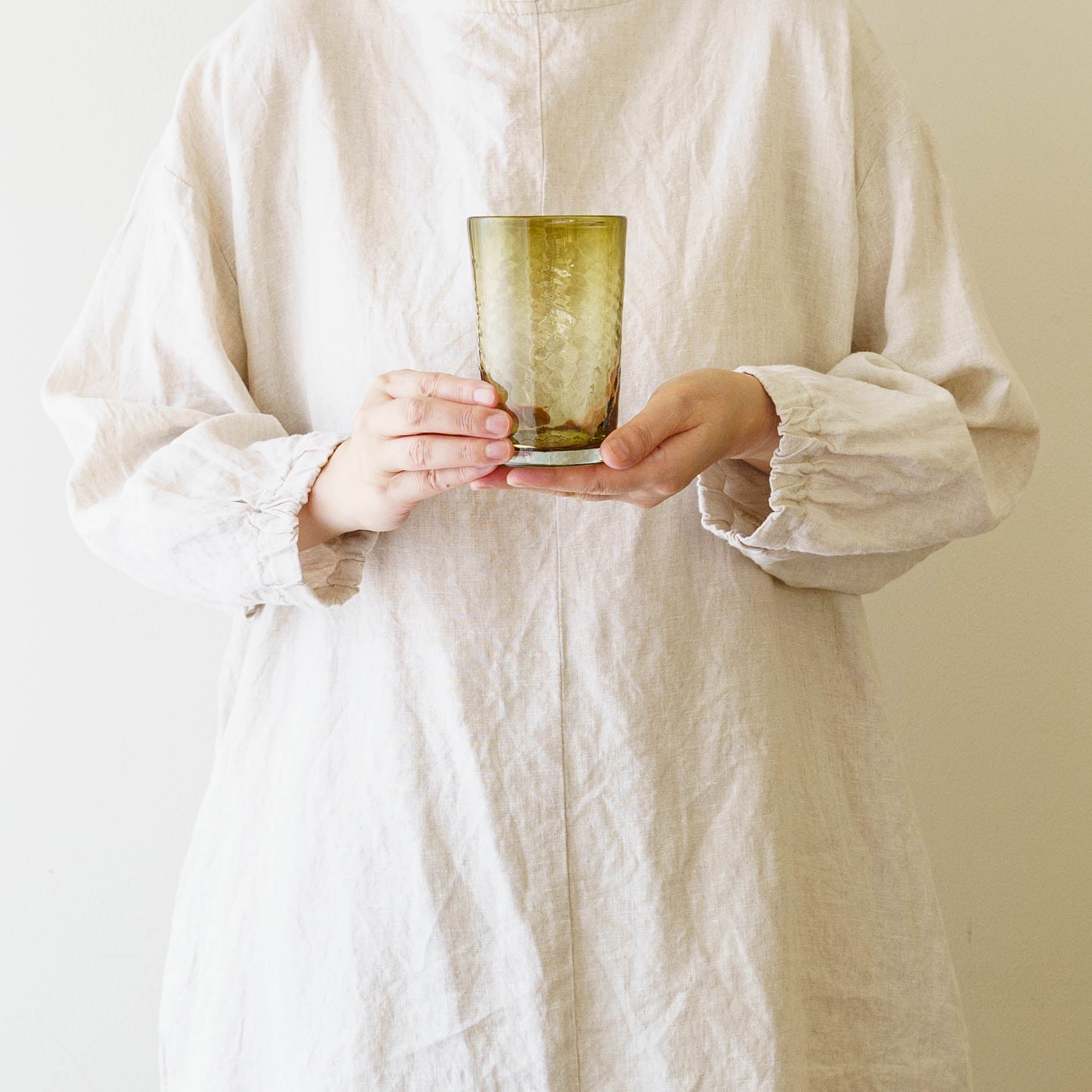 派手な存在ではなく、日々の暮らしに寄り添う道具としての美しさを大切に。手に取るたびしっくりと馴染み、少しだけ心が弾む。何気ない時間に小さな喜びを運んでくれる、用の美が息づくグラスです。