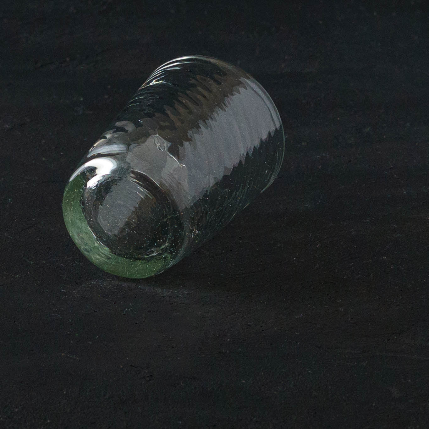 廃瓶や古いガラス窓などを材料に作られる再生ガラス。使い終わった酒瓶を丁寧に洗い、ラベルを剥がし炉で溶かす。ひとつひとつ、吹きガラス技法で紡ぎだすうつわたちは、淡くやさしい輝きをまといながら、ぬくもりを感じさせてくれるうつわへと生まれ変わります。