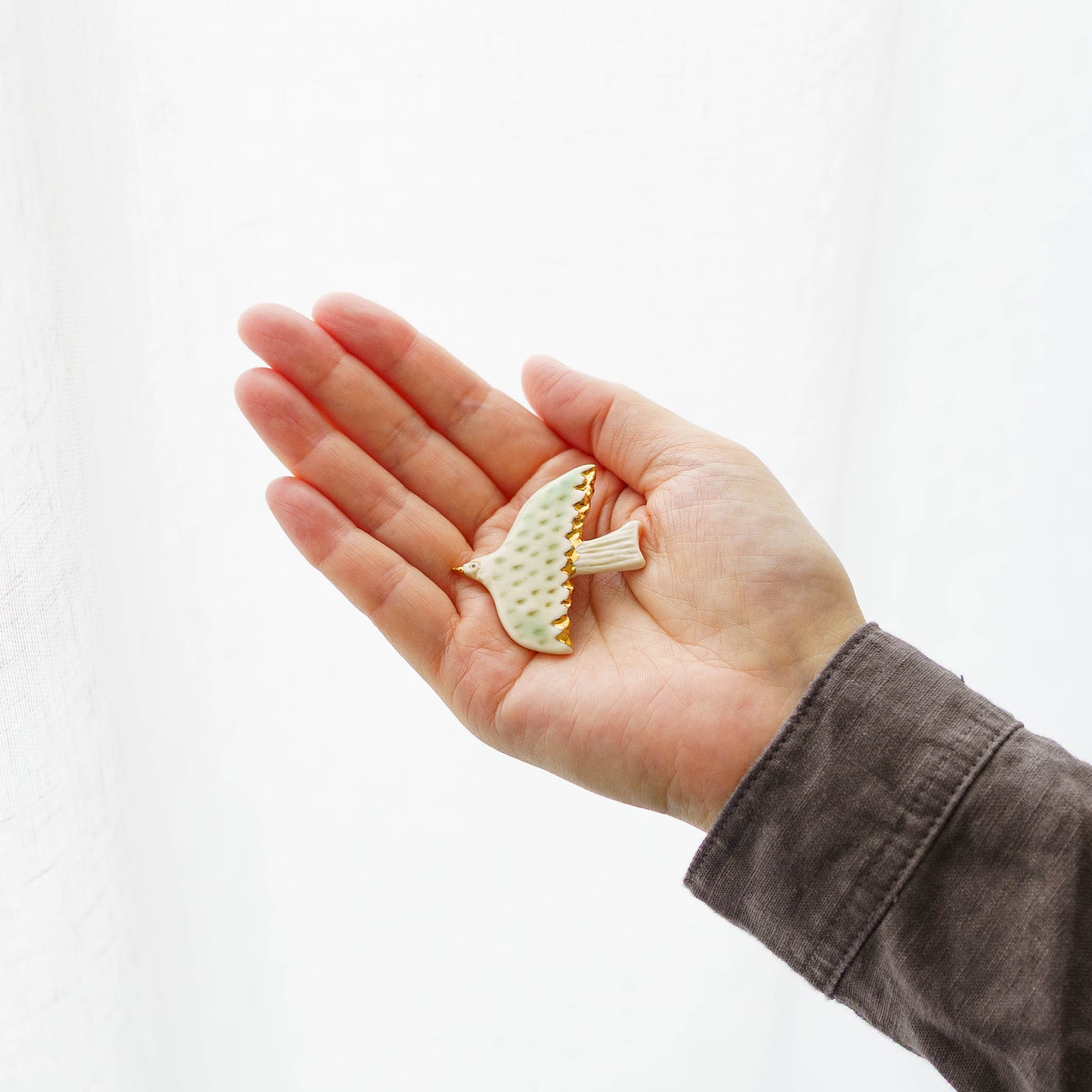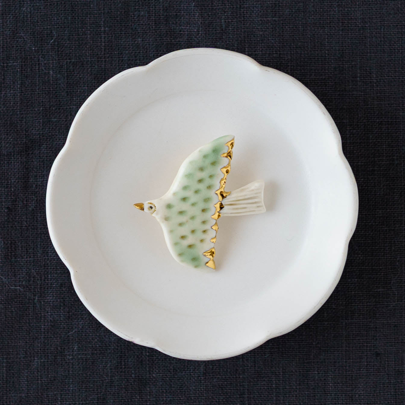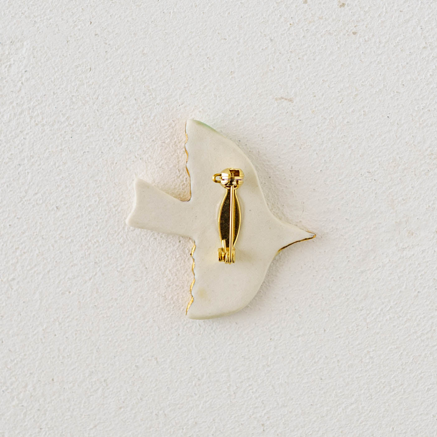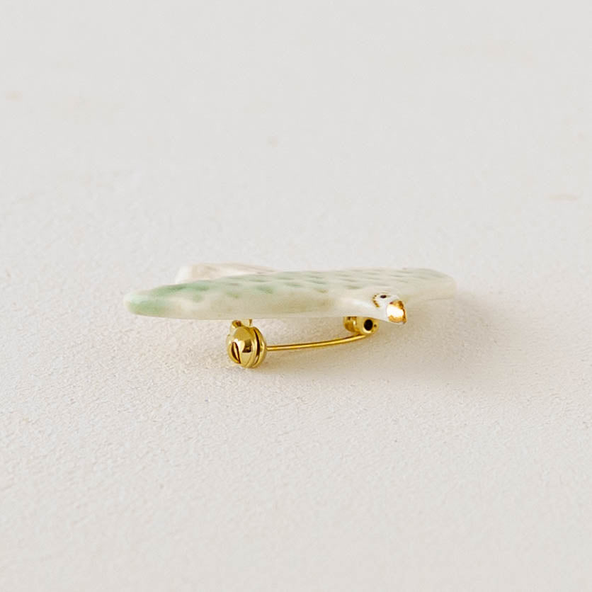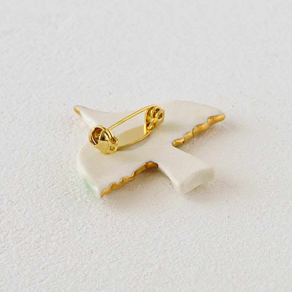 クラシカルな雰囲気と上品な可愛らしさを併せ持った素敵な陶製のブローチ。胸元をかわいく華やかに演出してくれます。ブローチ金具は真鍮に金メッキとなります。