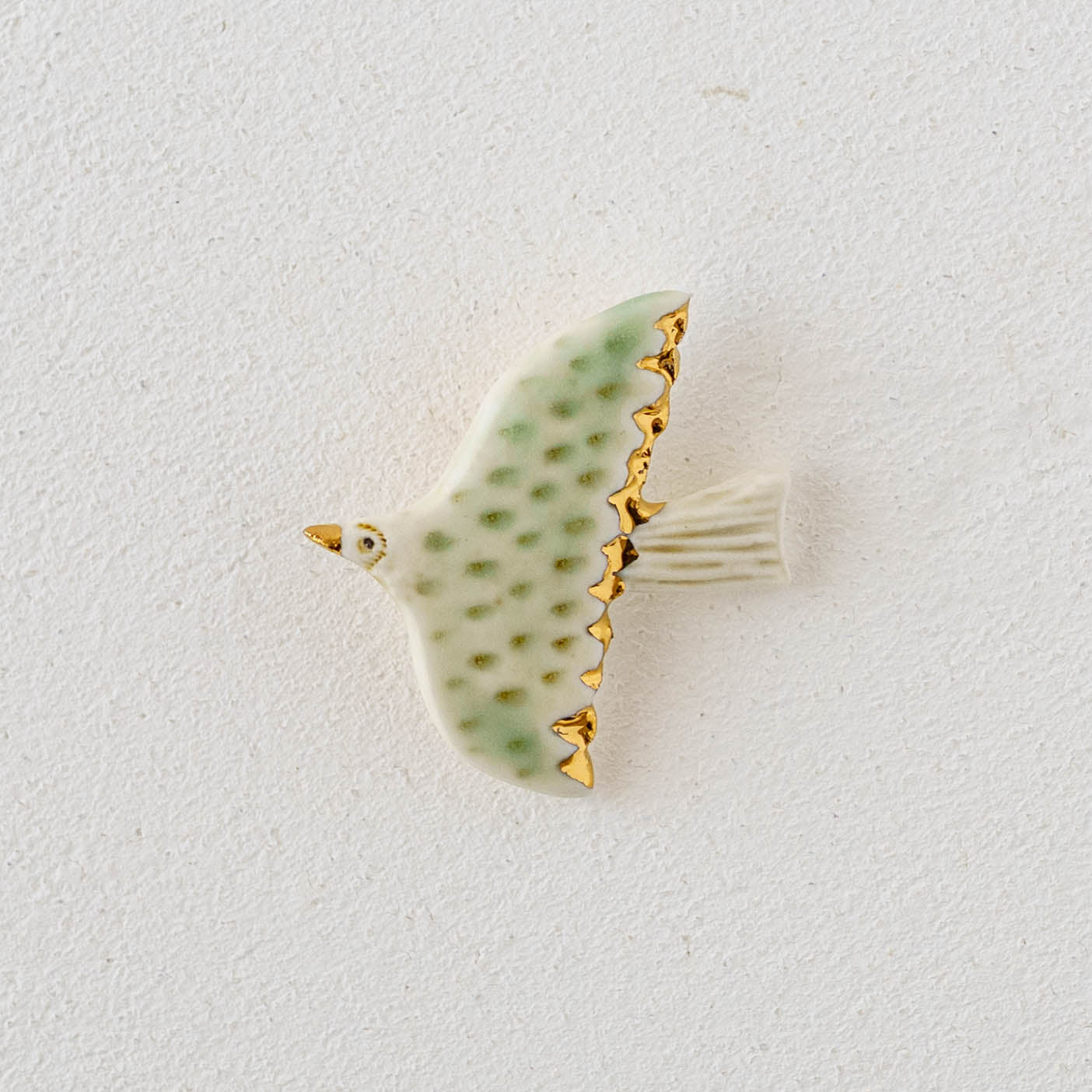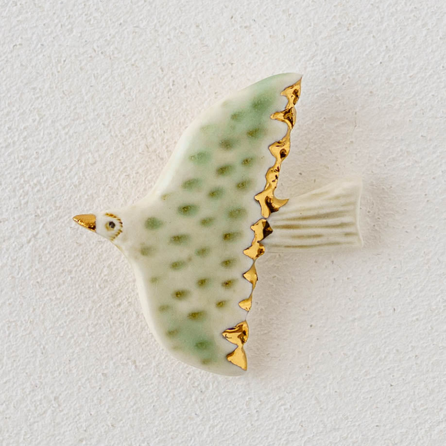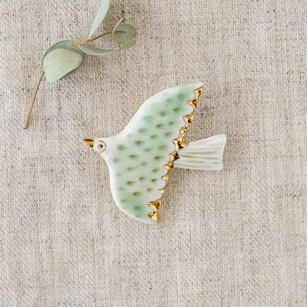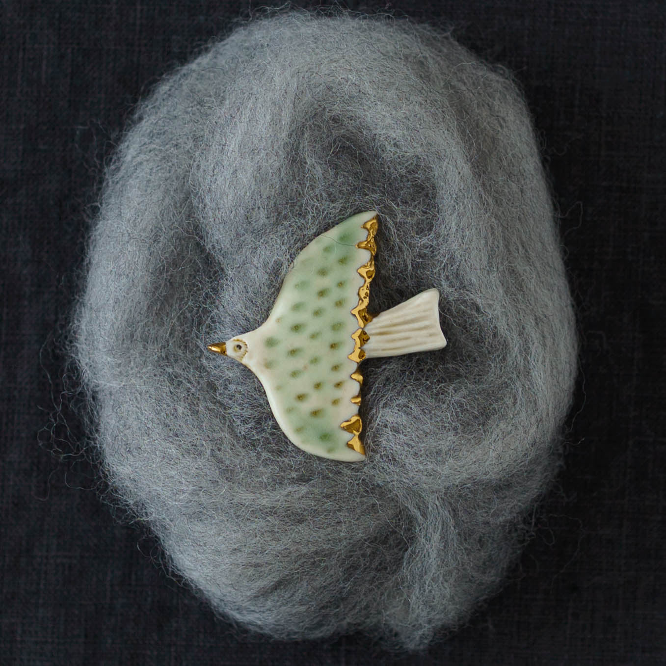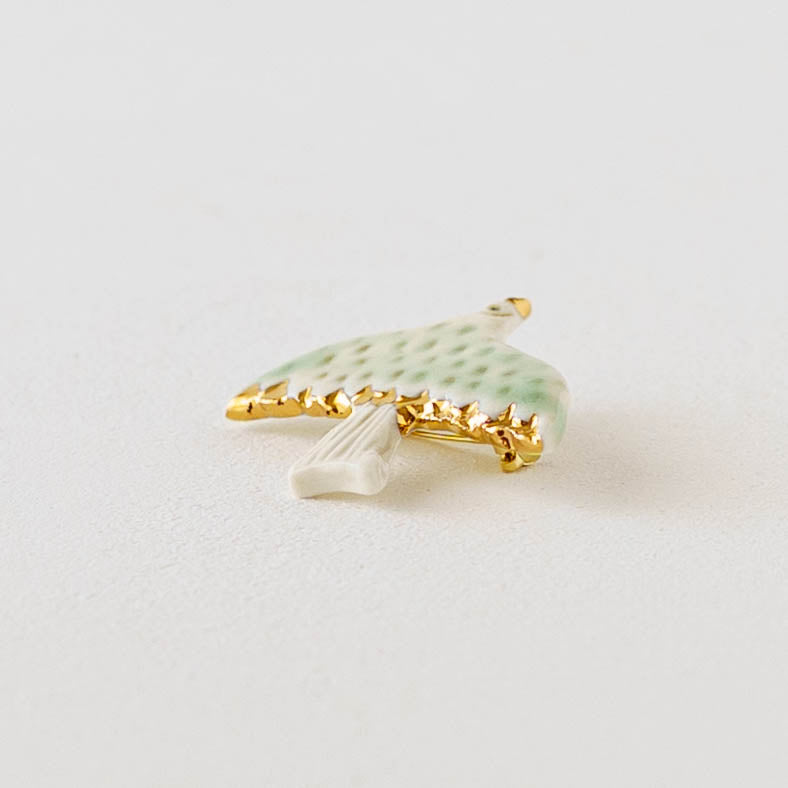 クラシカルな雰囲気と上品な可愛らしさを併せ持った素敵な陶製のブローチ。胸元をかわいく華やかに演出してくれます。ブローチ金具は真鍮に金メッキとなります。