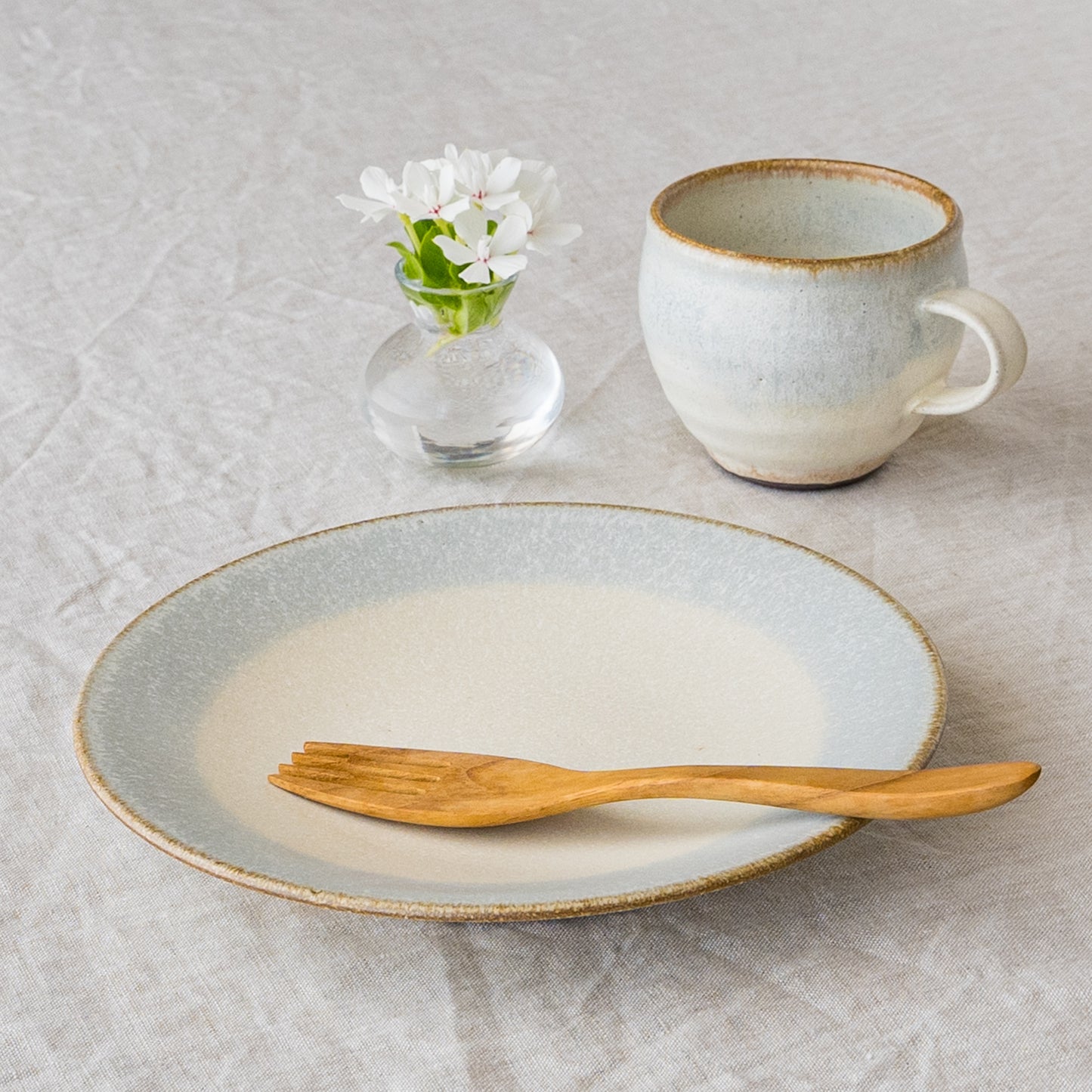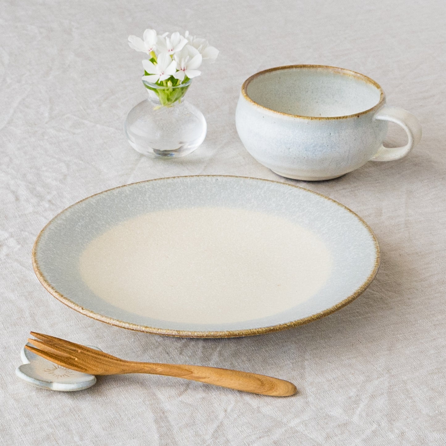 朝食やランチなどワンプレートの盛り付けにちょうどいい約21cm。淡くやさしい色味なのでお料理が素敵に映えます。パスタやペンネ、カレーライス、オムライス、ホットケーキなどにもぴったりです。