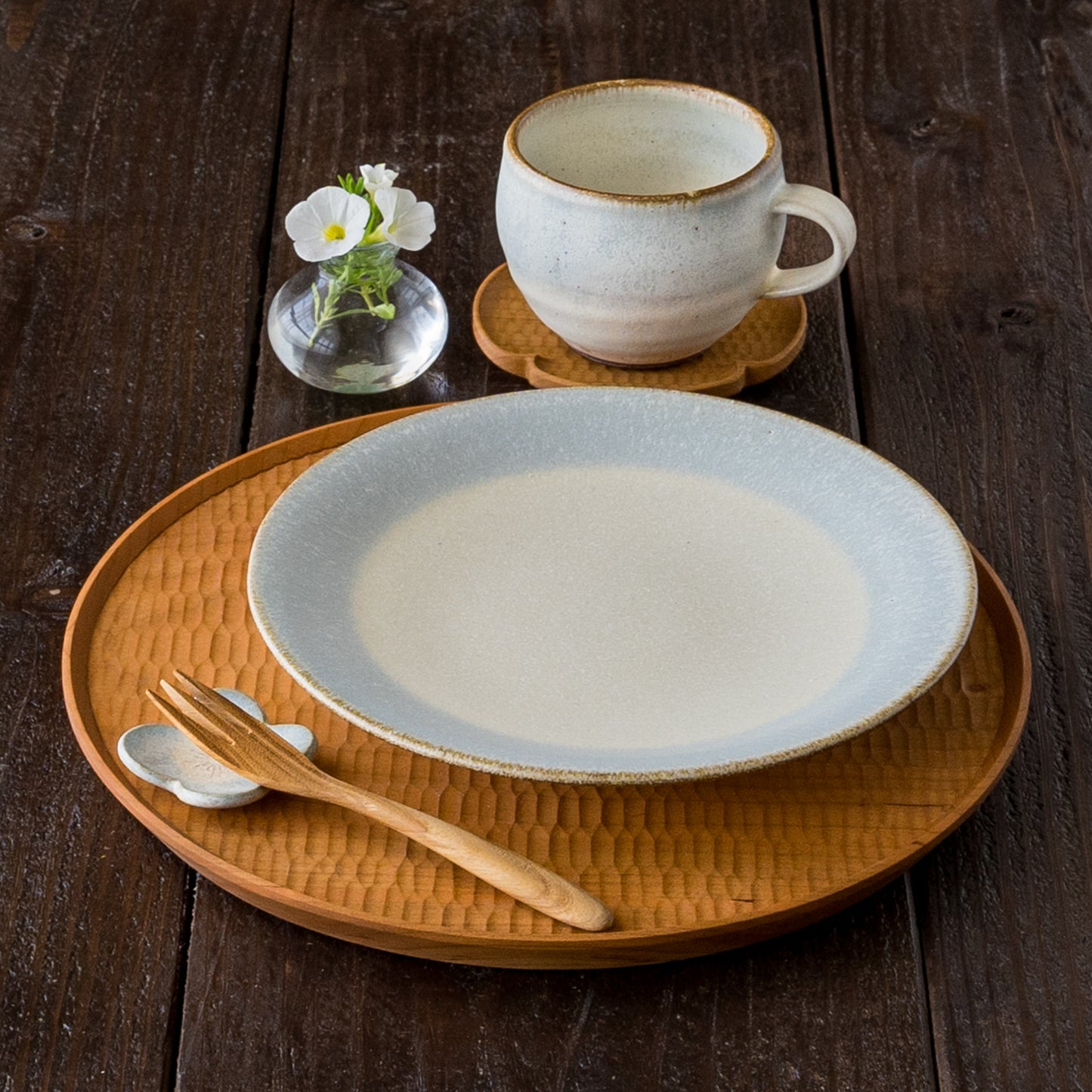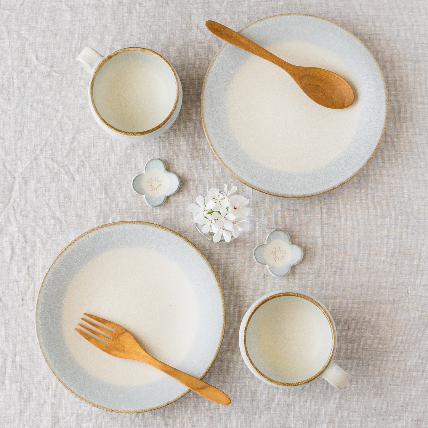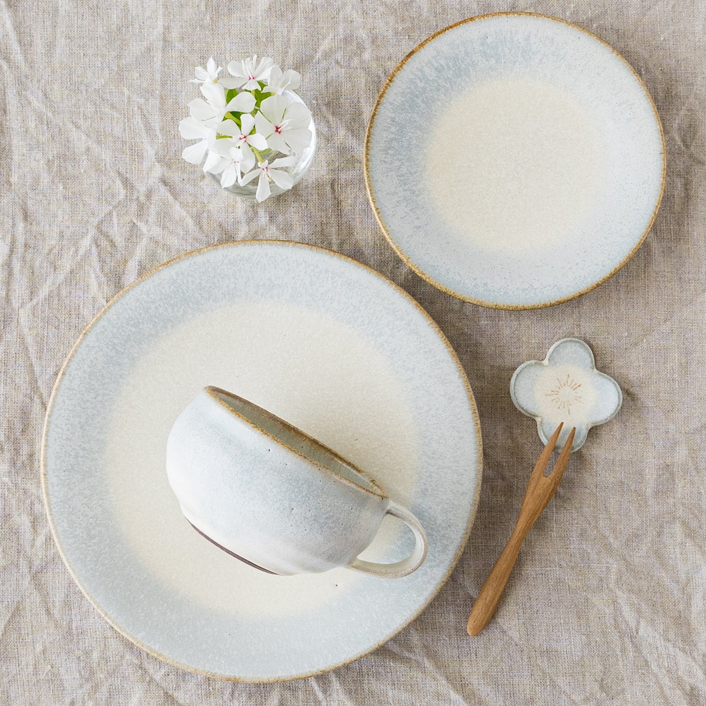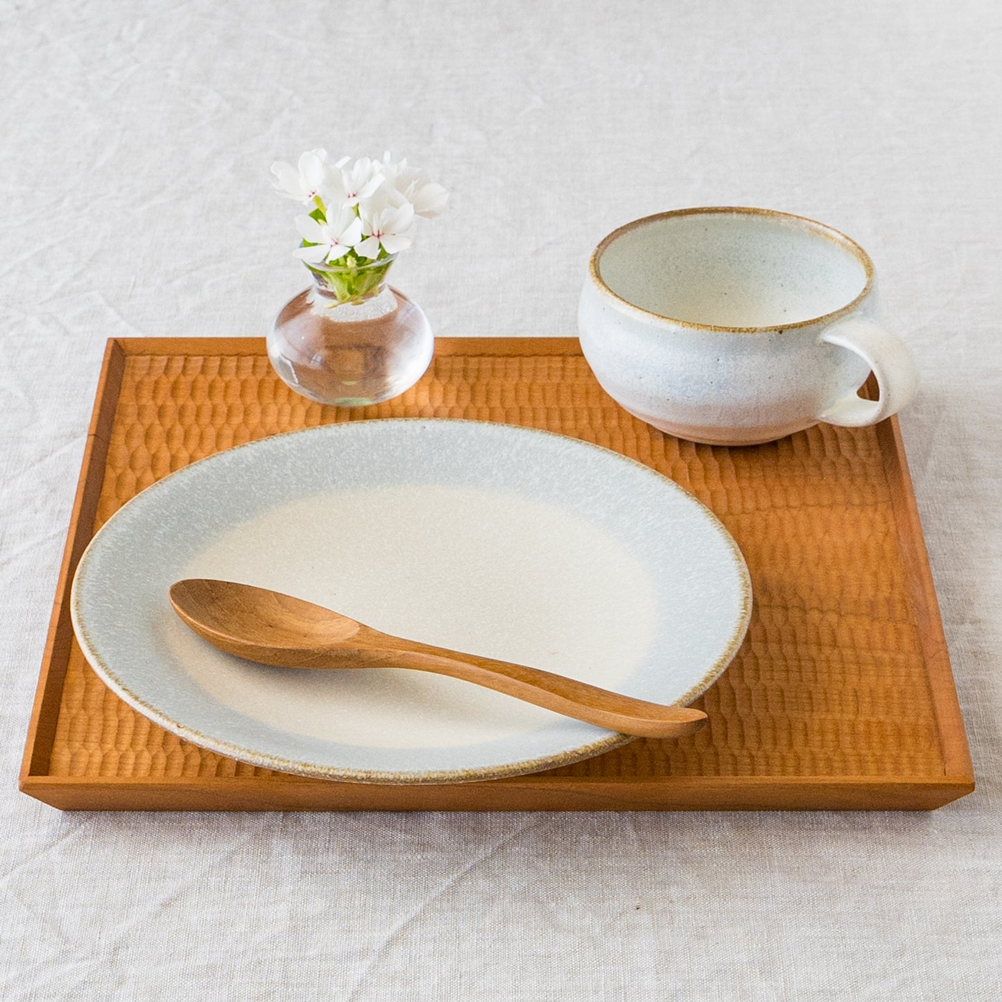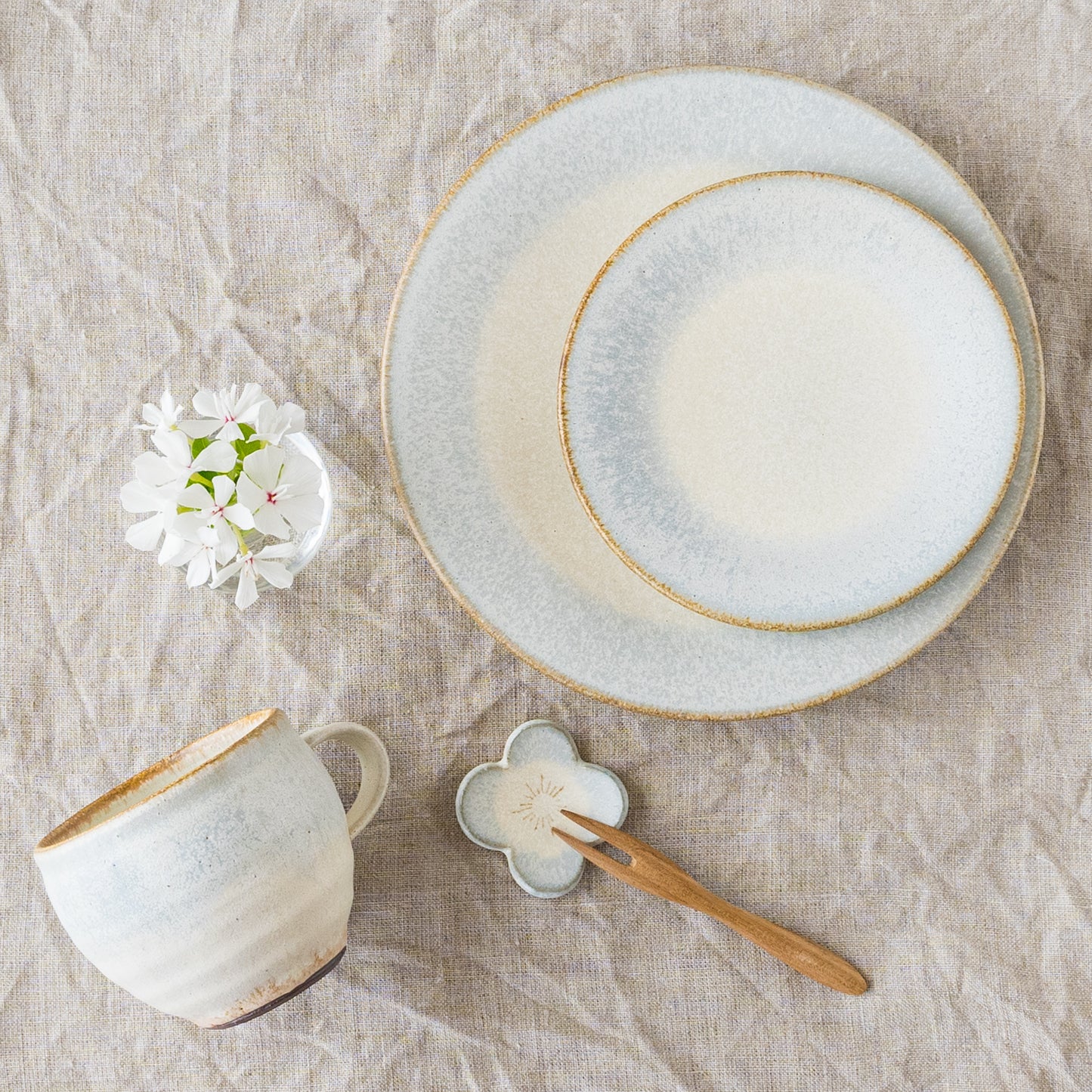 やさしく落ち着いた風合いなので、いつものお料理を上品に彩ってくれます。手仕事の温かさを感じる揺らぎや焼成時に小さな穴が残るピンホールなど繊細さと味わい深さを併せ持っています。