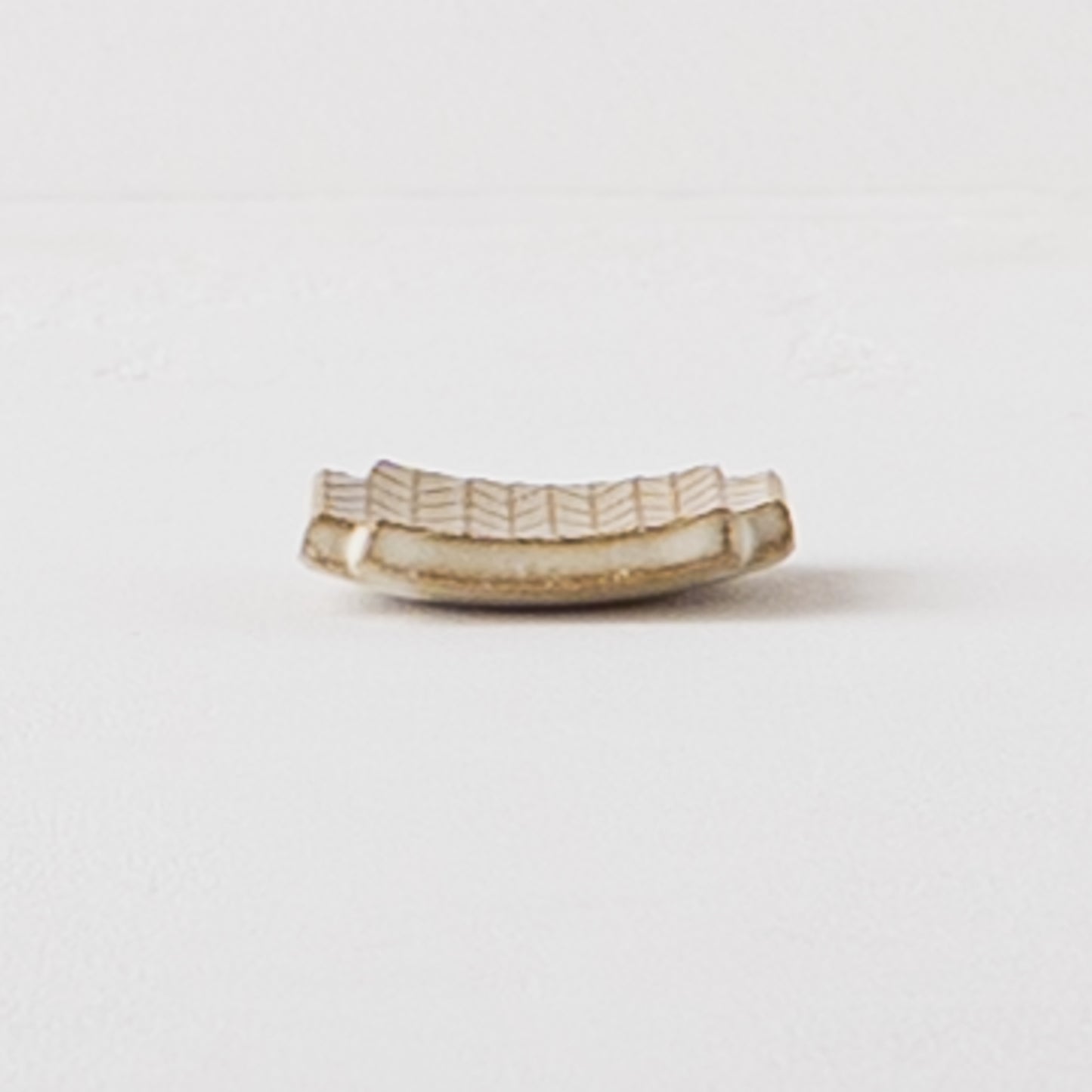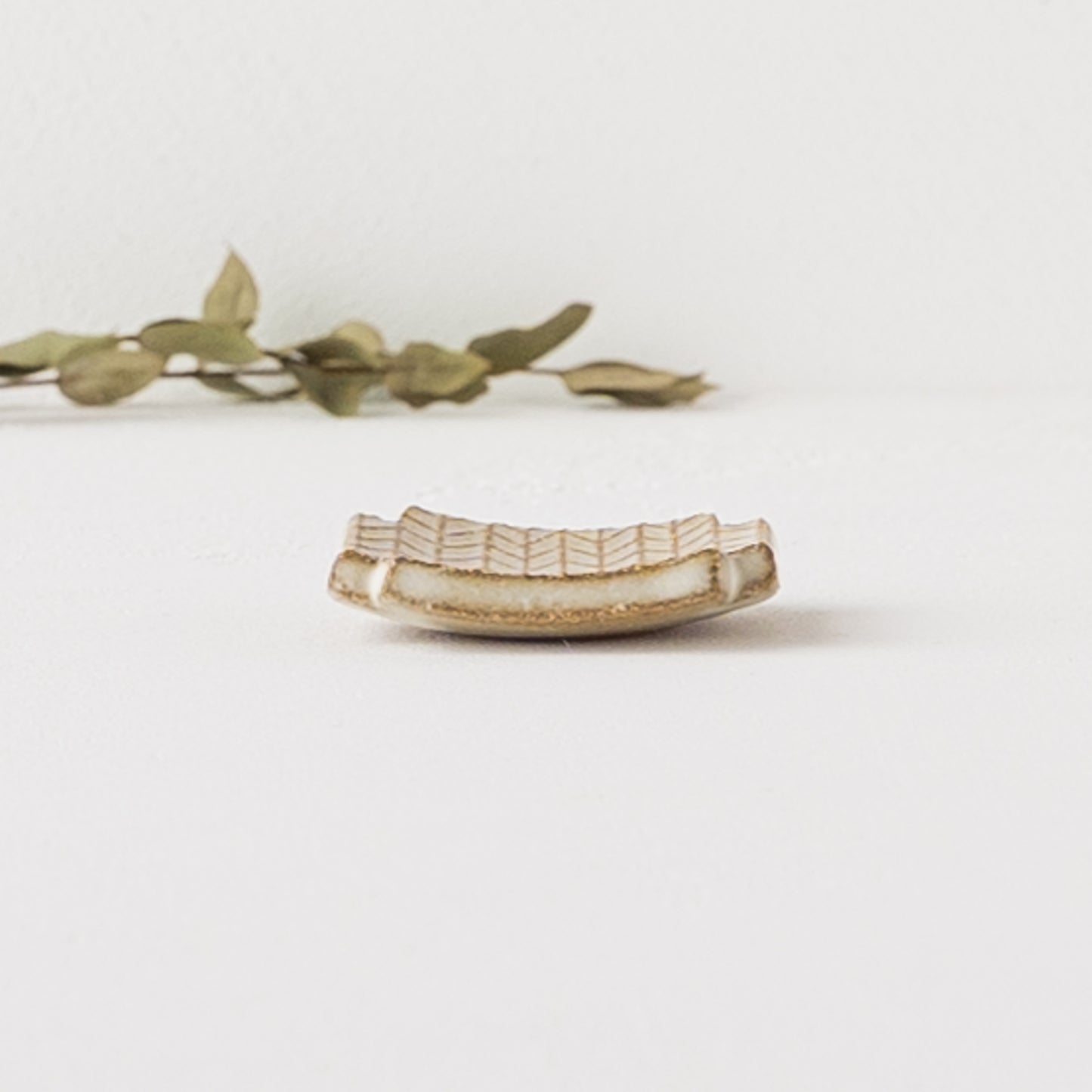 縁の部分がゆるやかに立ち上がったおしゃれな佇まいのクロス型。中央が窪んでいるのでスプーンやフォークなどしっかりと収まります。カトラリーレストとして使えるのも嬉しいです。