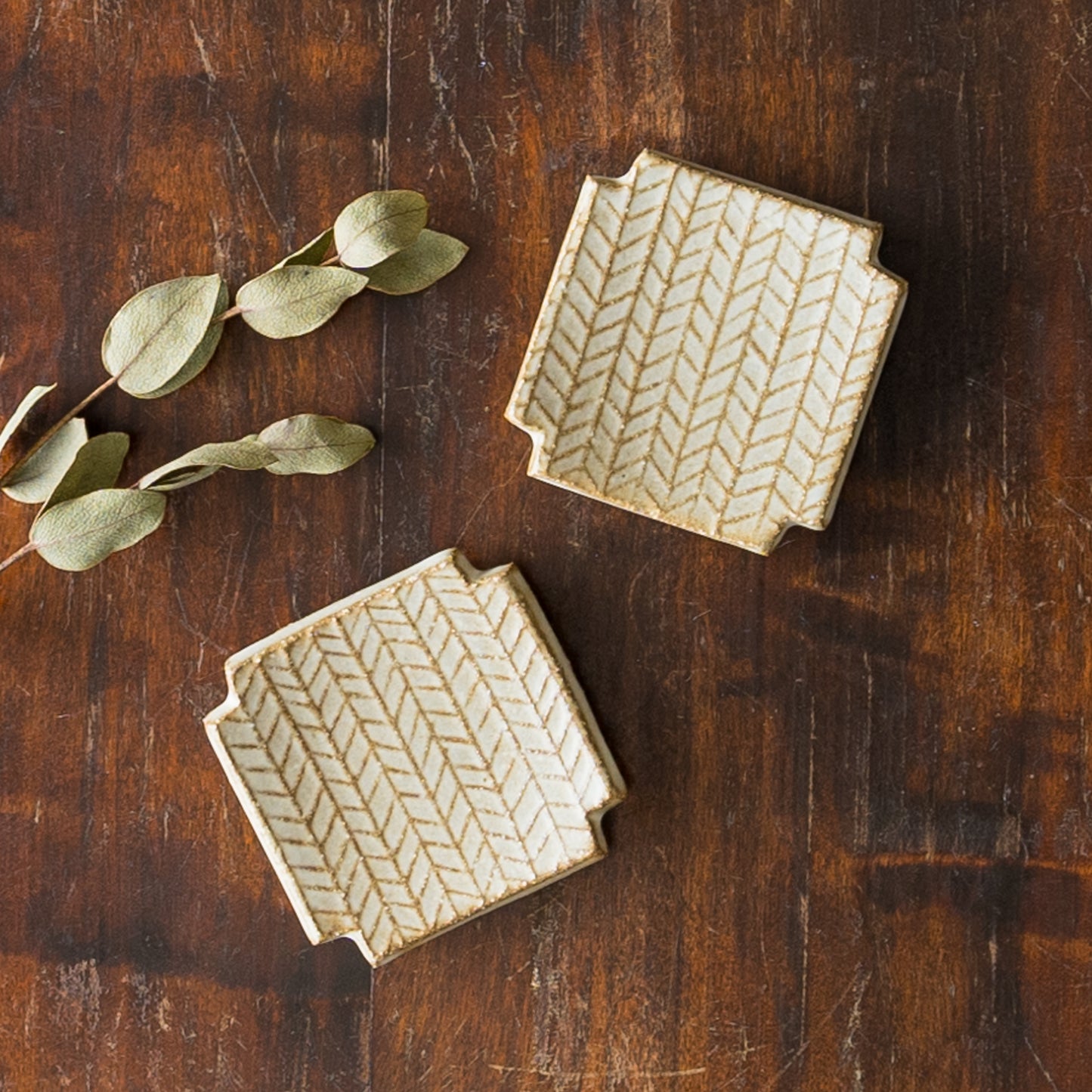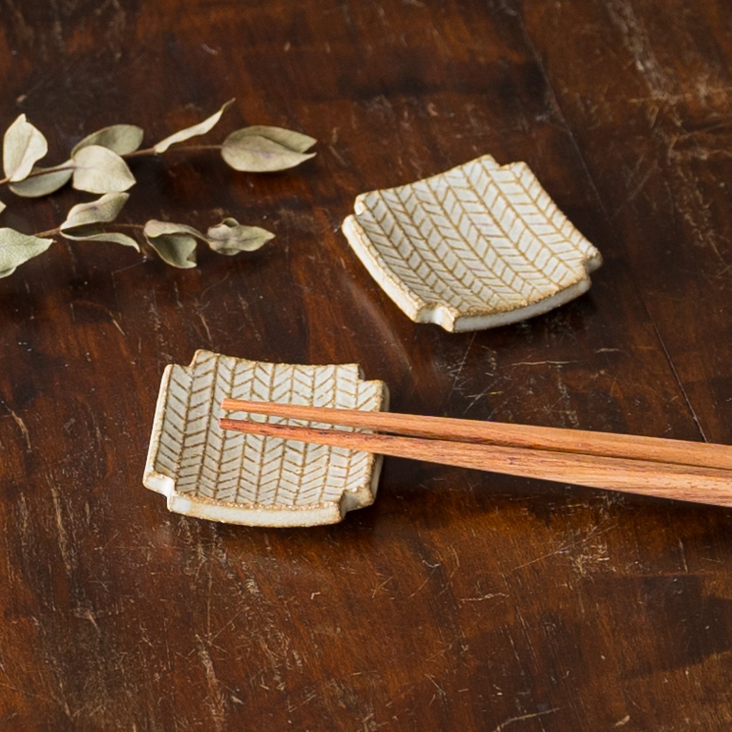 箸置きがあるとだけできちんと感が出て、食卓全体が引き締まった印象にしてくれます。手持ちの器や和洋問わず相性の良いヘリンボーン柄はついつい出番が多くなりそう。お誕生日やお祝いの贈り物にもおすすめです。