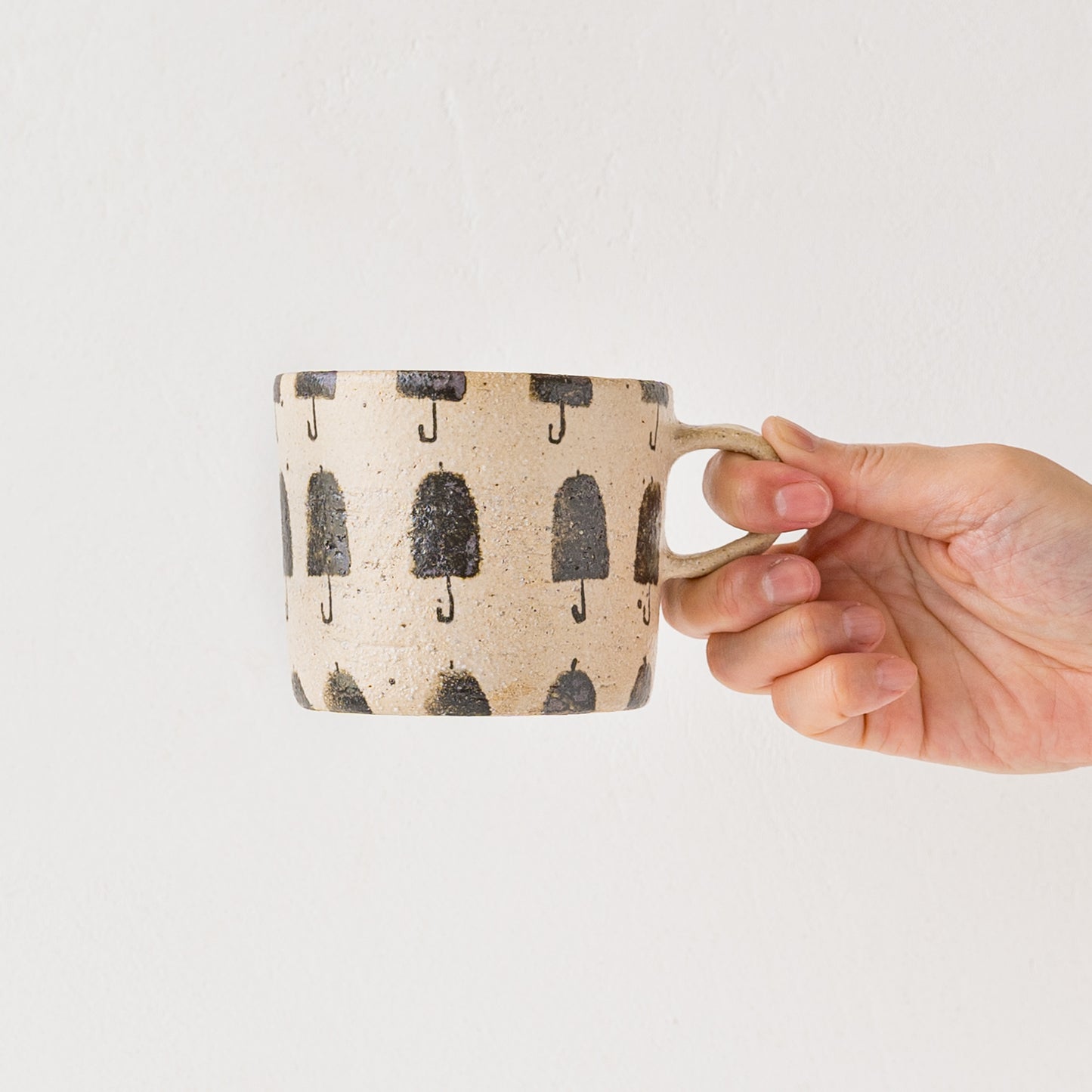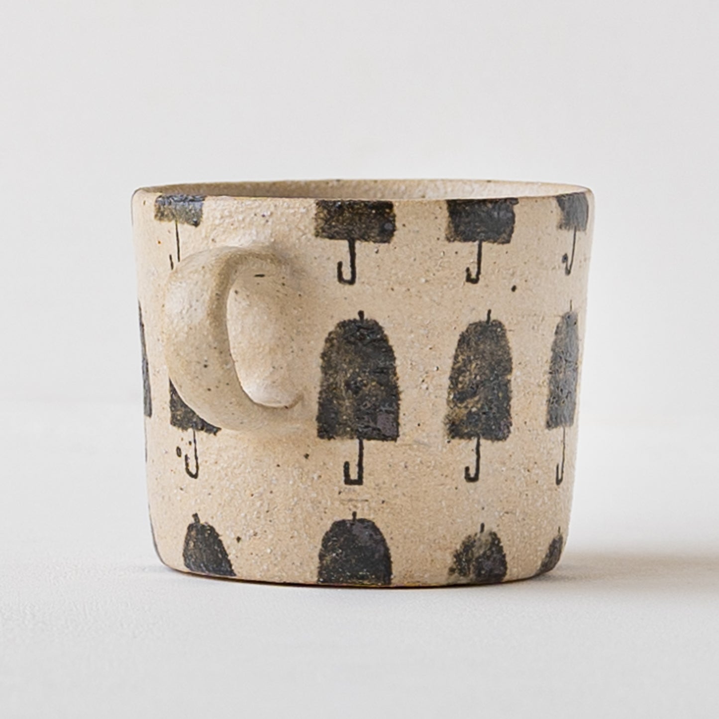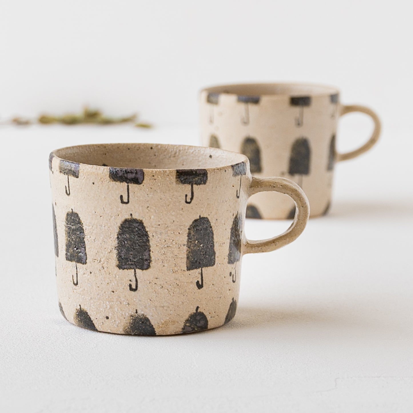 北欧テキスタイルのようなスタイリッシュで温かみのあるデザイン。傘の形にかたどったスポンジをポンポンと押し当てた後、細かい部分を手描きで加えていくので、なんとも優しくて柔らかな風合いに仕上がります。