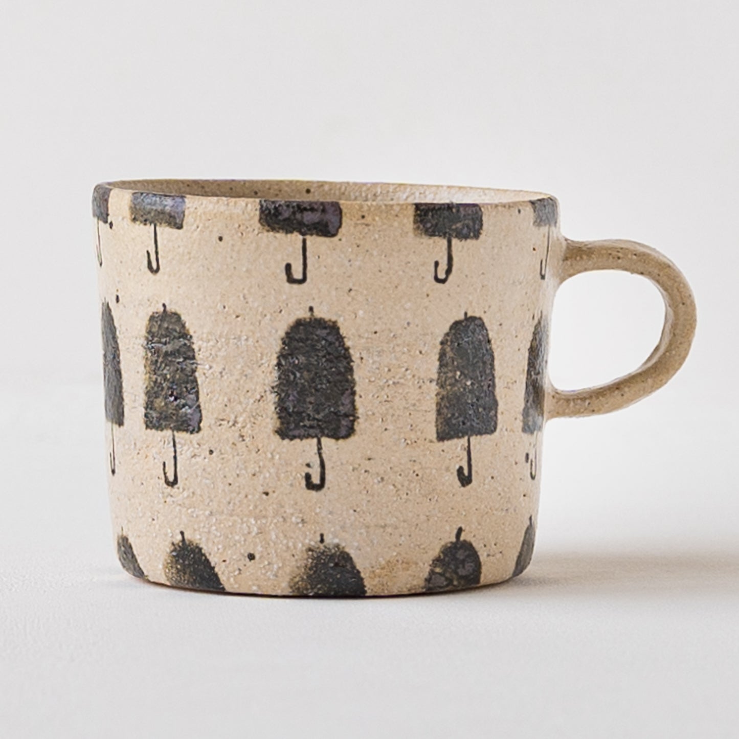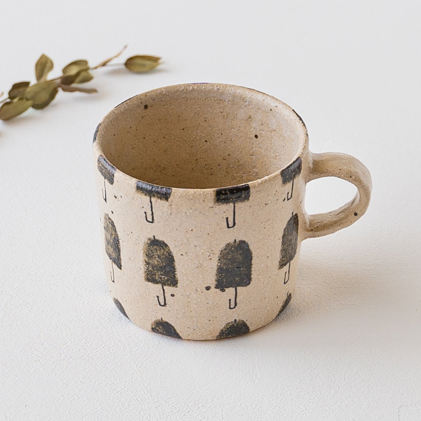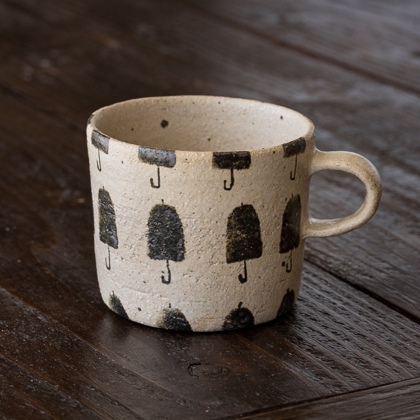 北欧テキスタイルのようなスタイリッシュで温かみのあるデザイン。傘の形にかたどったスポンジをポンポンと押し当てた後、細かい部分を手描きで加えていくので、なんとも優しくて柔らかな風合いに仕上がります。