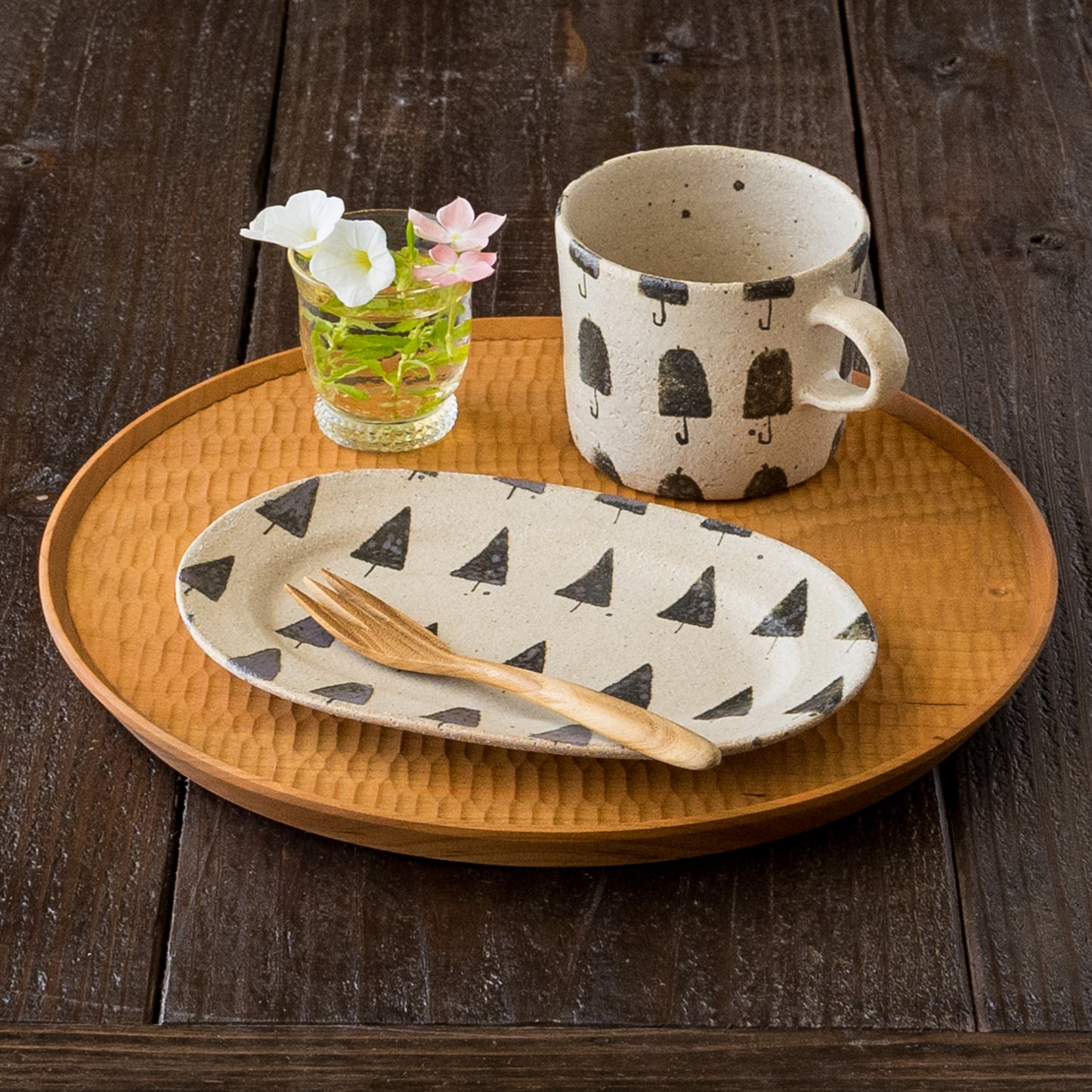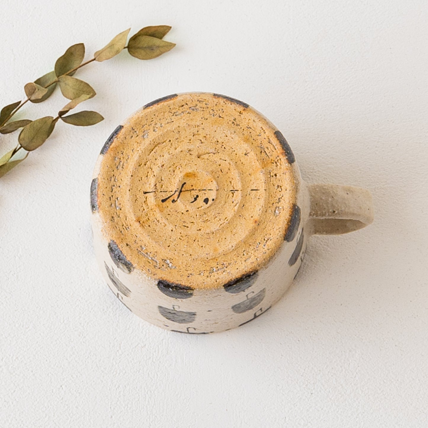 全体的につるっと優しい手触りですが、ところどころ土の凸凹や縁のざらつき、土の鉄分が焼成時に表れる黒点など土ものならではの温もりが伝わってきます。