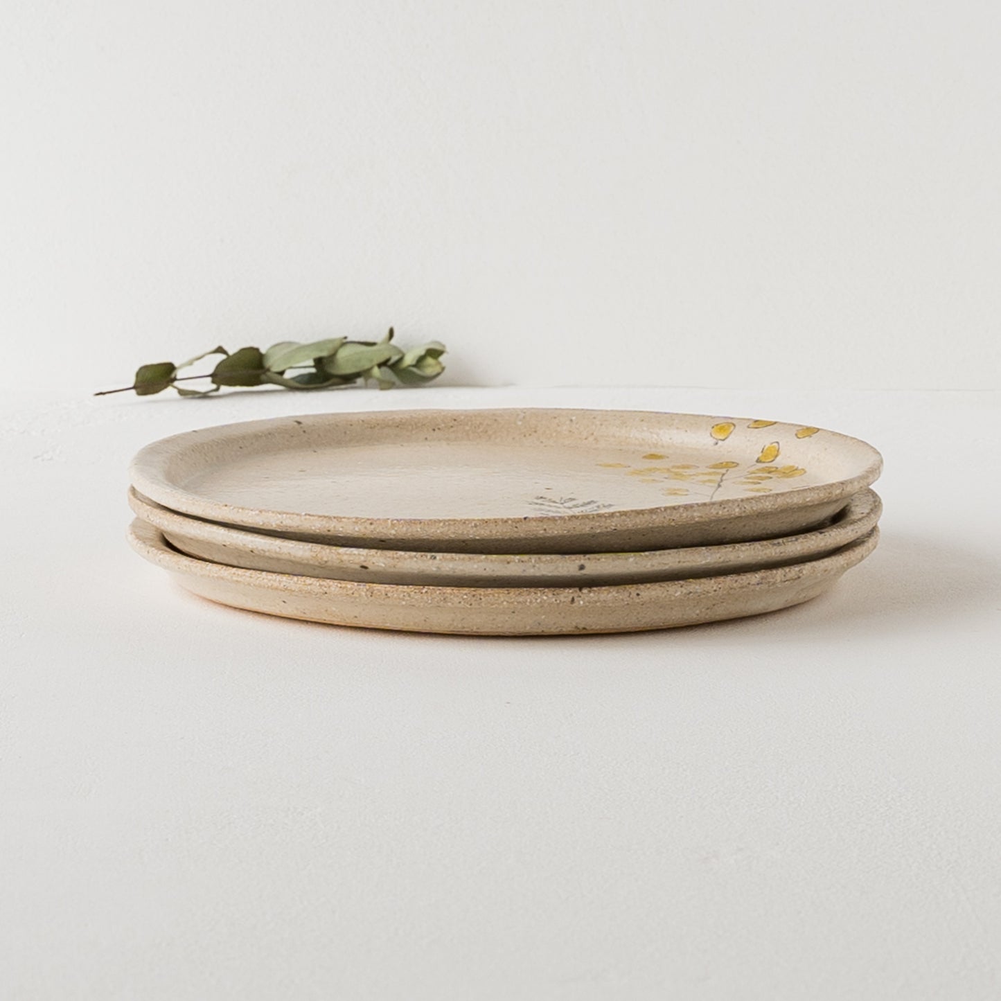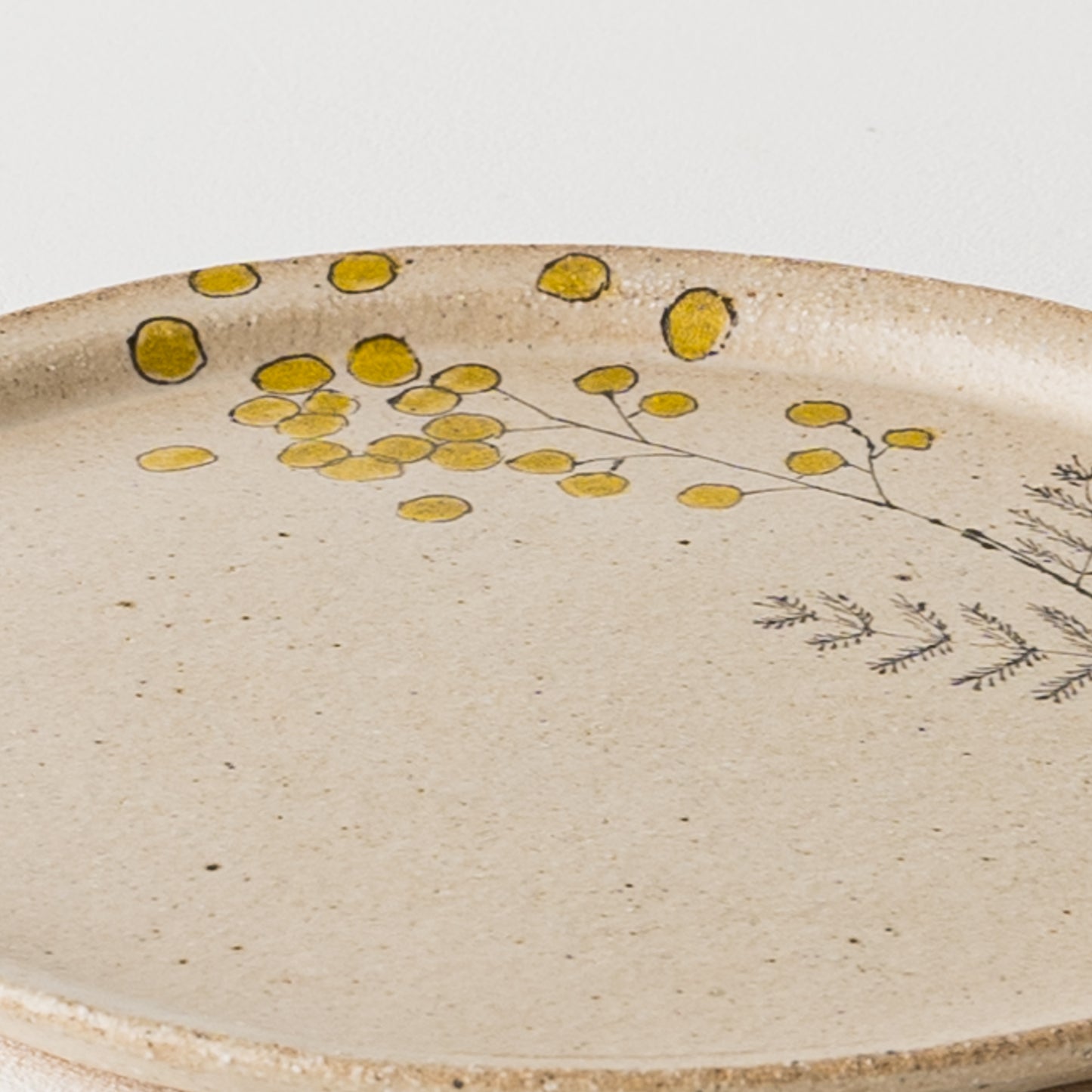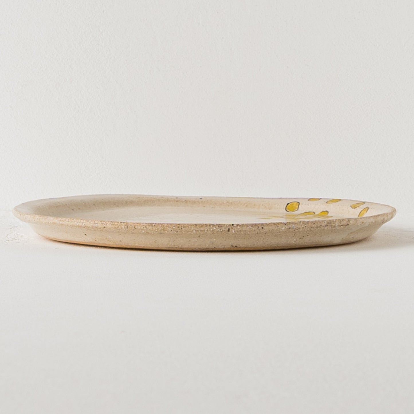 全体的につるっと優しい手触りですが、ところどころ土の凸凹や縁のざらつき、土の鉄分が焼成時に酸化して表れる黒点など土ものならではの温もりが伝わってきます。