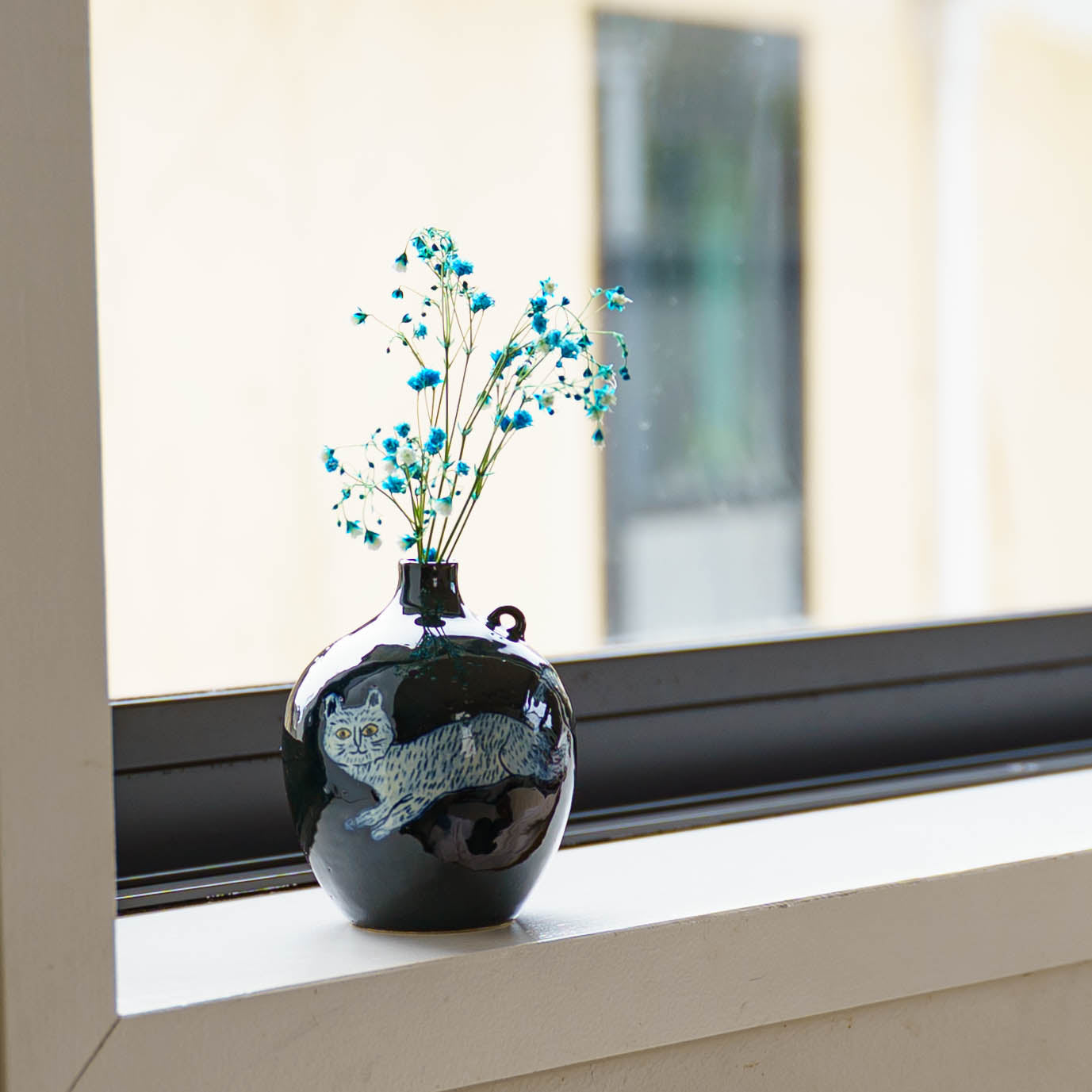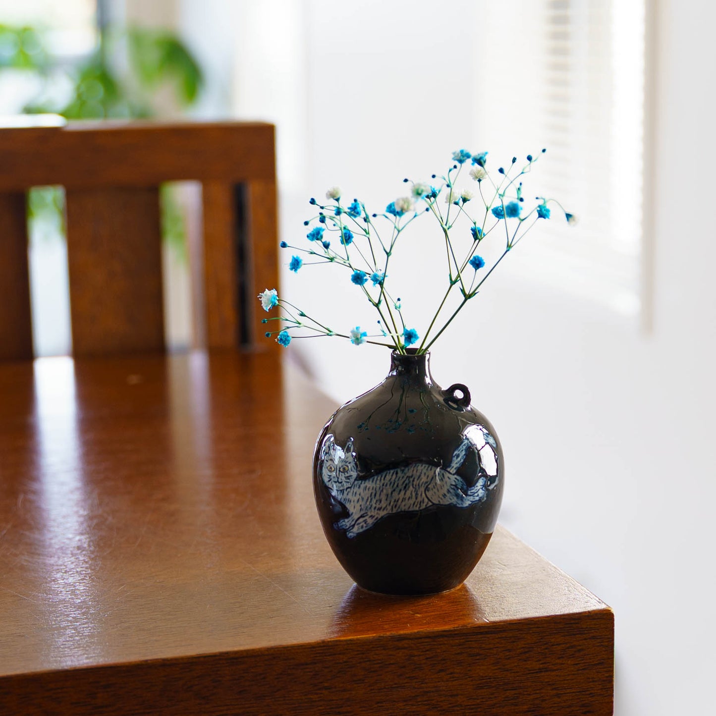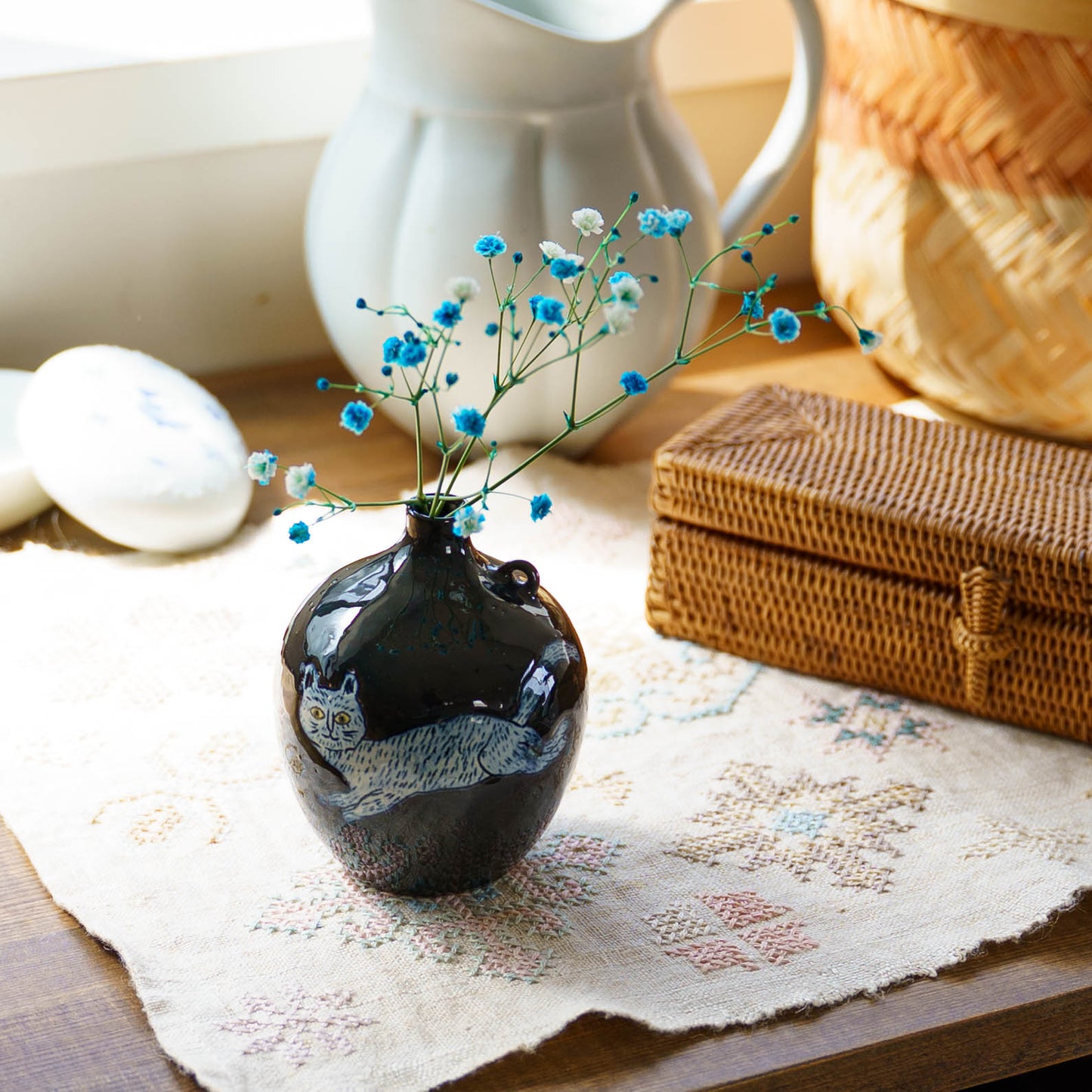 やさしいフォルムに、ねこ特有の愛らしさが描かれた一輪挿し。生き生きとしたねこの絵柄とスタイリッシュなデザインが遊び心と落ち着きを絶妙に融合させていて、どんな空間にもさりげなく華やぎを添えてくれます。