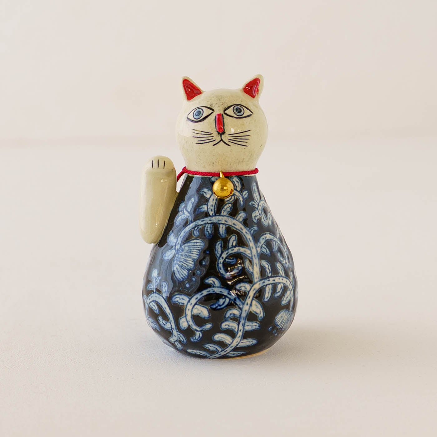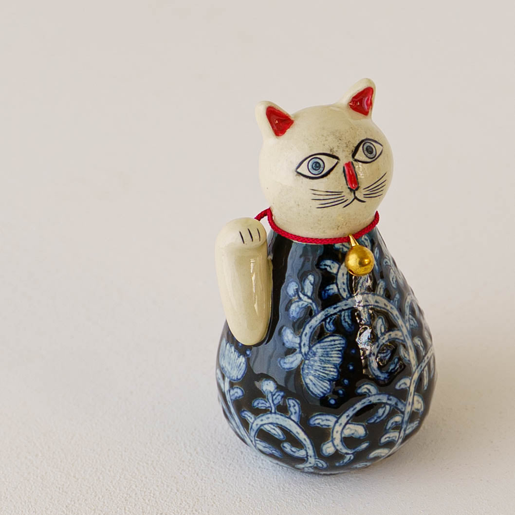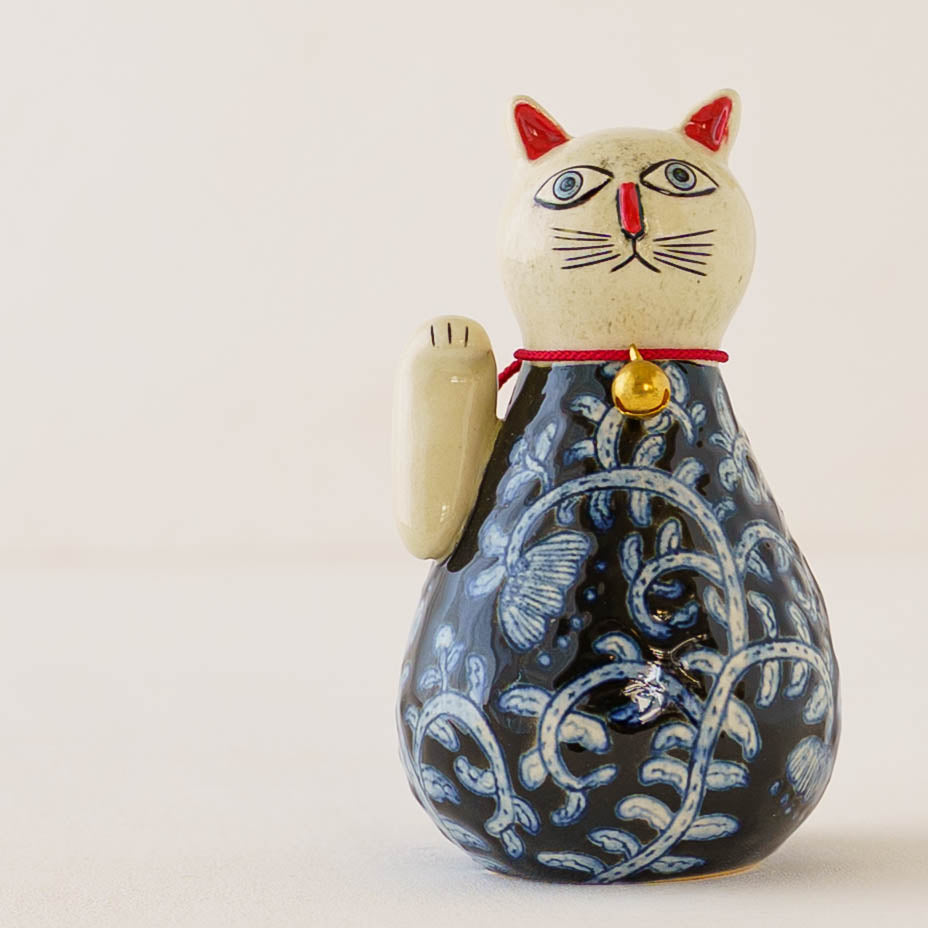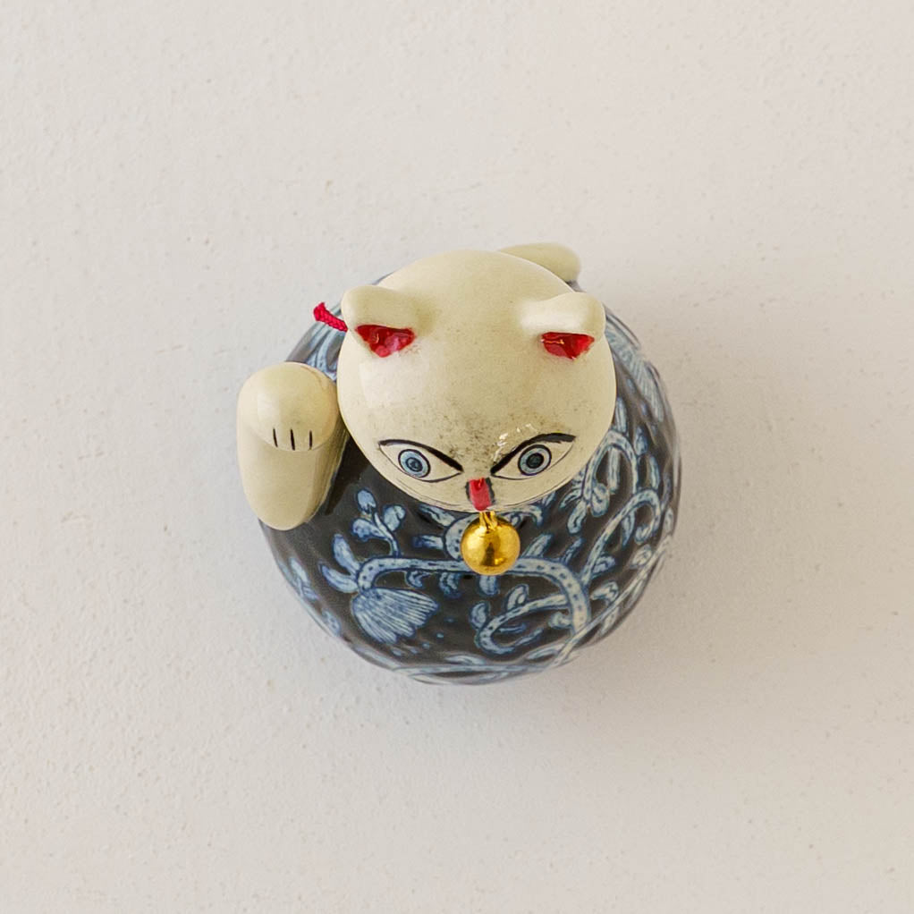 ころんと丸みを帯びたやさしいフォルムに、ねこ特有の愛らしさと凛とした佇まいが感じられる招き猫。洗練されたデザインと柔らかなラインが、遊び心と落ち着きを絶妙に融合させていて、どんな空間にもさりげなく華やぎを添えてくれます。