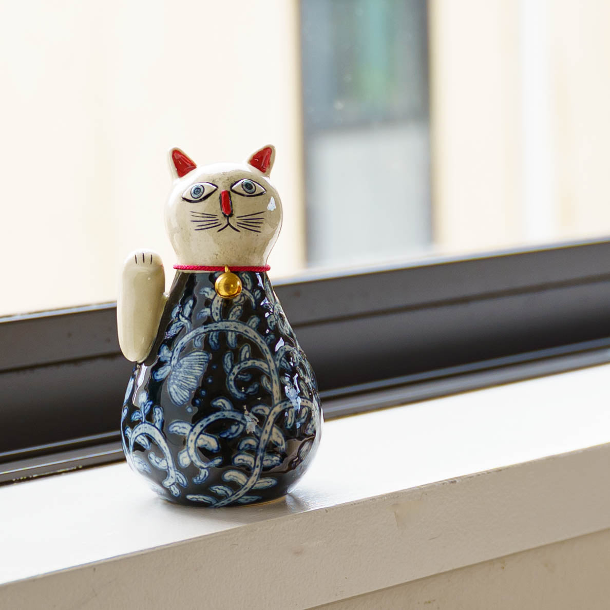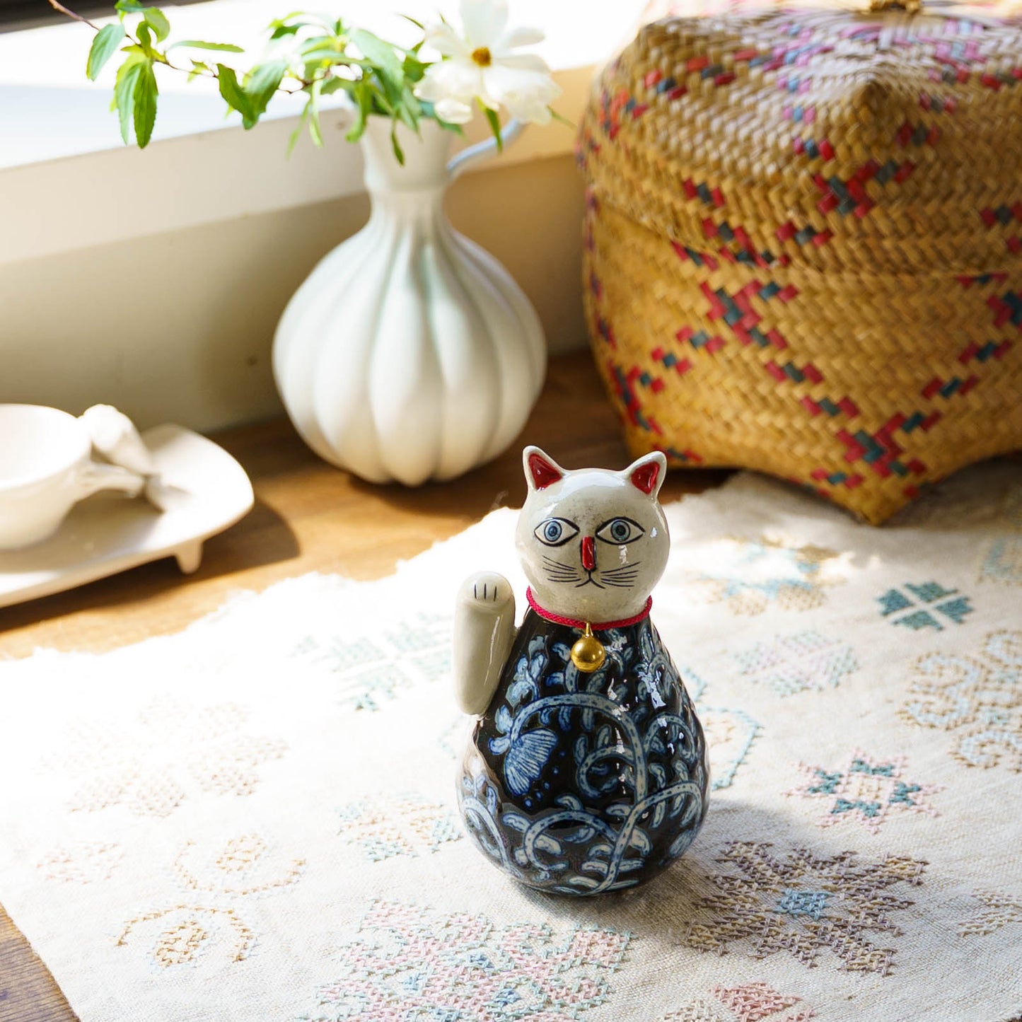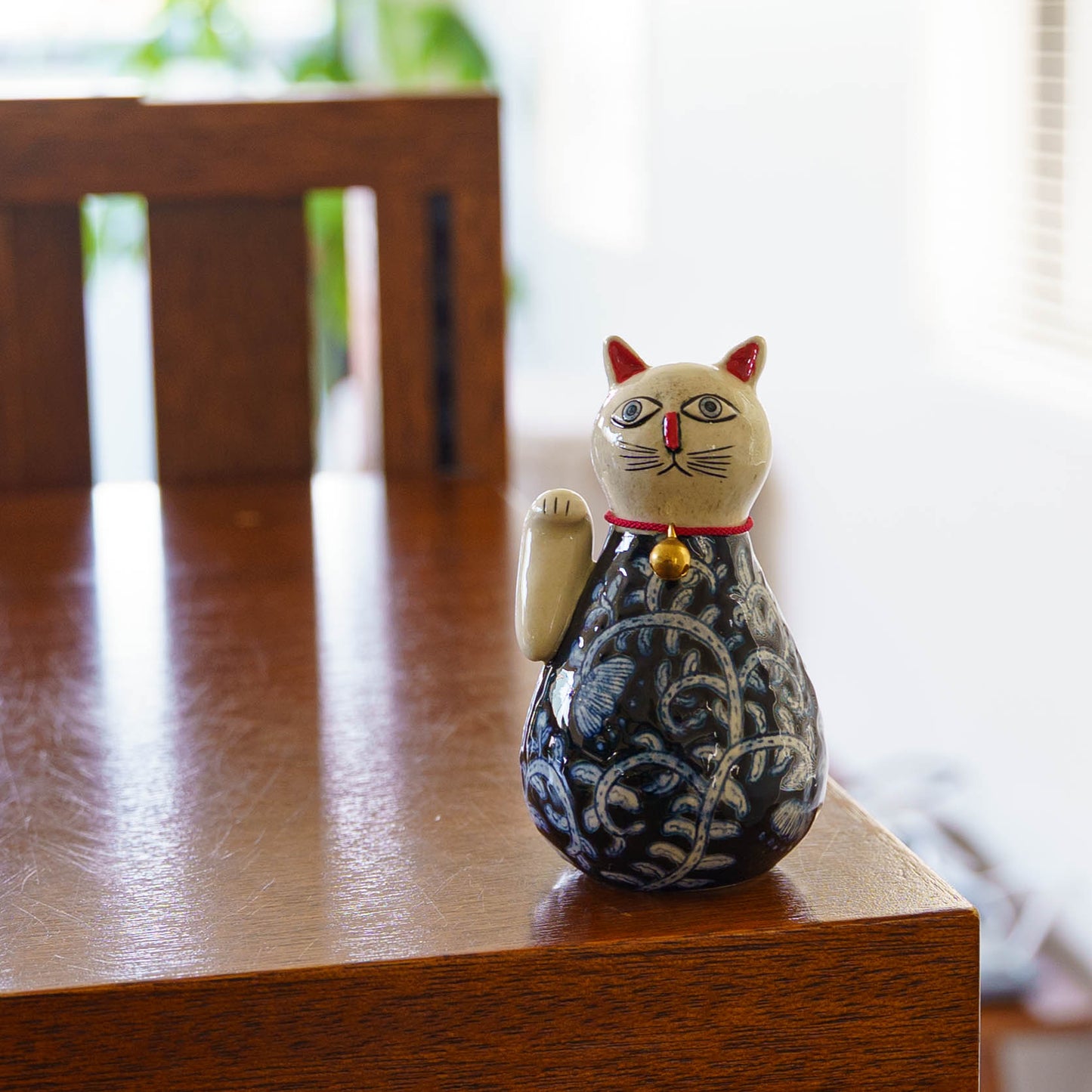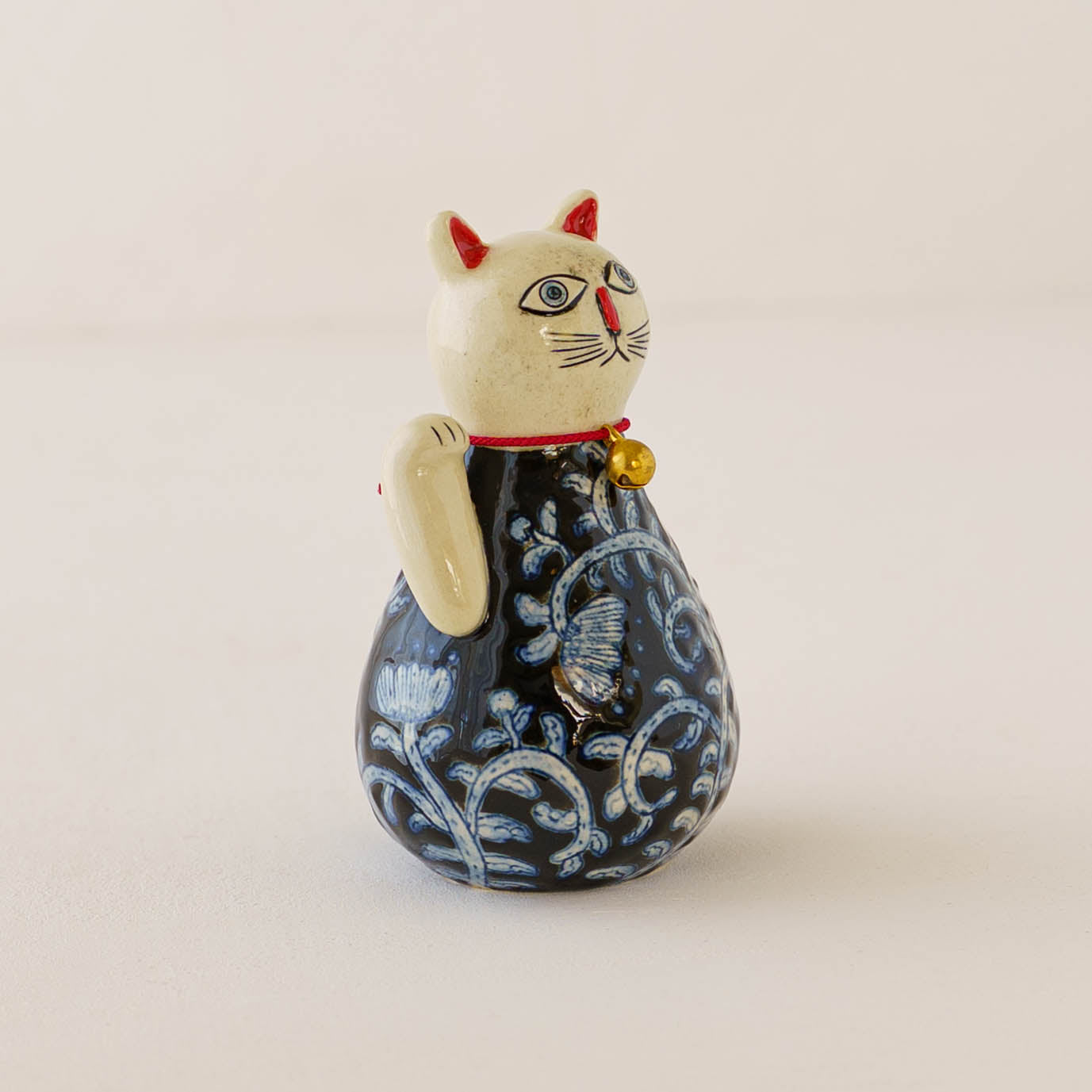 ころんと丸みを帯びたやさしいフォルムに、ねこ特有の愛らしさと凛とした佇まいが感じられる招き猫。洗練されたデザインと柔らかなラインが、遊び心と落ち着きを絶妙に融合させていて、どんな空間にもさりげなく華やぎを添えてくれます。