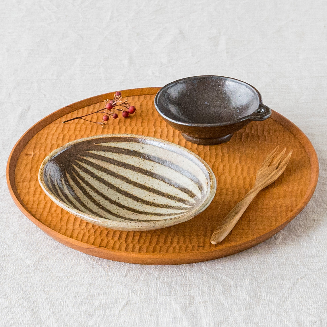 素朴なのにしっかりとした存在感があるうつわ。見た目の個体差、個性を大切にという言葉のとおり、土が持つ豊かな表情を楽しめる小鉢です。