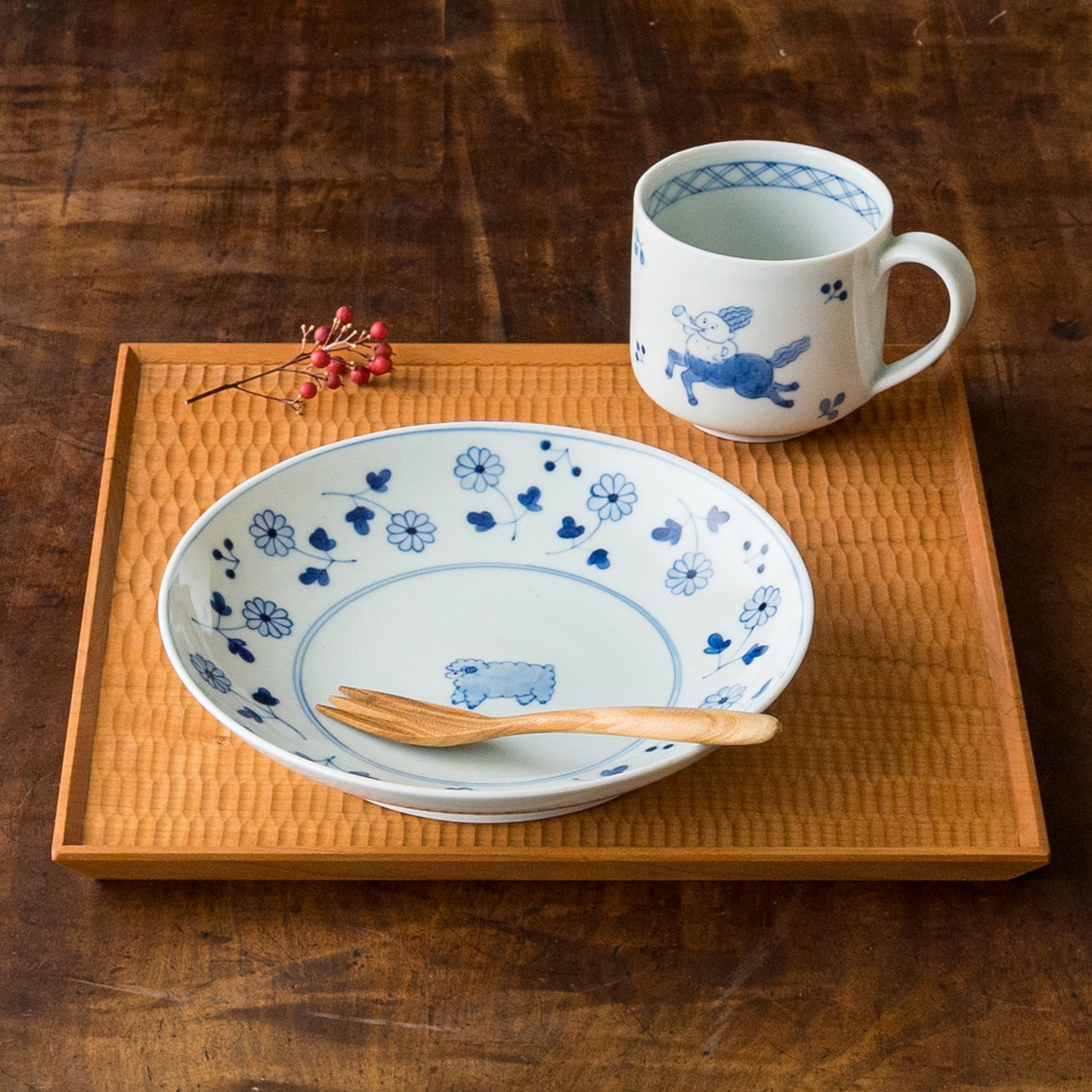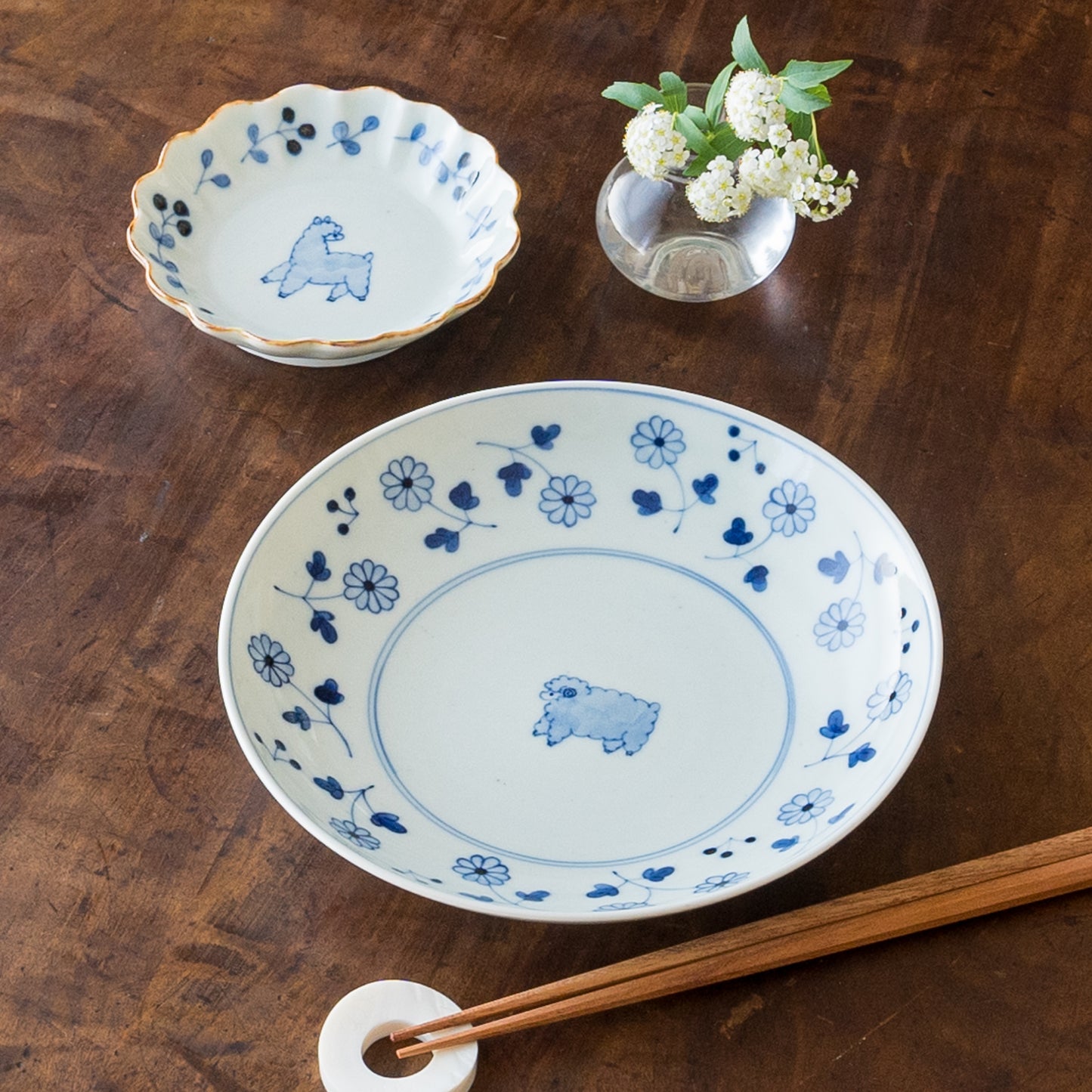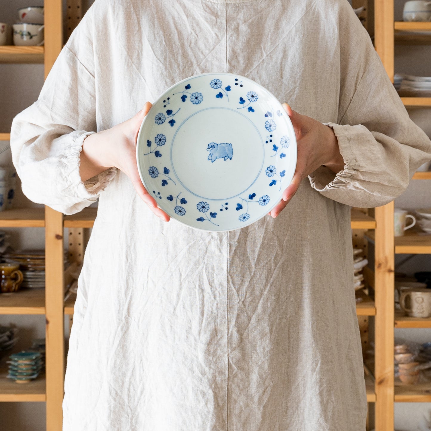 瀬戸の伝統的な瀬戸染付、芙蓉手からインスパイアを受けた文様構成にやさしく穏やかな気持ちにしてくれる愛らしい動物たちがお互い違和感なく調和しているのでずっと眺めていたくなります。