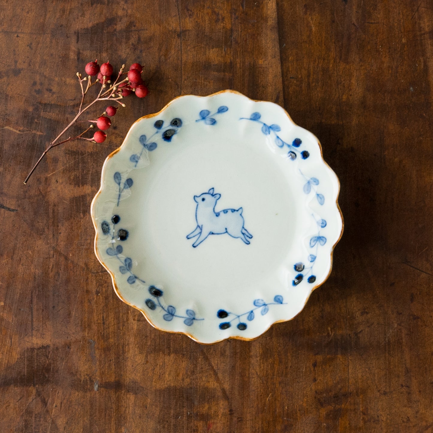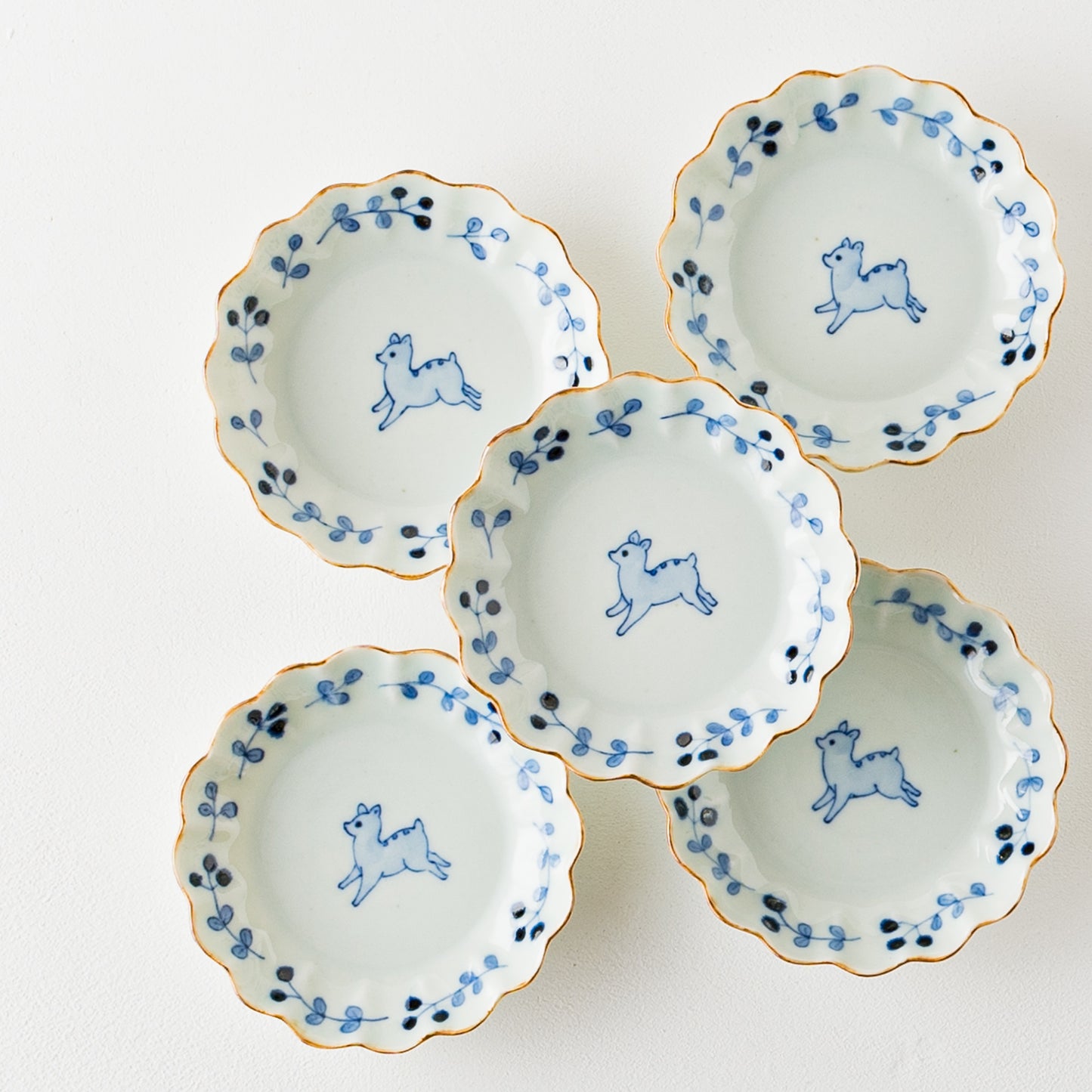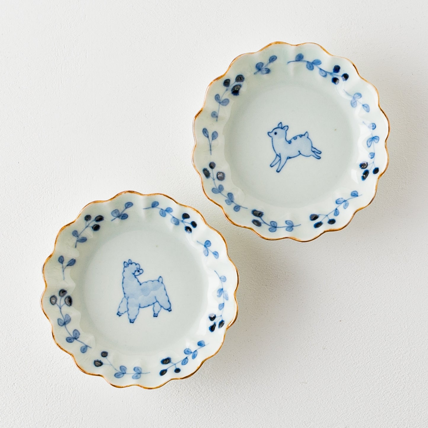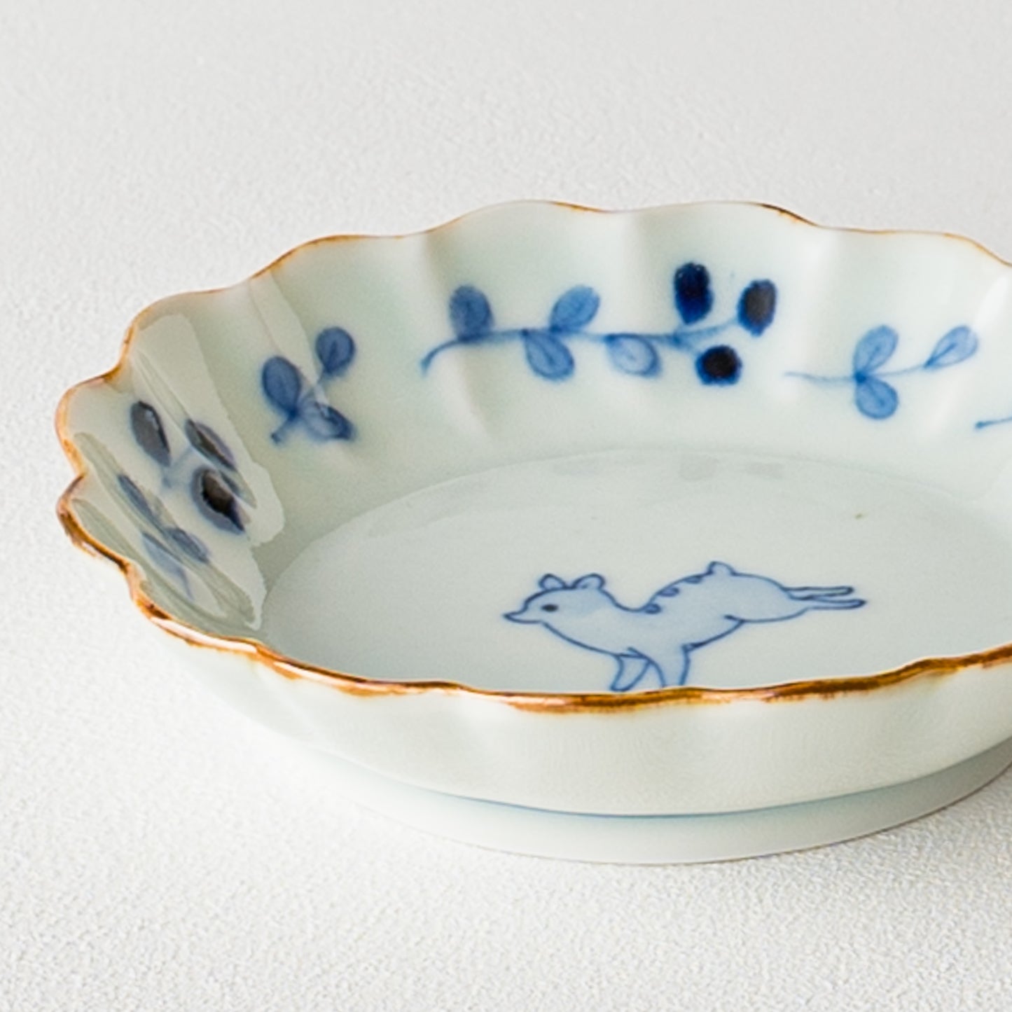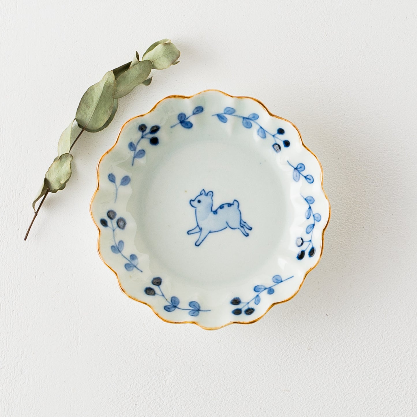 瀬戸の伝統的な瀬戸染付、芙蓉手からインスパイアを受けた文様構成にやさしく穏やかな気持ちにしてくれる愛らしい動物たちがお互い違和感なく調和しているのでずっと眺めていたくなります。