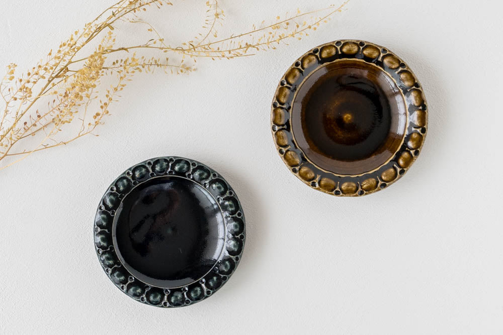いろいろな色やかたちの小皿を食卓に並べるとテーブルがパッと華やぎます。ちょこっとおかずをのせたり、お惣菜やおつまみ、お菓子などいろいろな使い道があり楽しめます。