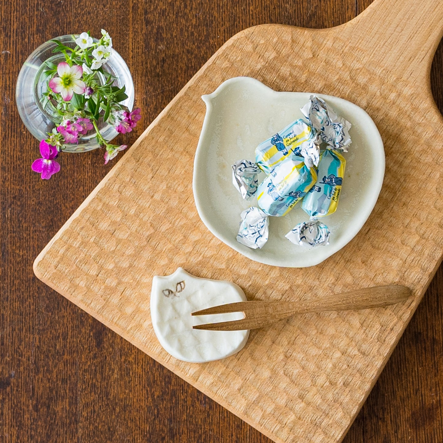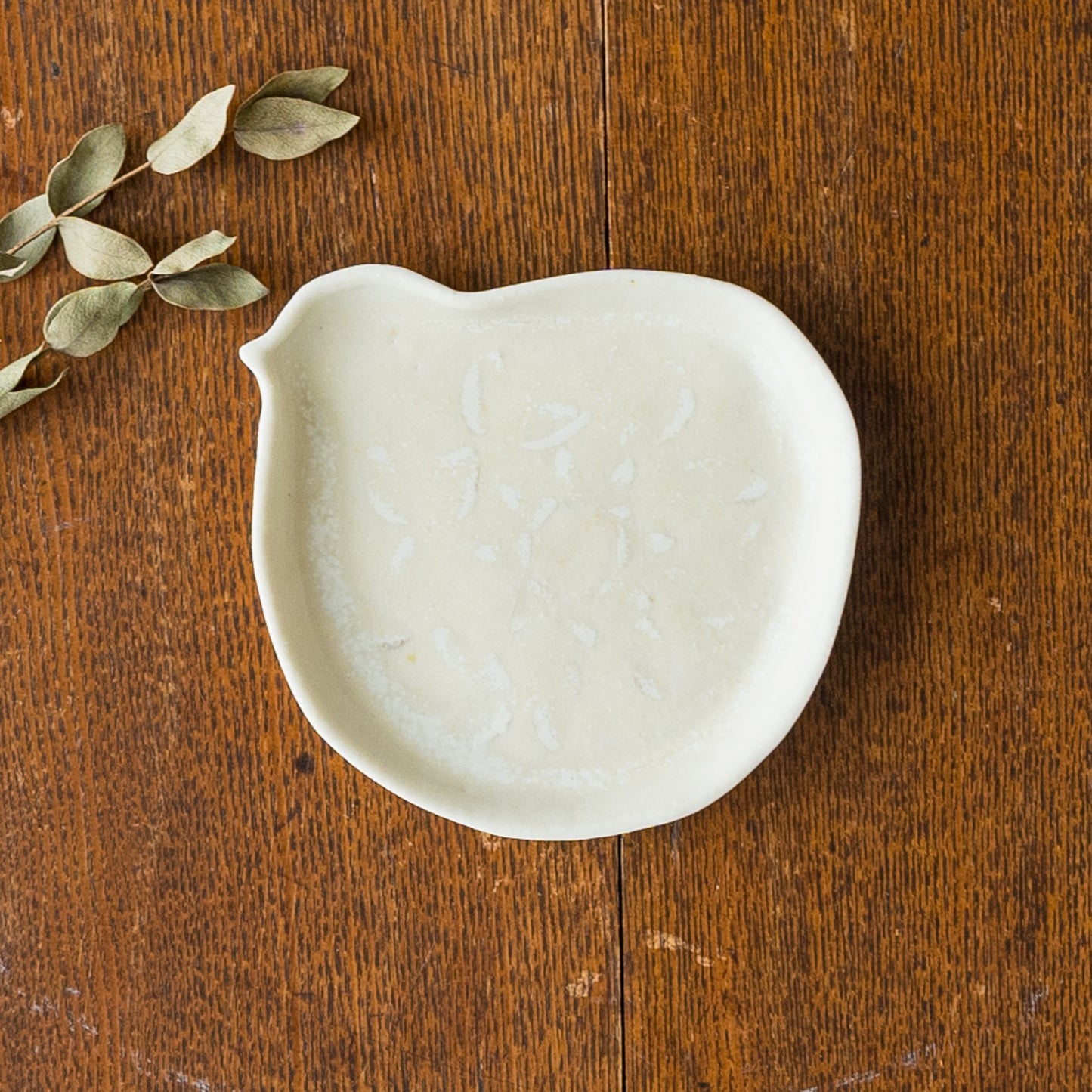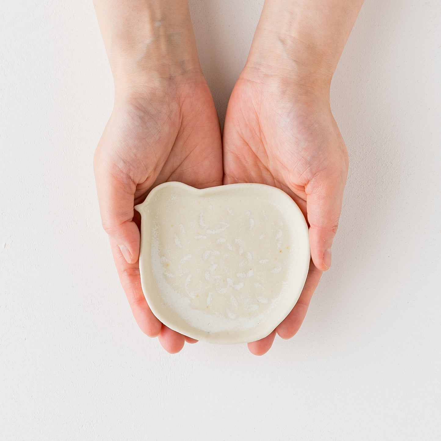 温もりを感じるまあるいやさしいかたちにちょこんと突き出た口ばしが可愛らしいとりのお皿。眺めているだけで自然と顔がほころんでしまう幸せな気持ちにしてくれるお皿です。