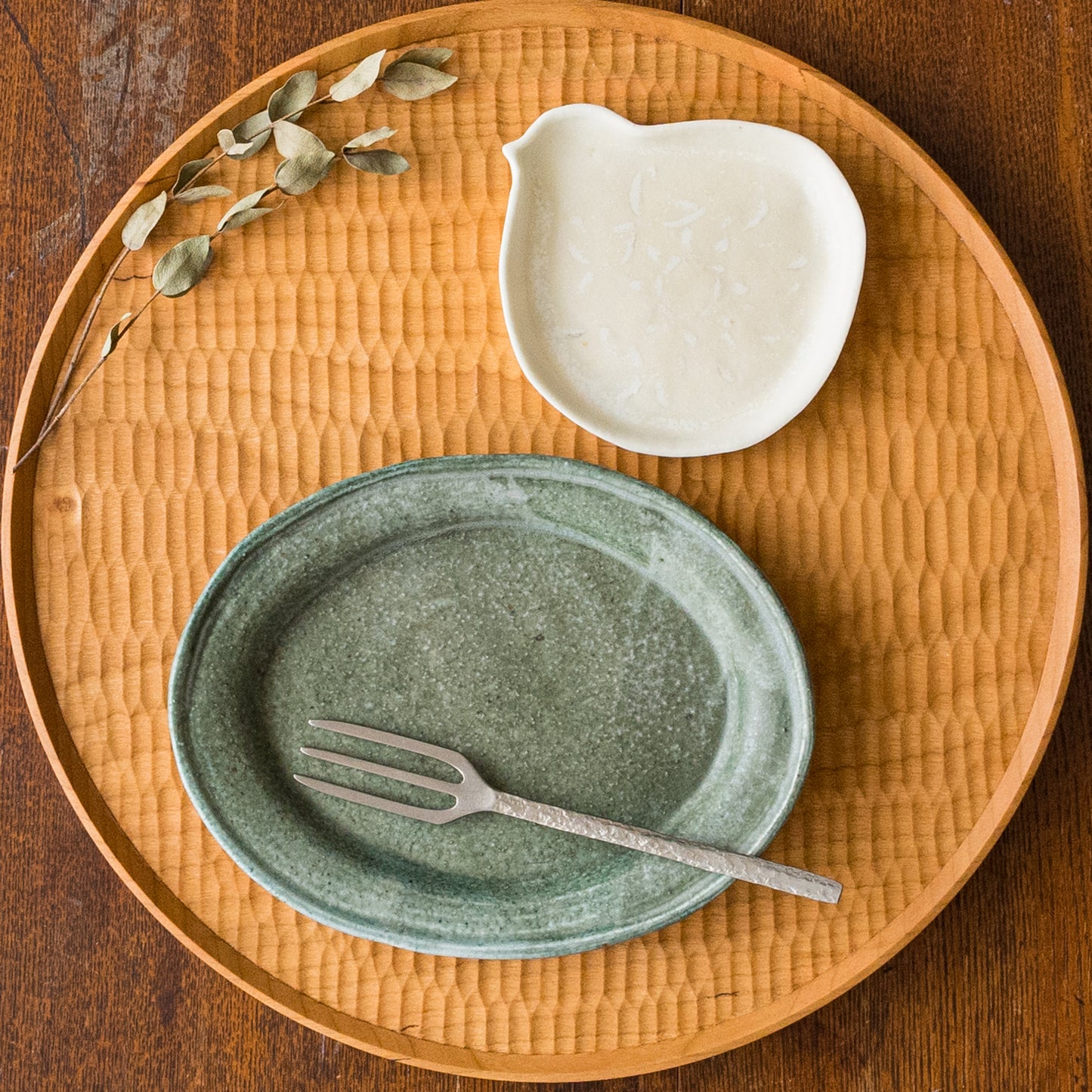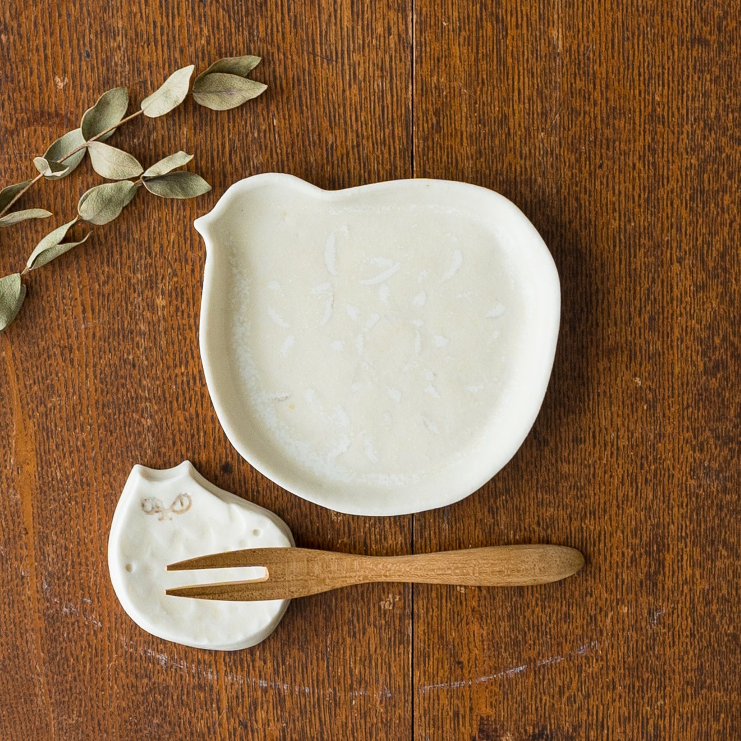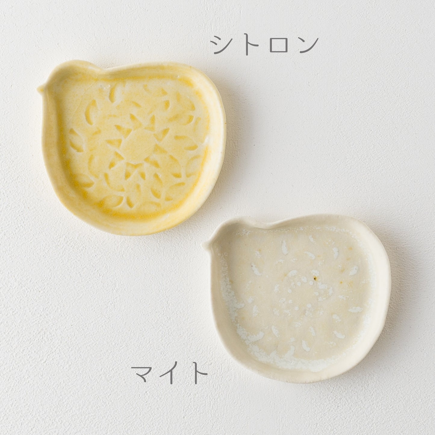温もりを感じるまあるいやさしいかたちにちょこんと突き出た口ばしが可愛らしいとりのお皿。眺めているだけで自然と顔がほころんでしまう幸せな気持ちにしてくれるお皿です。