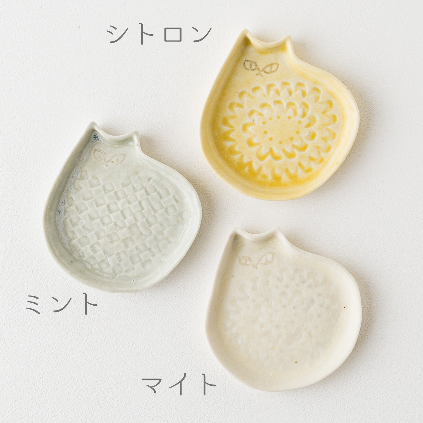 澄ましているような機嫌が悪いようななんとも表情が愛らしいねこのお皿。眺めているだけで自然と顔がほころんでしまう幸せな気持ちにしてくれるお皿です。