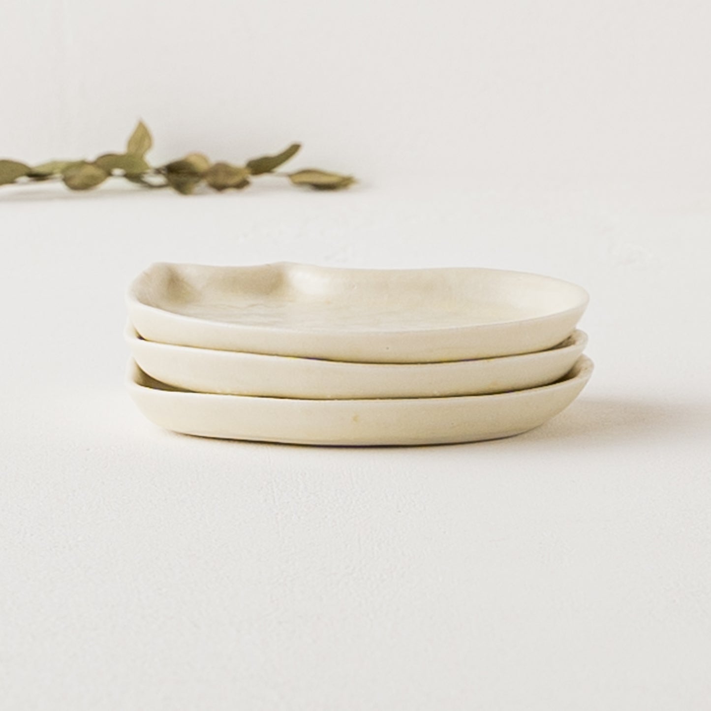 こんな可愛らしいお皿に何を載せようかと考えるだけで楽しくなってしまいます。一口サイズのケーキやショコラ、チョコ、クッキー、グミなどにぴったり。おうちでまったりゆっくりカフェ気分を楽しめますよ。