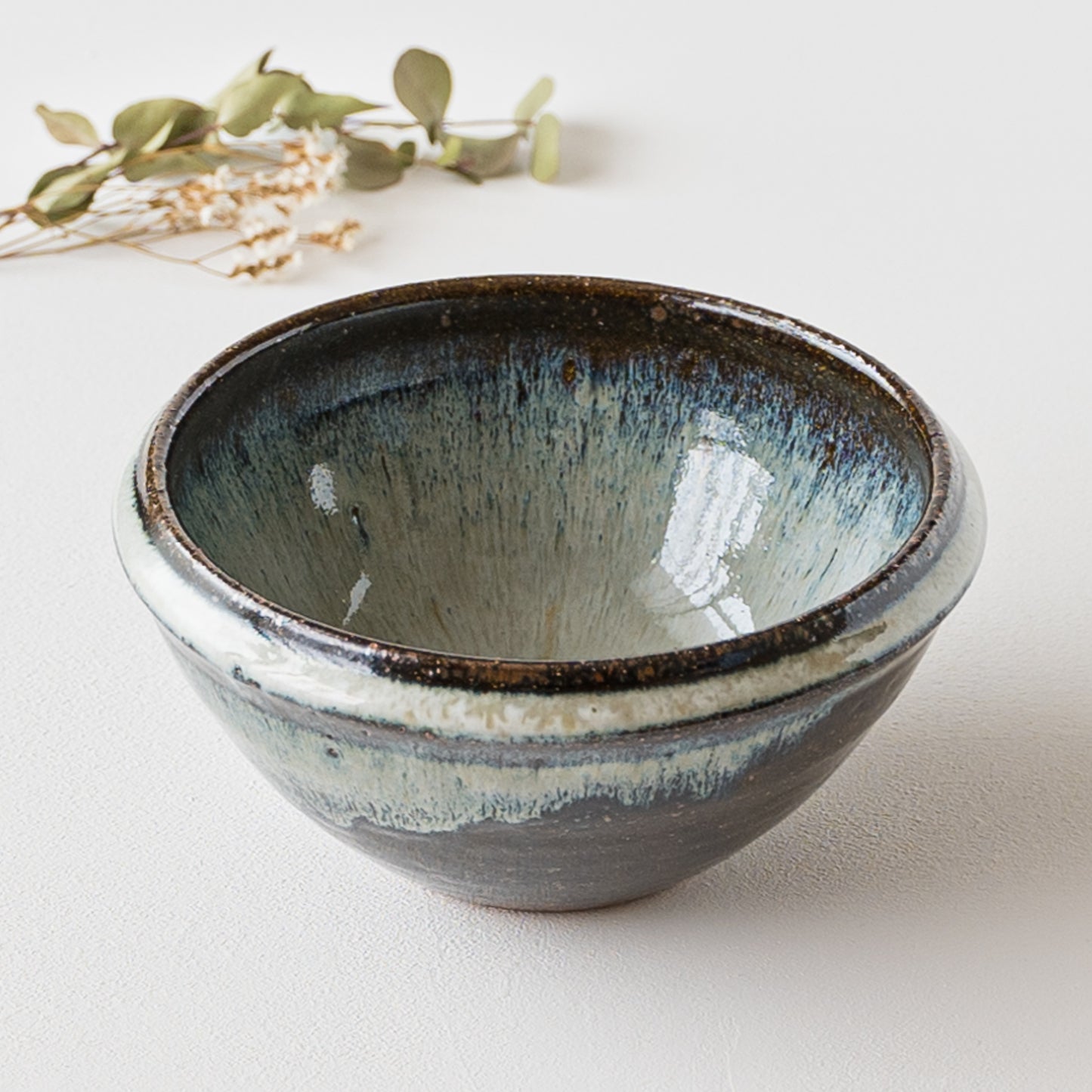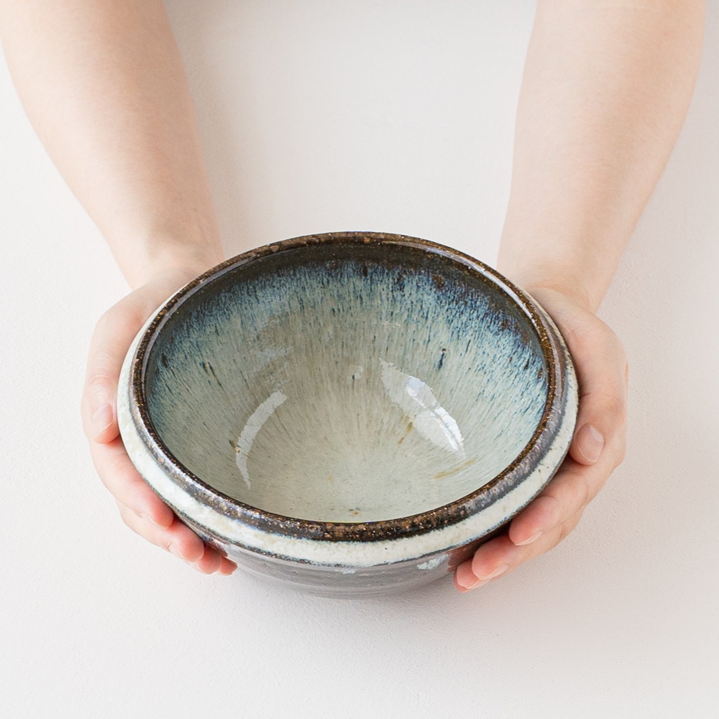 釉薬の掛け方や窯の中での置き場所、炎の当たり方によって多様な表情を見せてくれます。小岱山に積もった雪のような白。光の加減により幻想的な青白に見えたりと、深く美しい色を眺めているだけで引き込まれてしまいます。