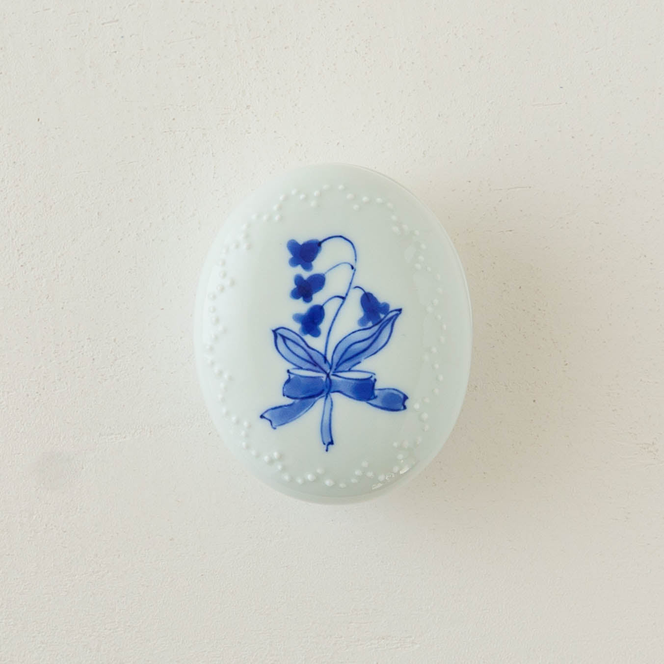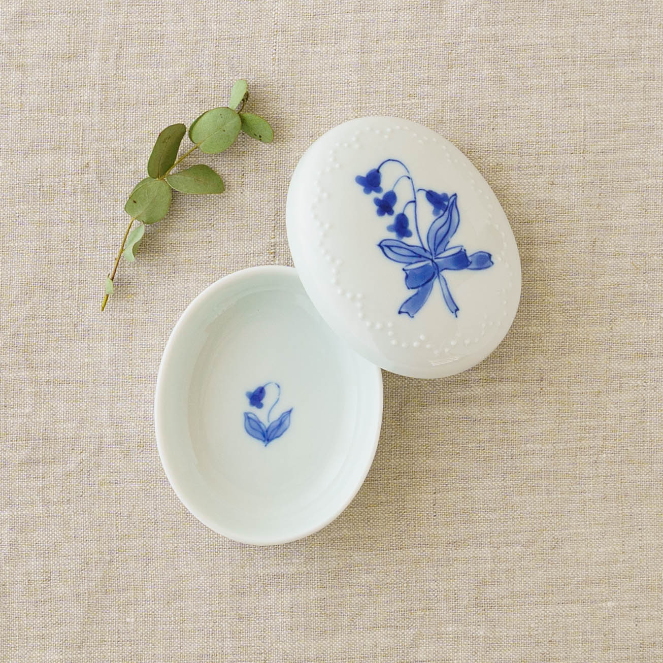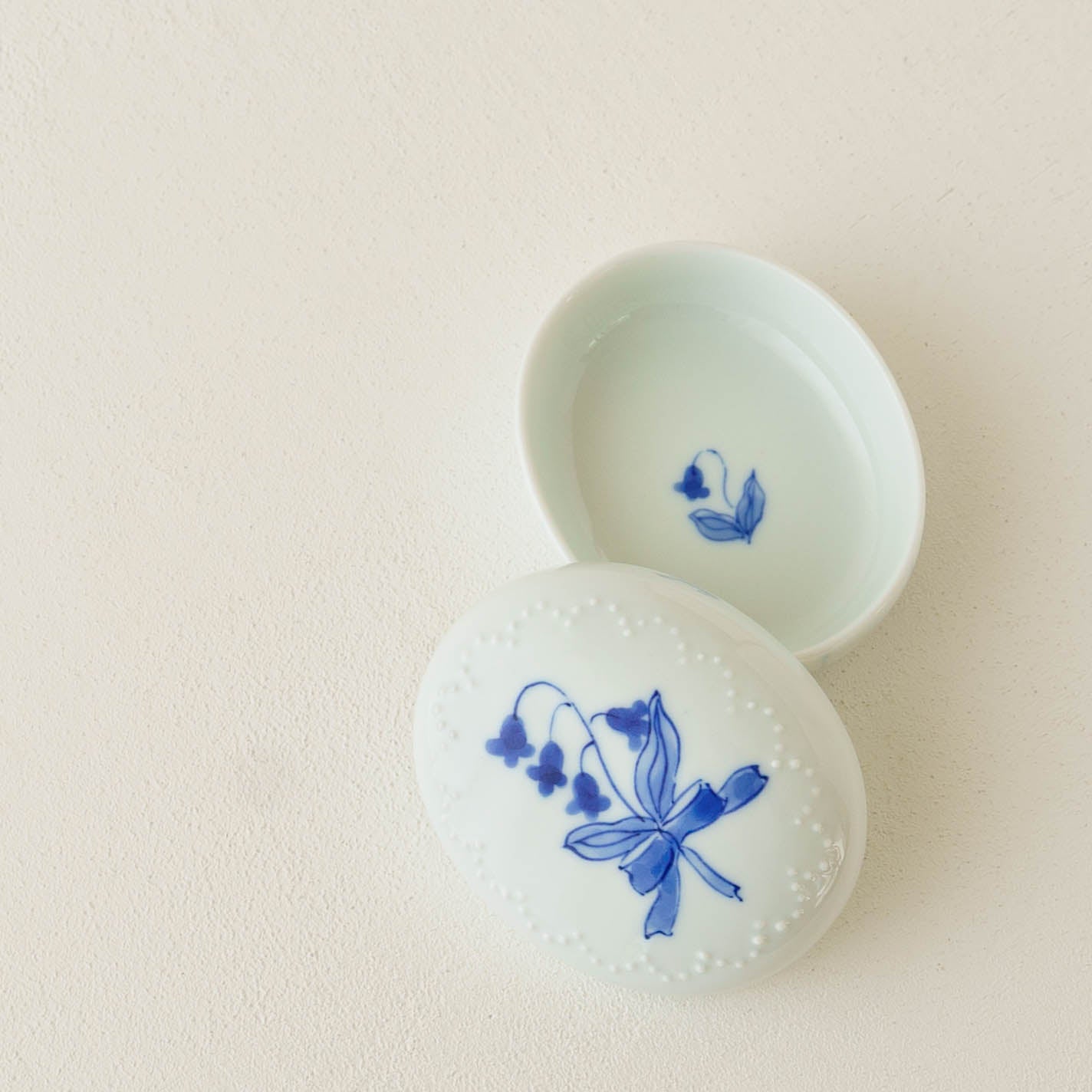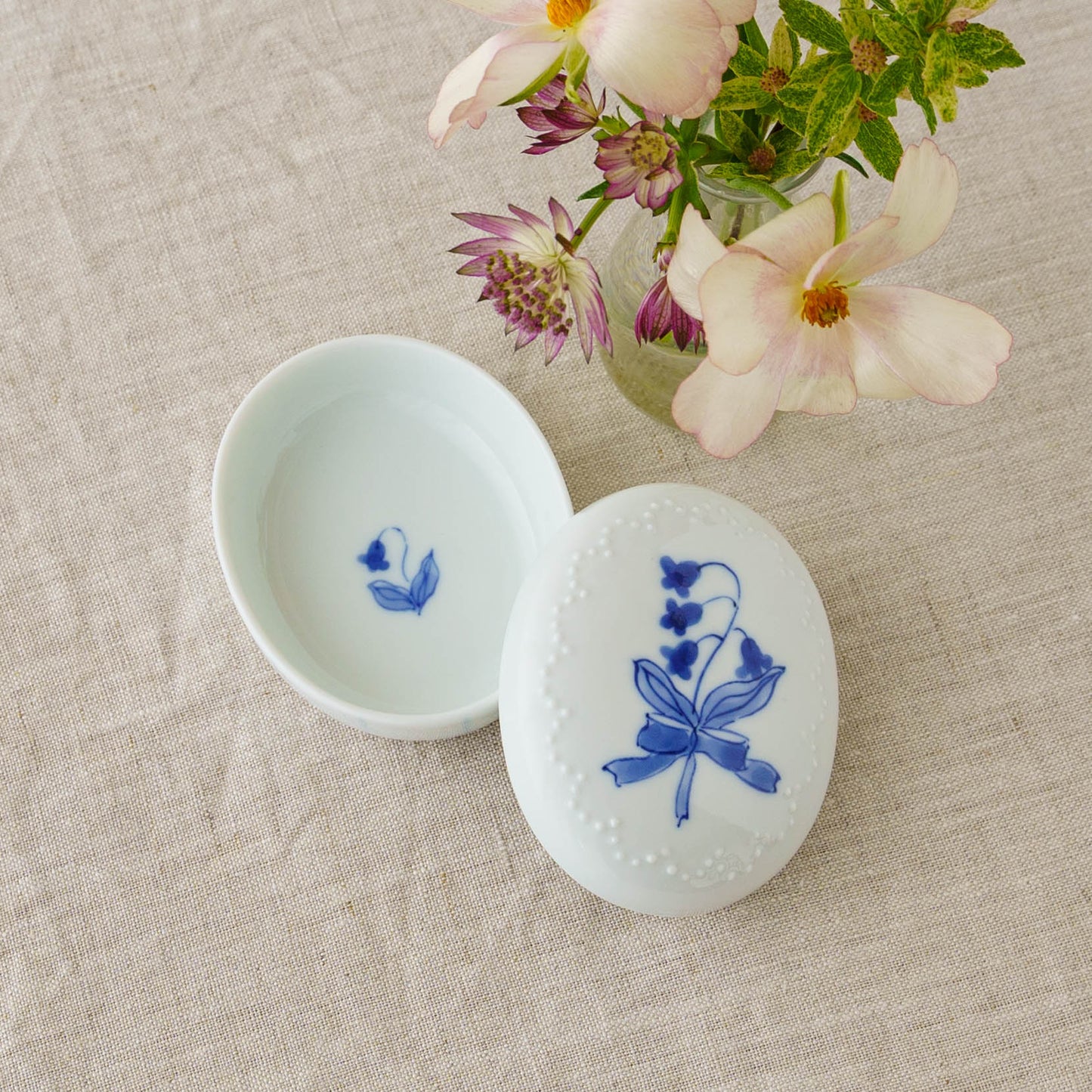 ボンボニエールとは、フランス語でボンボン(砂糖菓子)を入れる菓子器のこと。ヨーロッパでは子どもの誕生祝いやご結婚などお祝い事に幸せを願って贈られています。幸せを運んでくれるすずらんの絵柄と相まって、そこに置いてあるだけで幸せに包まれます。