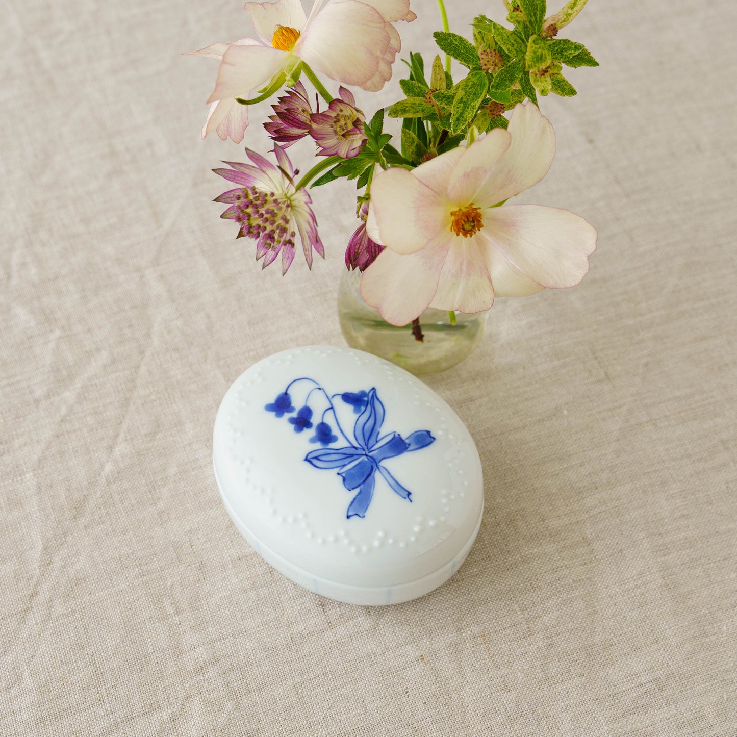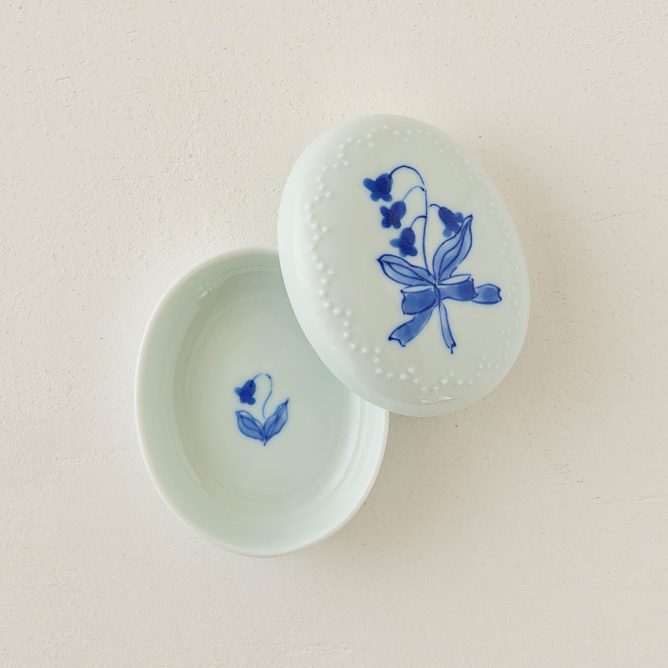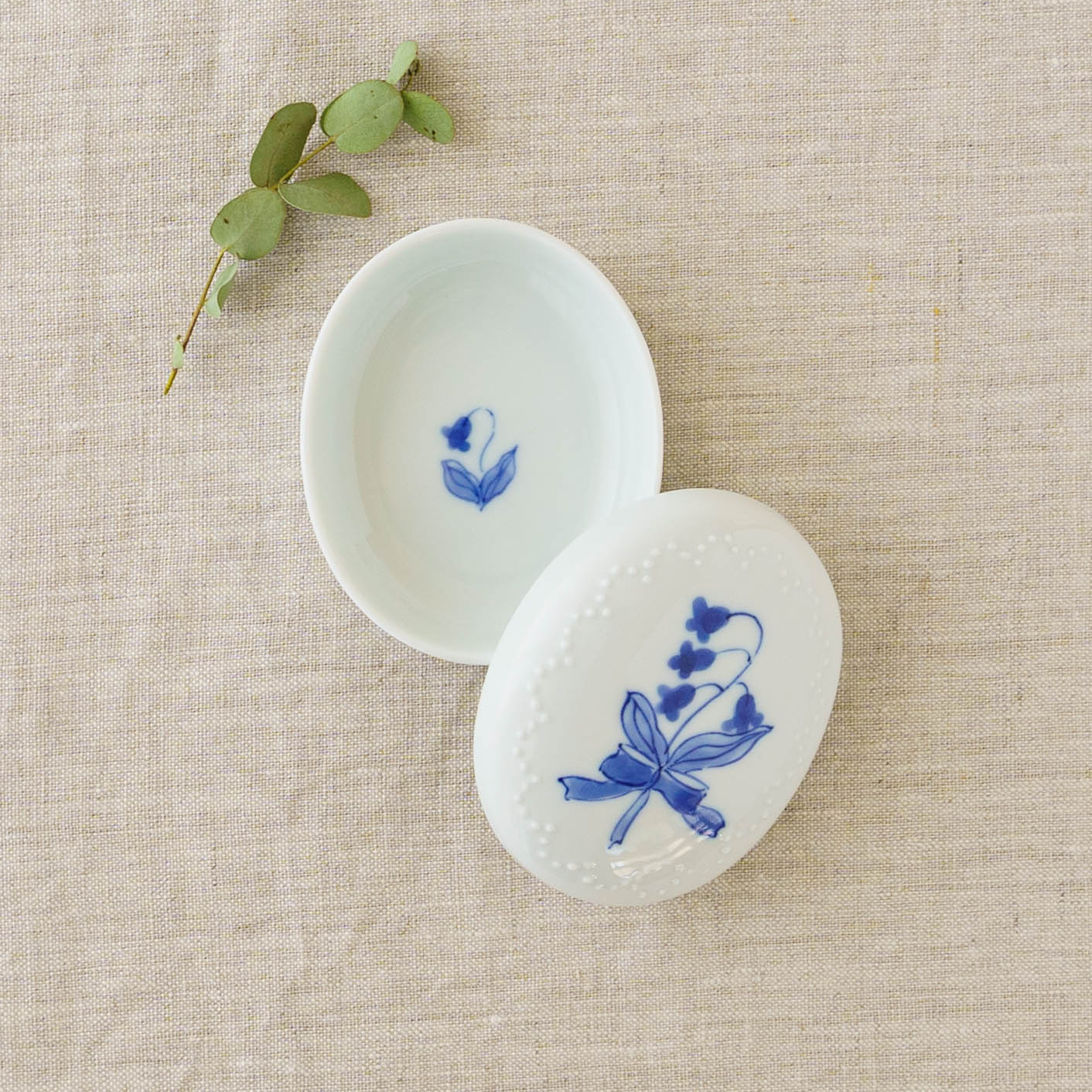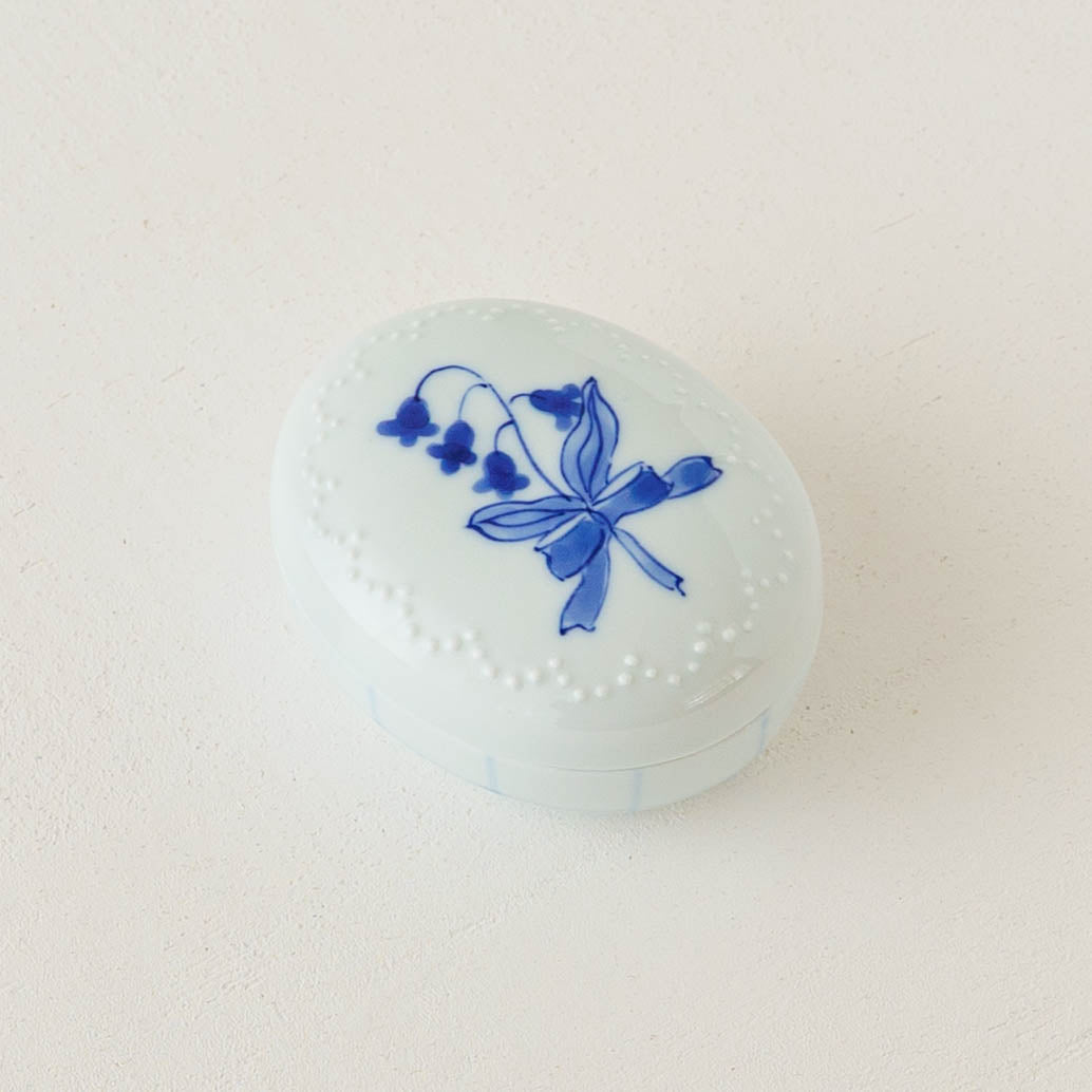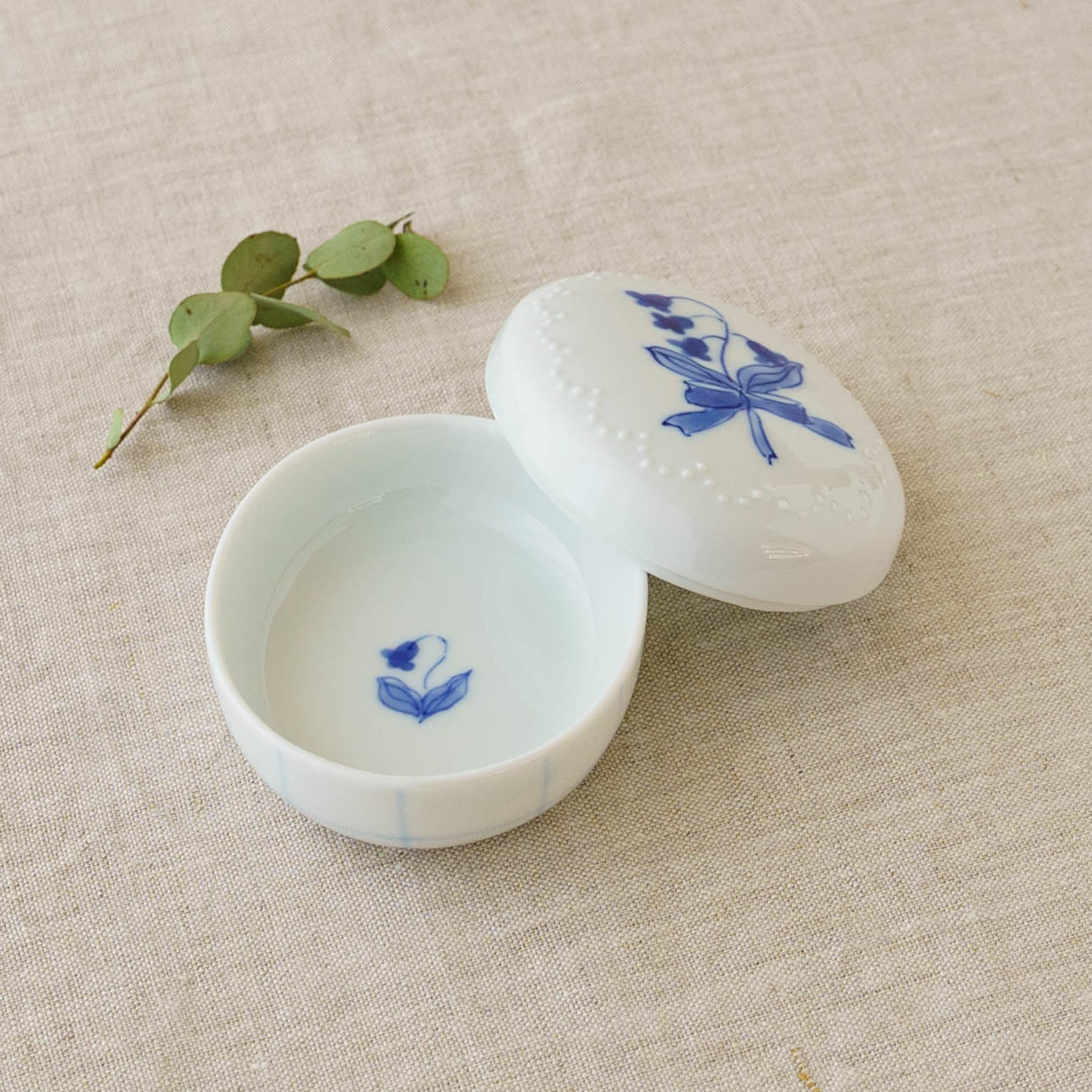 ボンボニエールとは、フランス語でボンボン(砂糖菓子)を入れる菓子器のこと。ヨーロッパでは子どもの誕生祝いやご結婚などお祝い事に幸せを願って贈られています。幸せを運んでくれるすずらんの絵柄と相まって、そこに置いてあるだけで幸せに包まれます。
