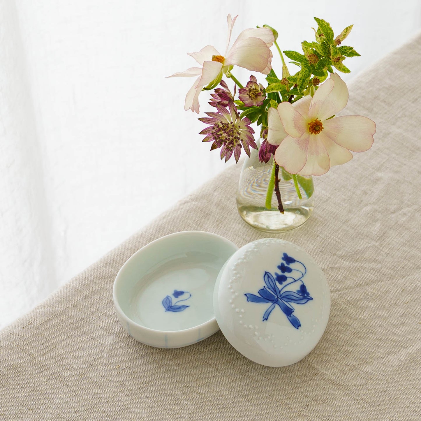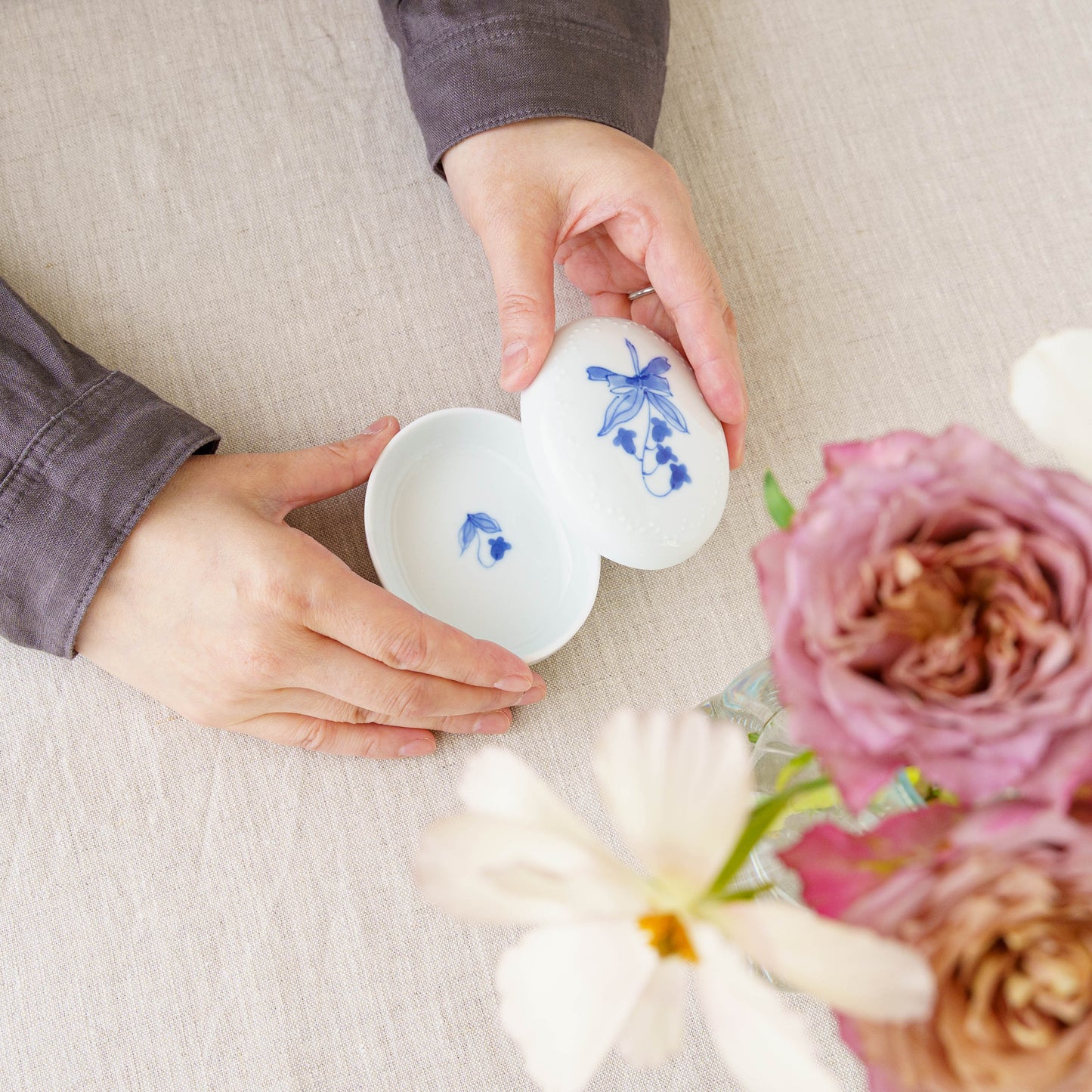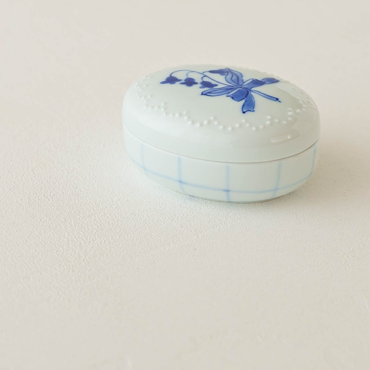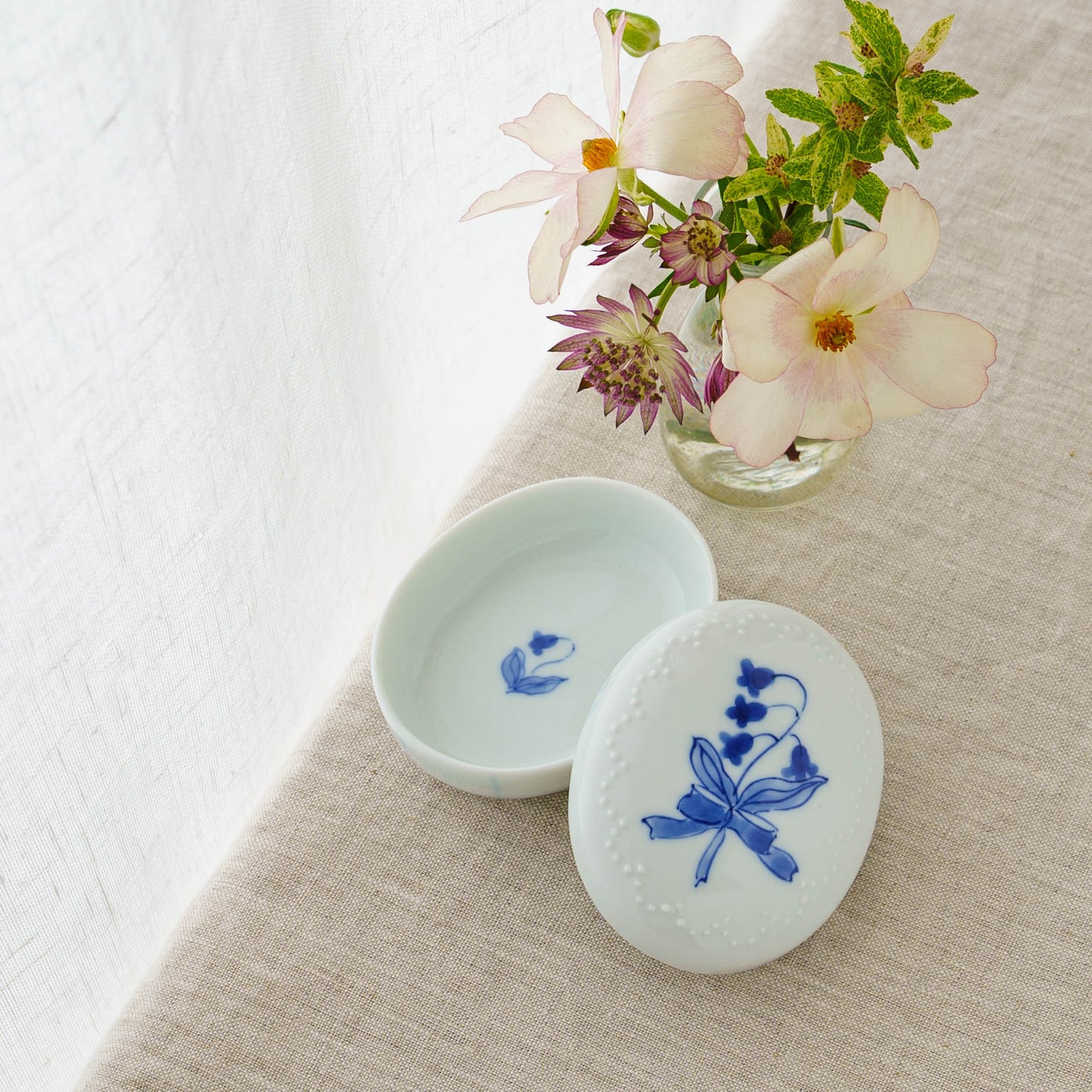 ボンボニエールとは、フランス語でボンボン(砂糖菓子)を入れる菓子器のこと。ヨーロッパでは子どもの誕生祝いやご結婚などお祝い事に幸せを願って贈られています。幸せを運んでくれるすずらんの絵柄と相まって、そこに置いてあるだけで幸せに包まれます。