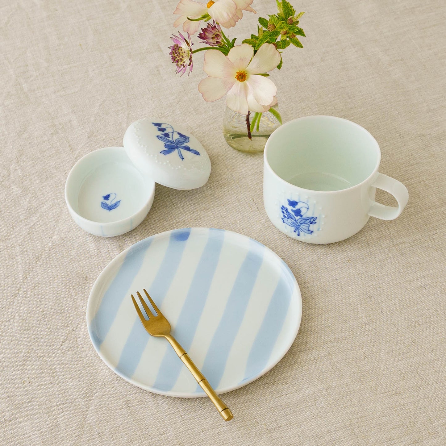 ひとつひとつフリーハンドで描かれているので、少し太目や細目の線や呉須の濃淡、掠れなど味わい深く手仕事ならではの温もりを感じさせてくれます。