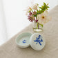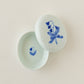 染付とは、白色の素地に呉須(ゴス)という酸化コバルトを主原料とした顔料を使い文様を描き、ガラス質の顔料をかけて焼成し、文様を藍色に発色したもの。美しい白と藍色に心を奪われます。