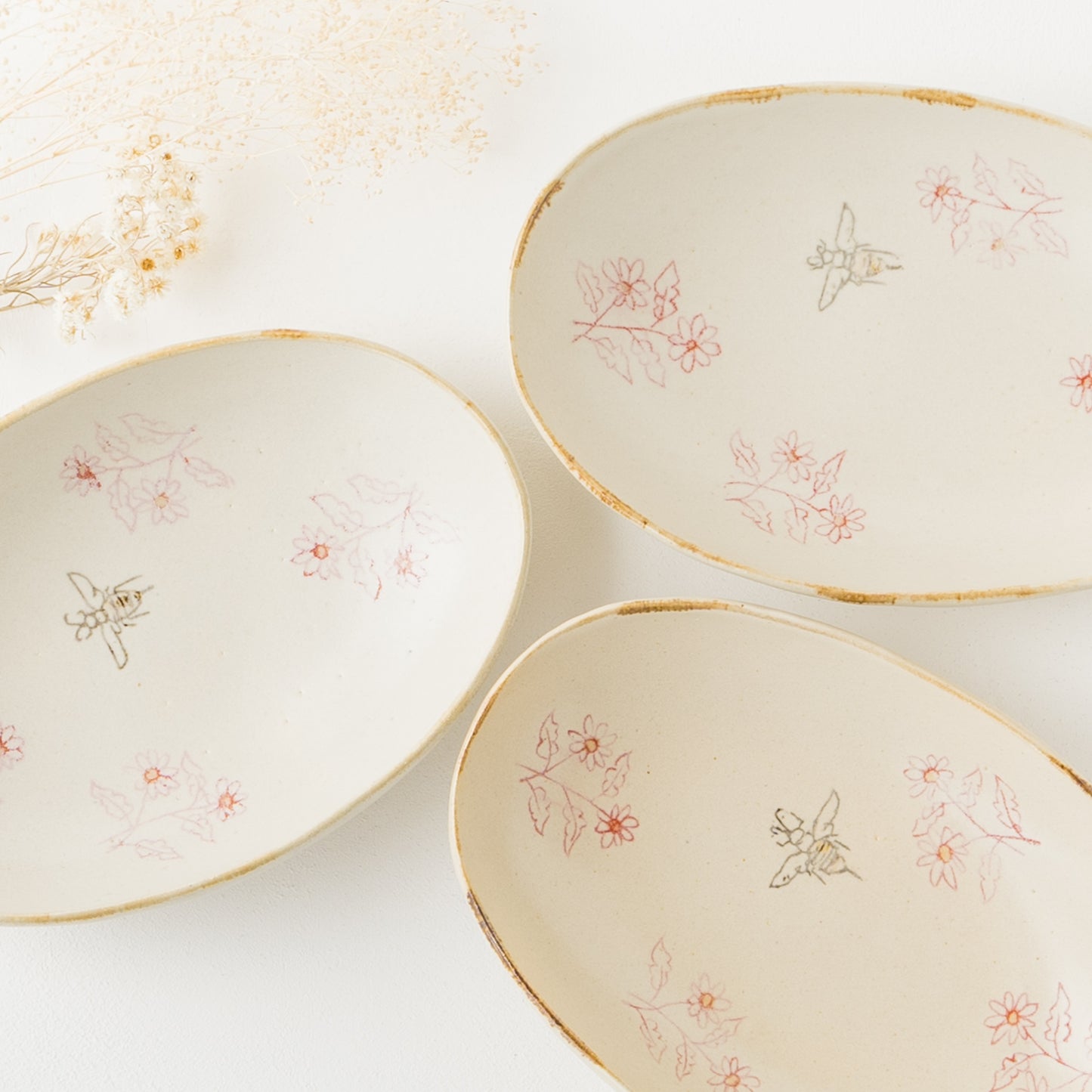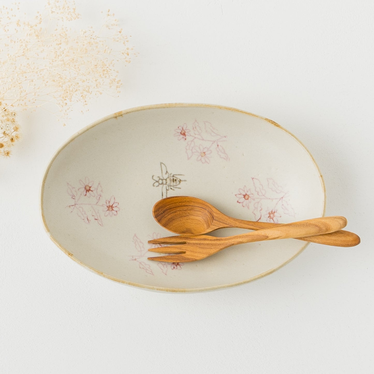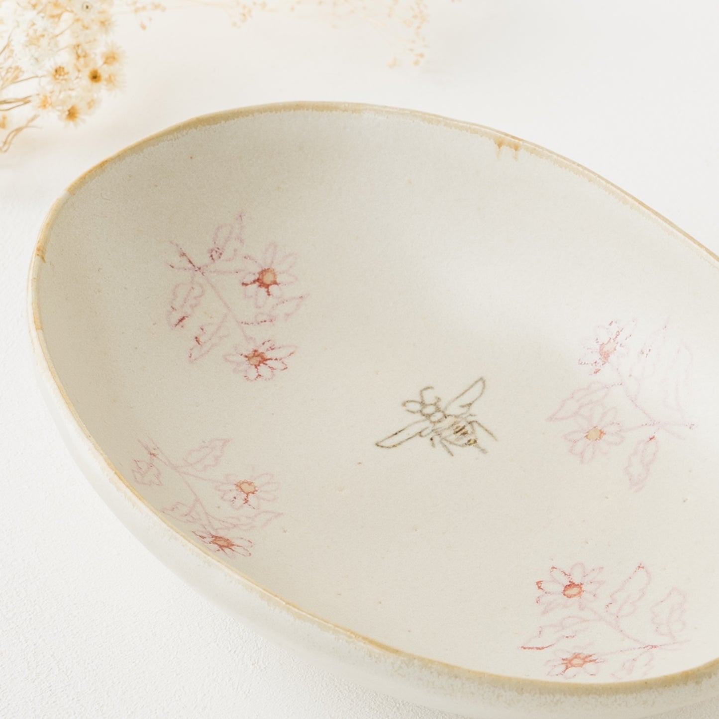 絵付けのうつわは食卓をぱっと明るく楽しい気持ちにしてくれます。お料理を盛り付けても味わい深い縁がお料理を引き立ててくれ、食事が進んでいくと絵付けが顔を出してくるので、ほっこりやさしい気持ちにしてくれます。