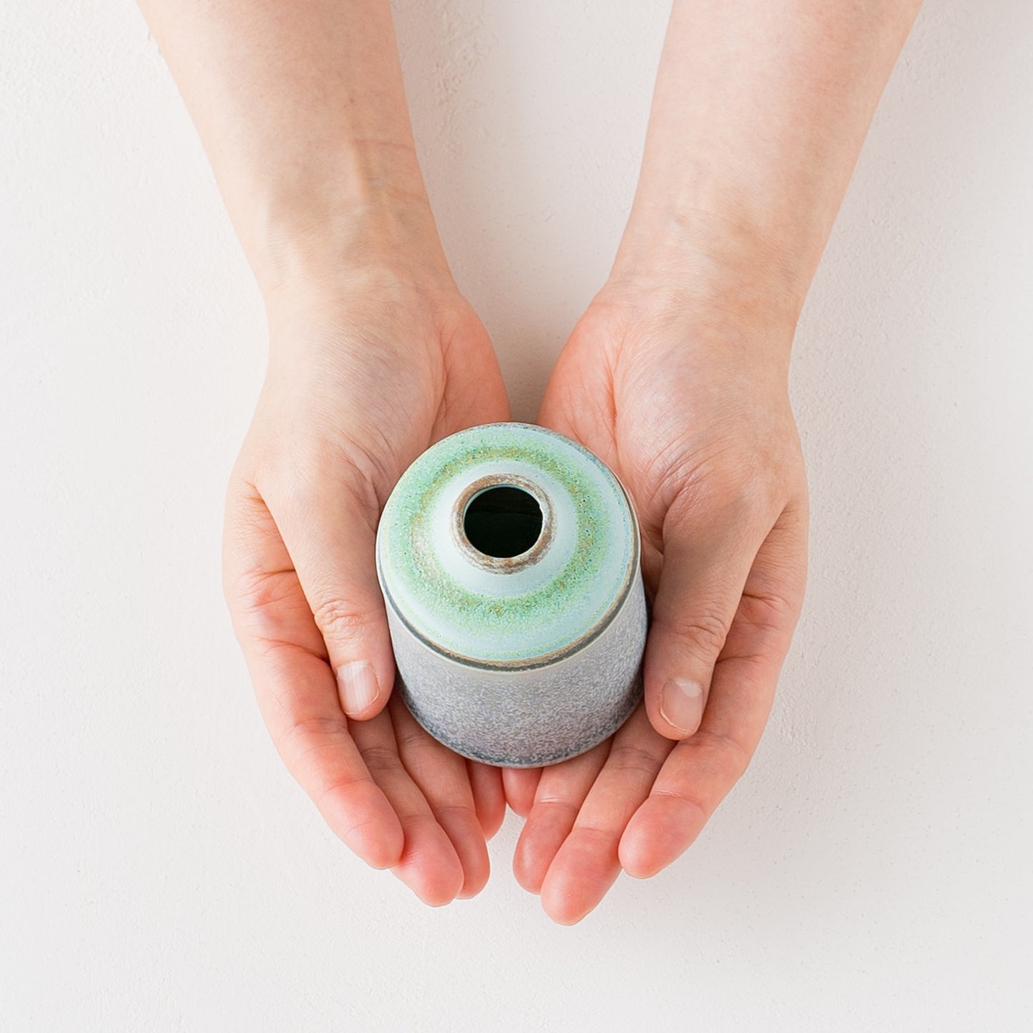 その日、その時の気分によって模様や形、色など少し変えて作成しているため、どの花器もふたつとして同じものはないオンリーワン。ひとつひとつの表情の違いに手仕事の魅力が感じられます。