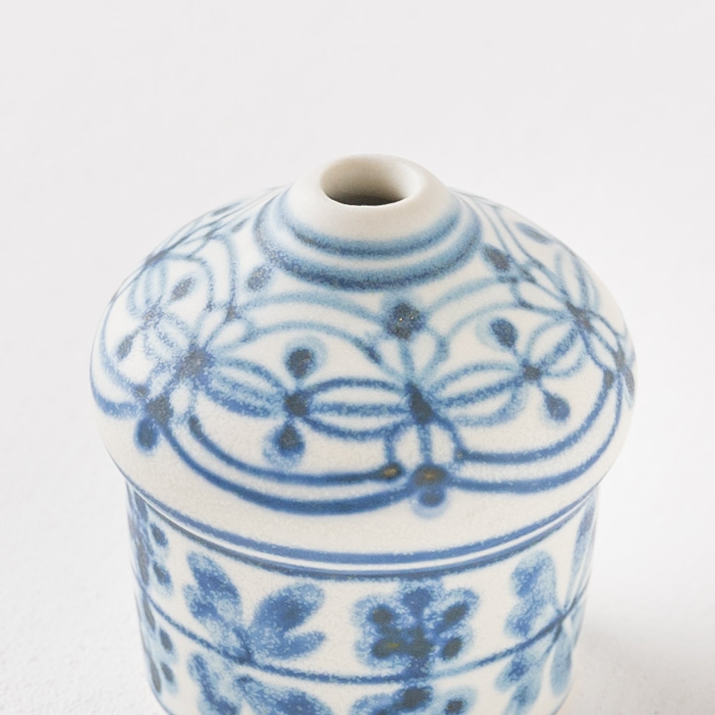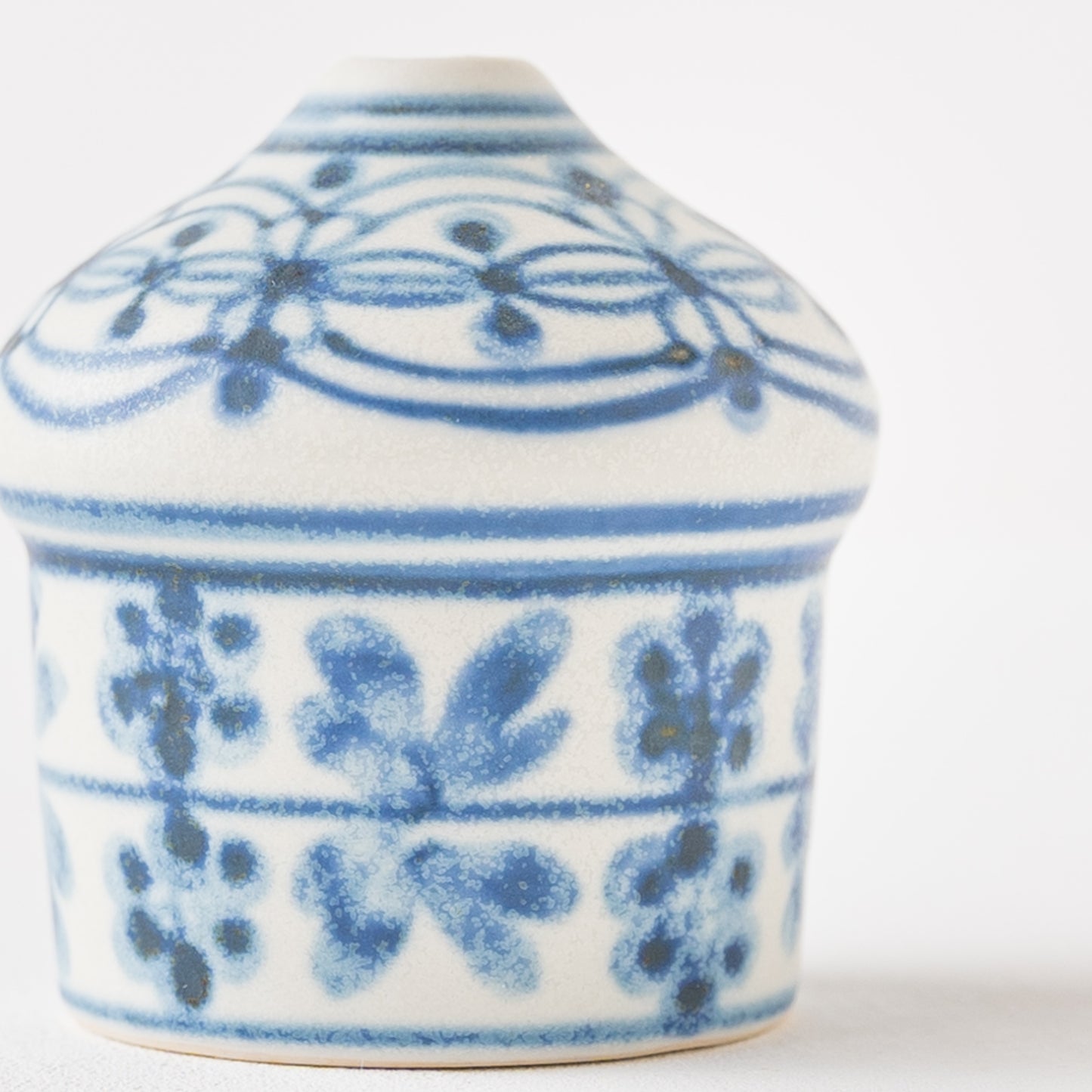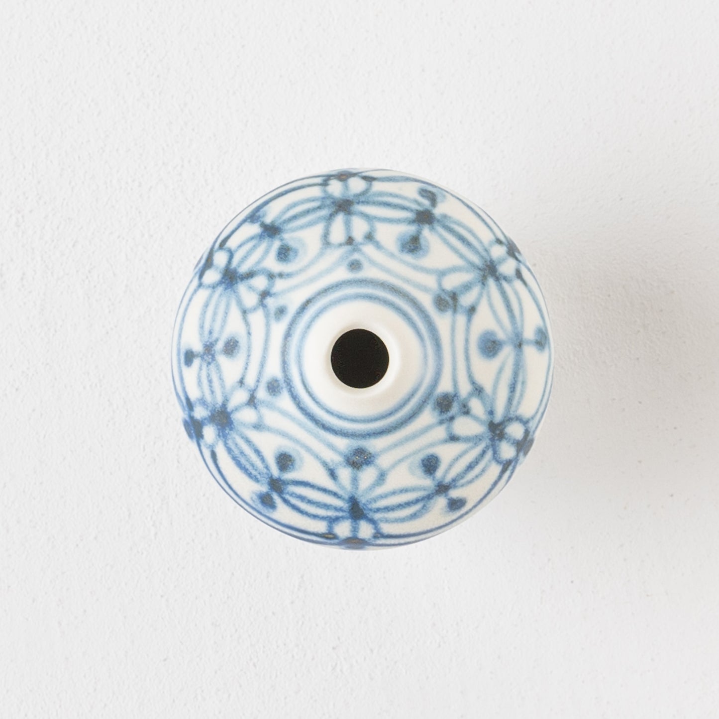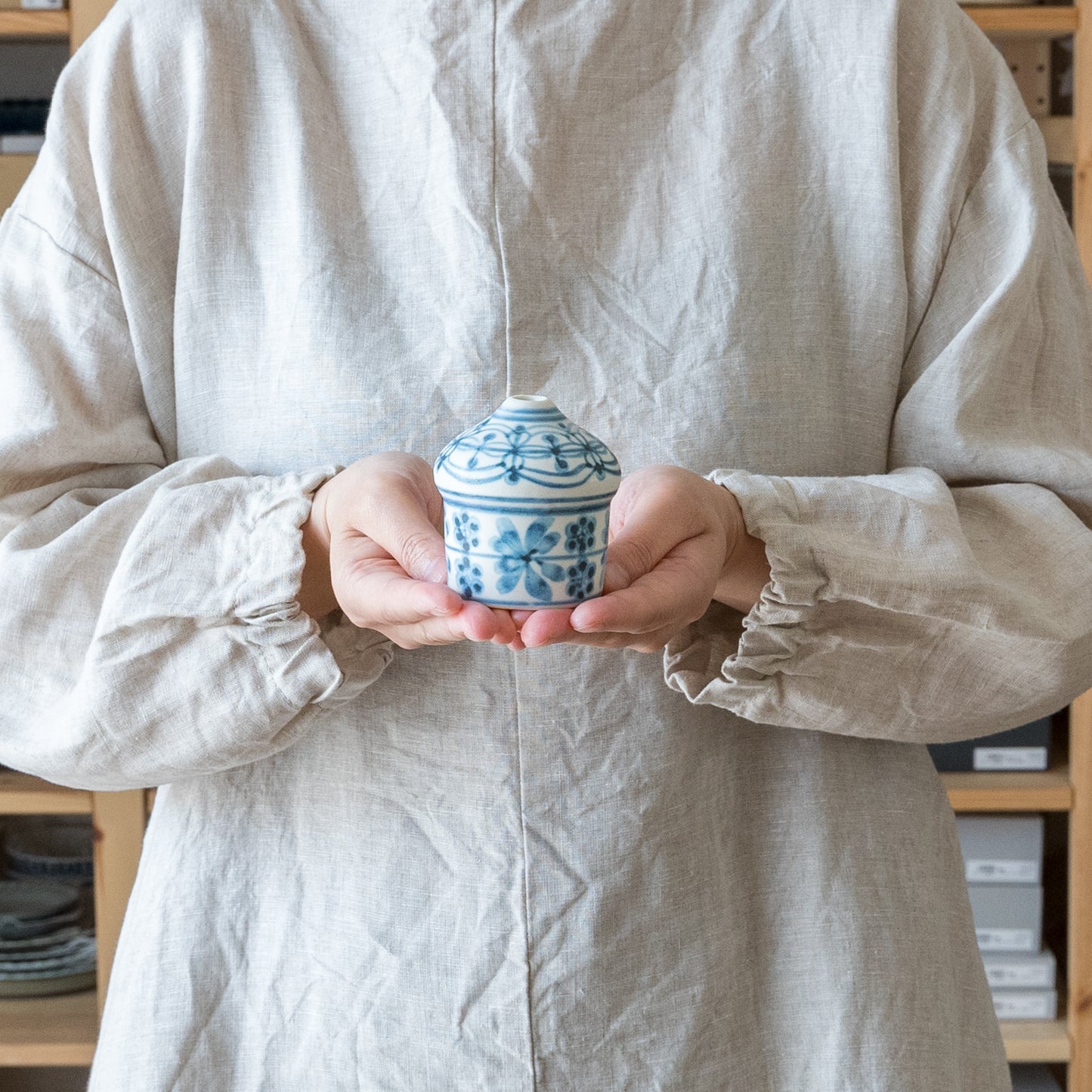自由なスタイルでお花や葉っぱの数や形、また模様を少し変えて描くようにしているため、どの花器もふたつとして同じ模様はないオンリーワン。ひとつひとつの表情の違いに手仕事の魅力が感じられます。