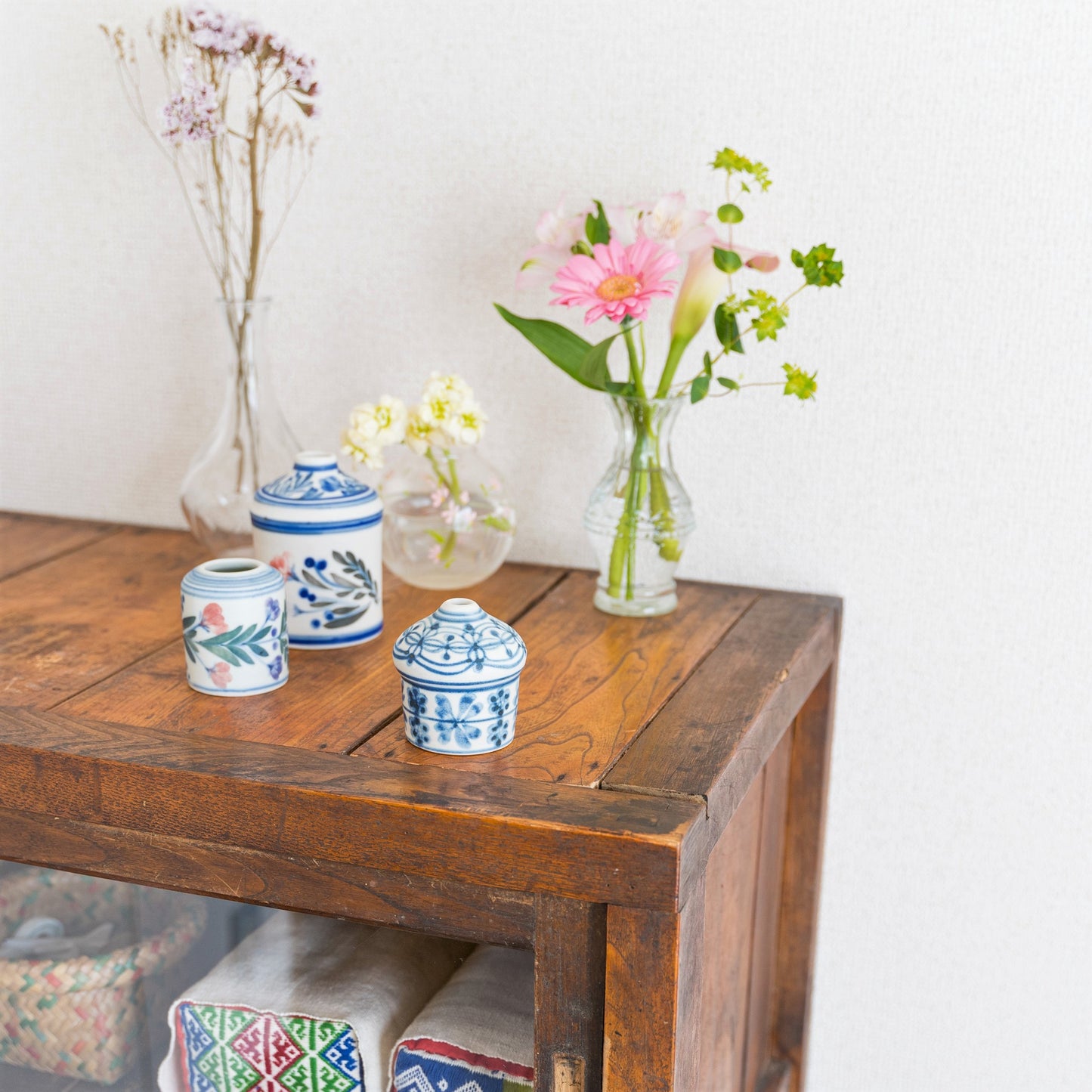 お花を飾るだけでお部屋が華やかで素敵な空間に変わります。季節やその日の気分に合わせてお花だけでなく花器も変えるのもいいですね。小さなサイズなので部屋の片隅や玄関、キッチンなど場所を選ばず置けるので、いろいろな花器にお花を活けて、心なごむ時間を過ごせる毎日に。