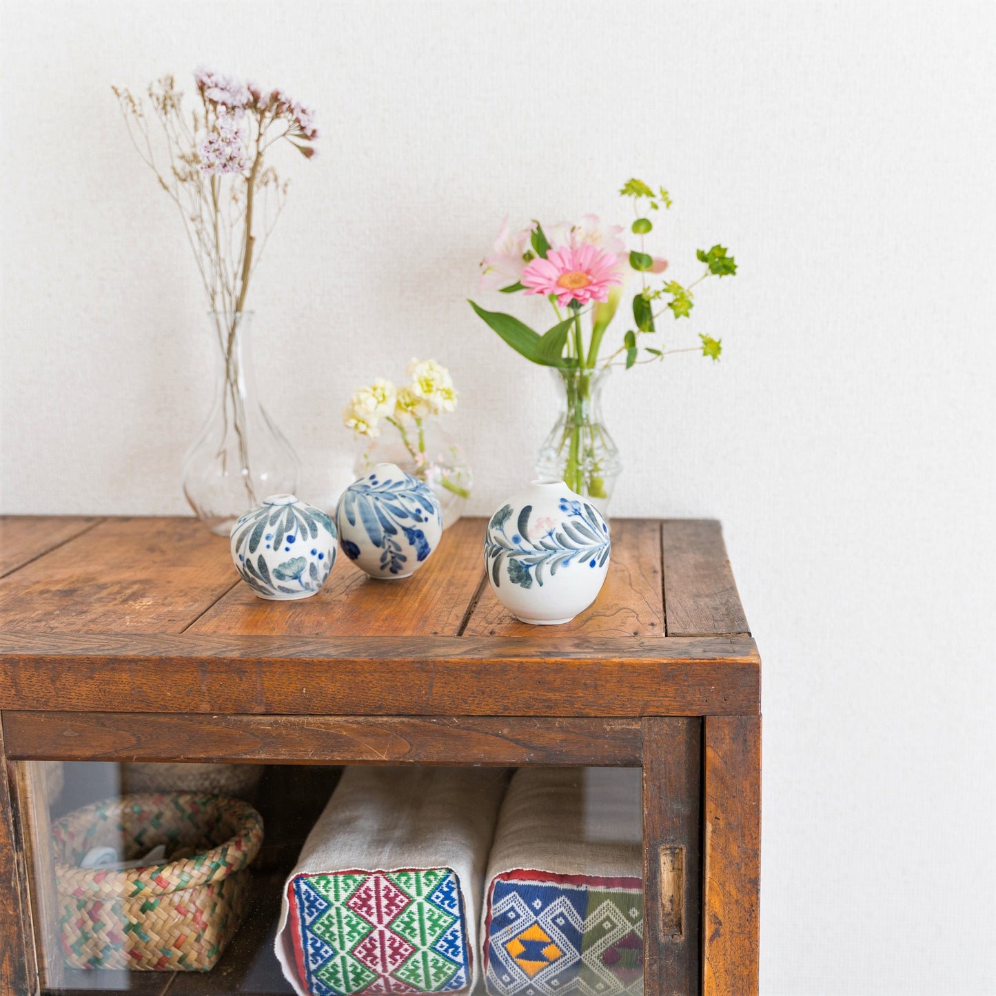 お花を飾るだけでお部屋が華やかで素敵な空間に変わります。季節やその日の気分に合わせてお花だけでなく花器も変えるのもいいですね。小さなサイズなので部屋の片隅や玄関、キッチンなど場所を選ばず置けるので、いろいろな花器にお花を活けて、心なごむ時間を過ごせる毎日に。