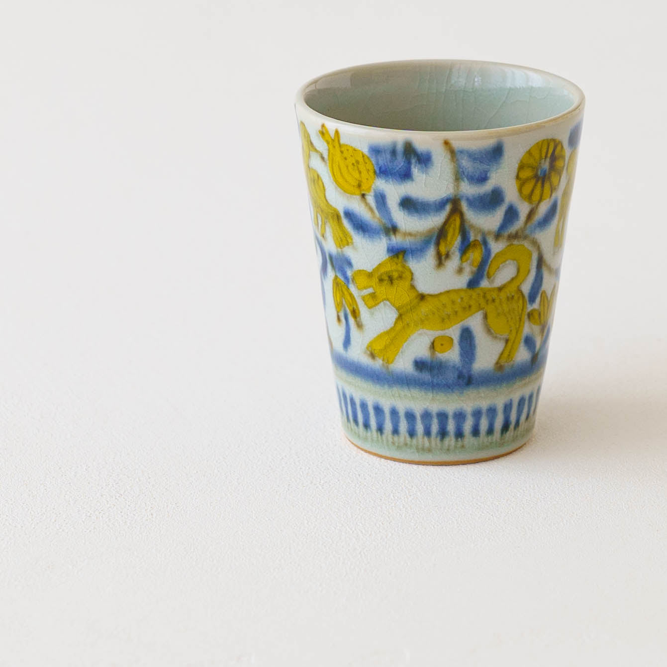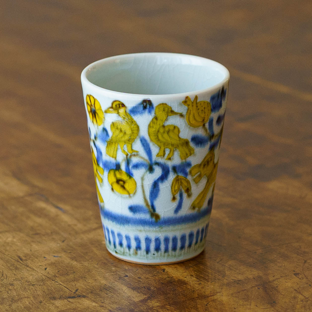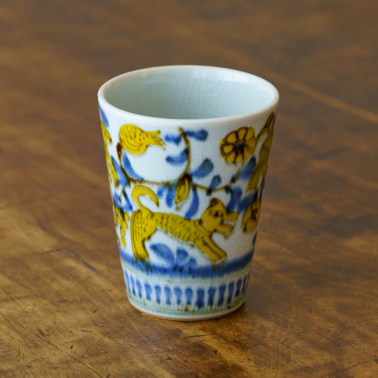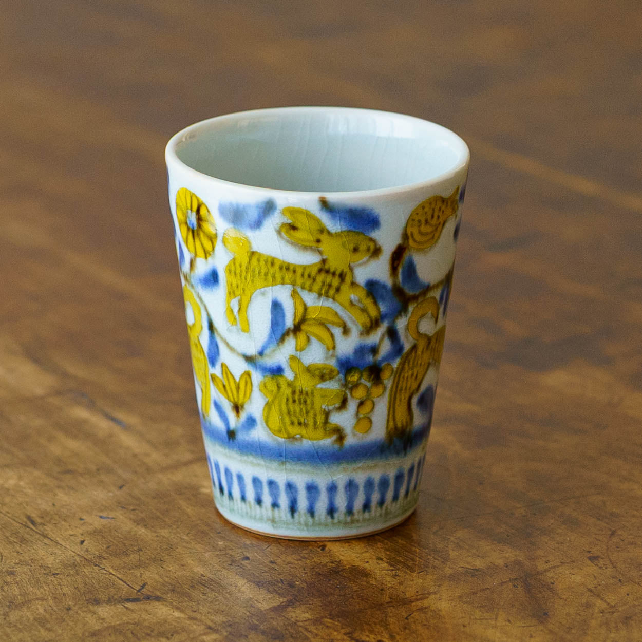 センス溢れるデザイン、絵柄や模様、多彩な色使いは、日本の古い紋様に加え、海外のテキスタイルやタイルなどからもインスパイアされているとのこと。古き良き砥部焼のスタイルと現代的なエッセンスがバランスよく融合され、オリジナリティー溢れる作品を生み出しています。