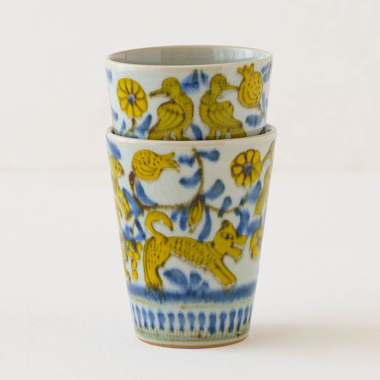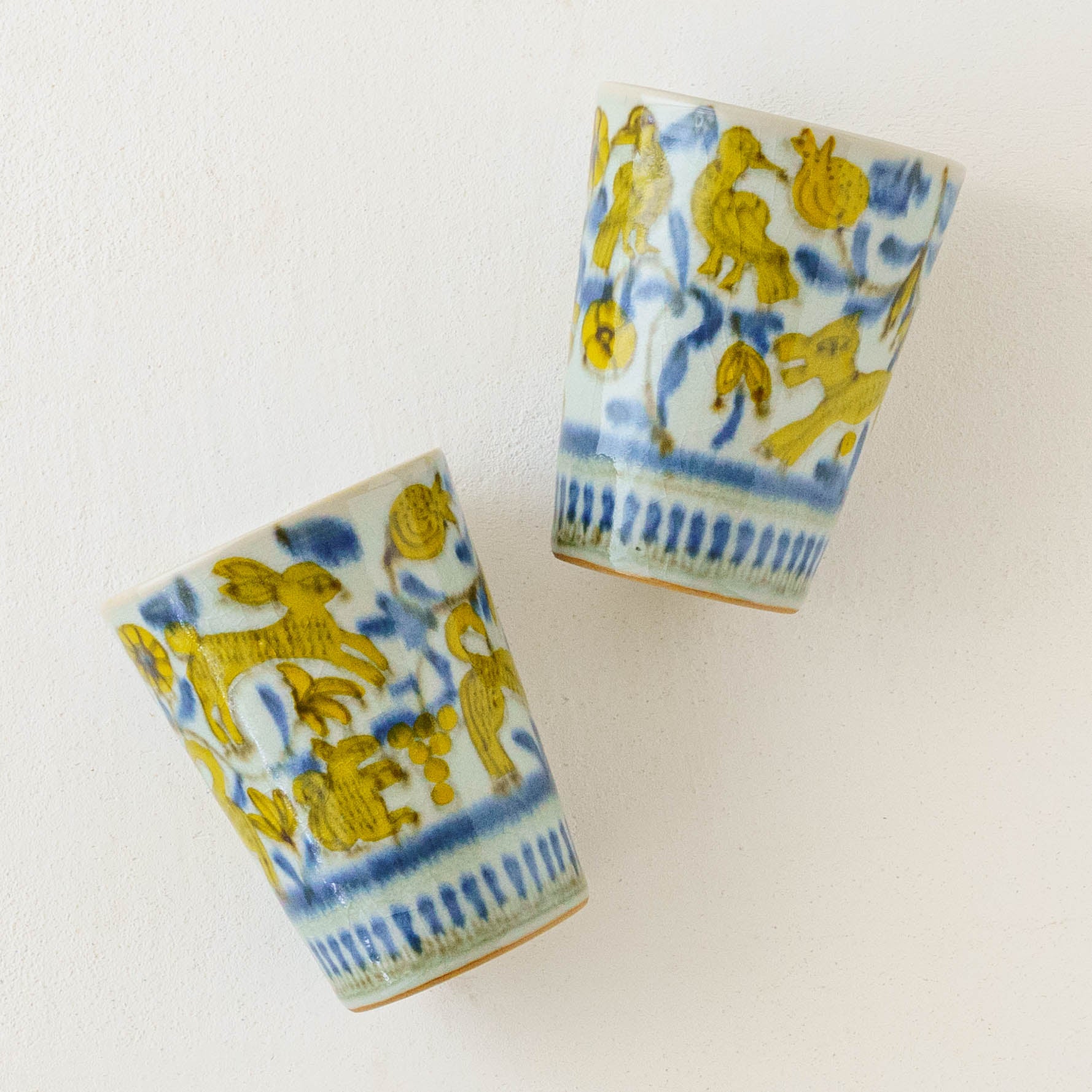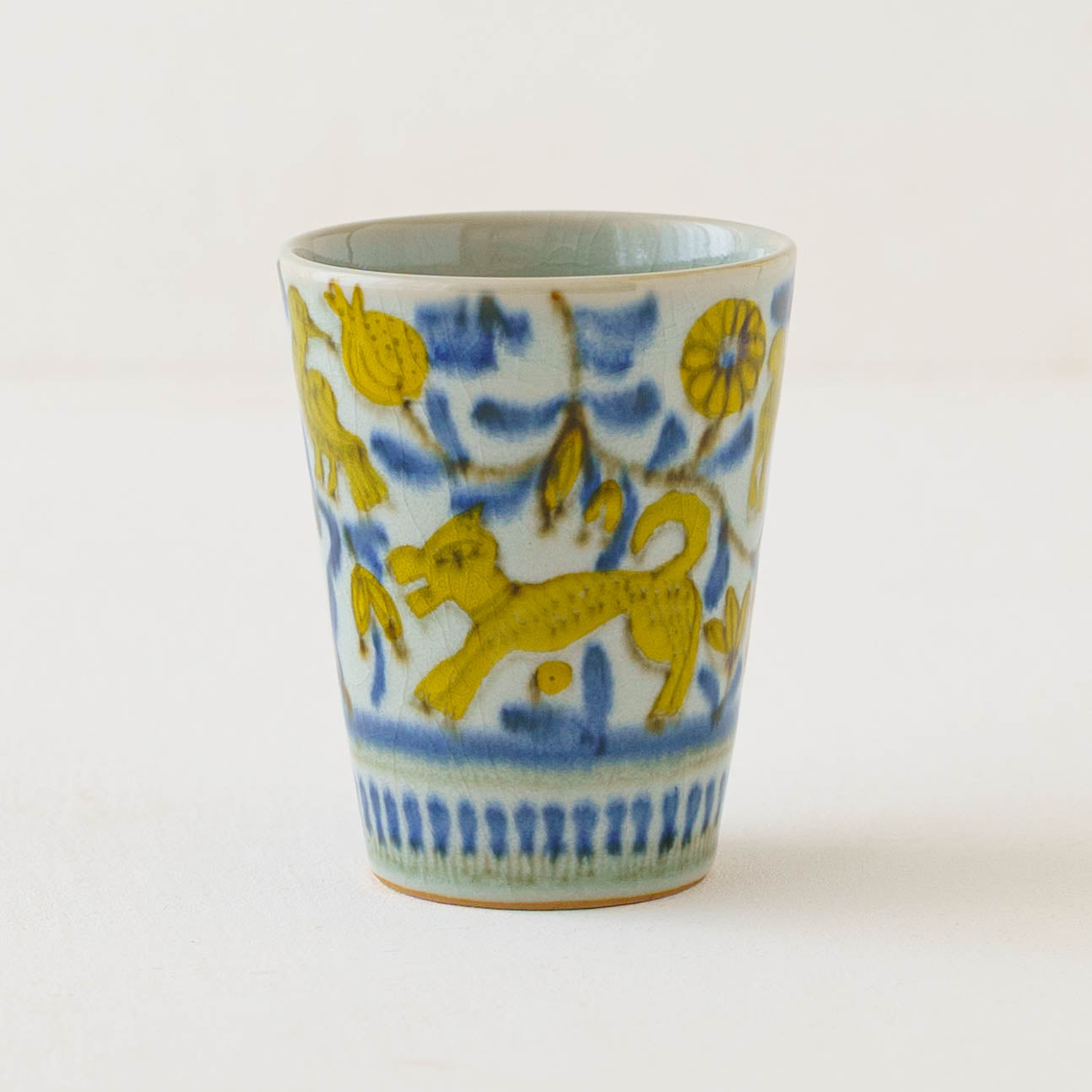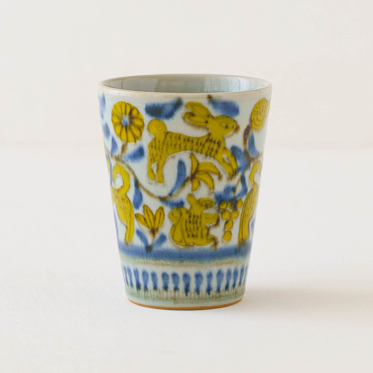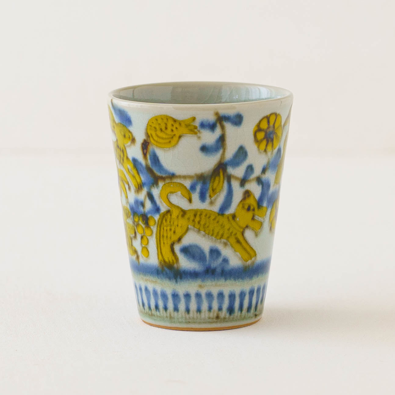 センス溢れるデザイン、絵柄や模様、多彩な色使いは、日本の古い紋様に加え、海外のテキスタイルやタイルなどからもインスパイアされているとのこと。古き良き砥部焼のスタイルと現代的なエッセンスがバランスよく融合され、オリジナリティー溢れる作品を生み出しています。