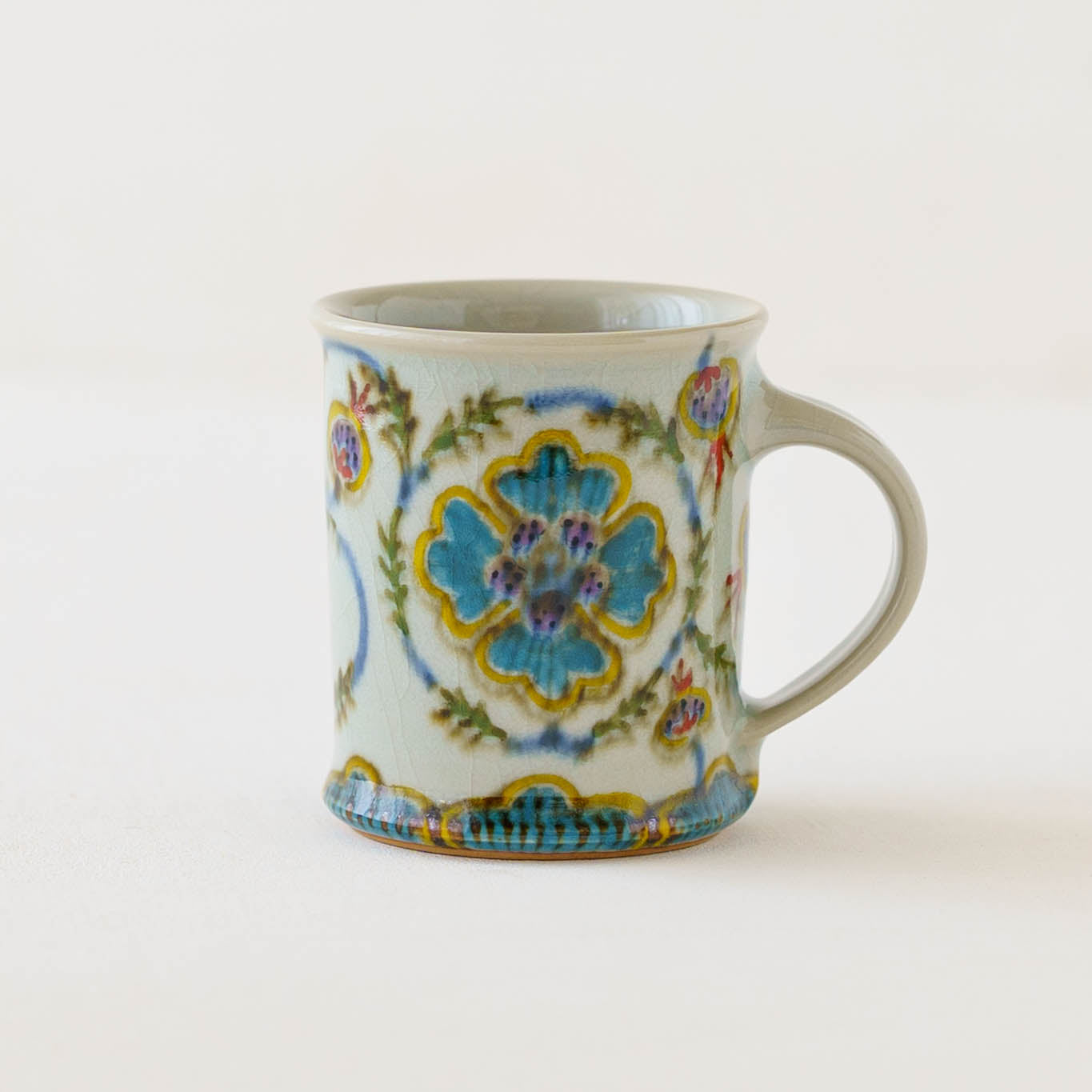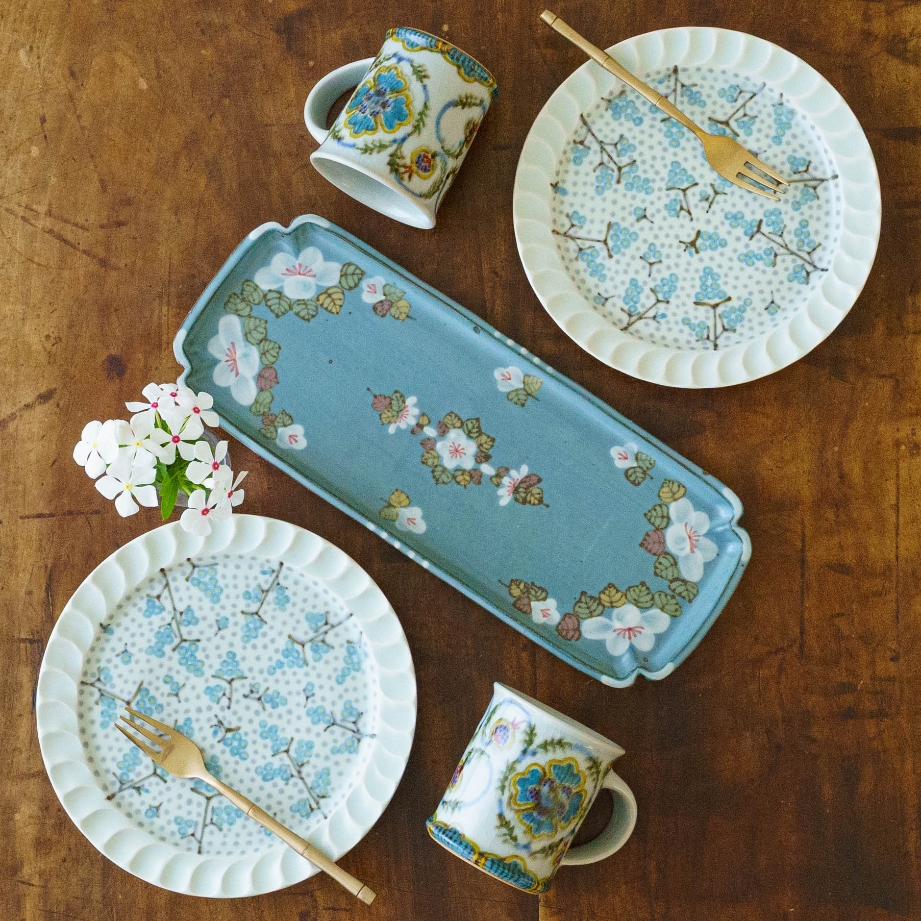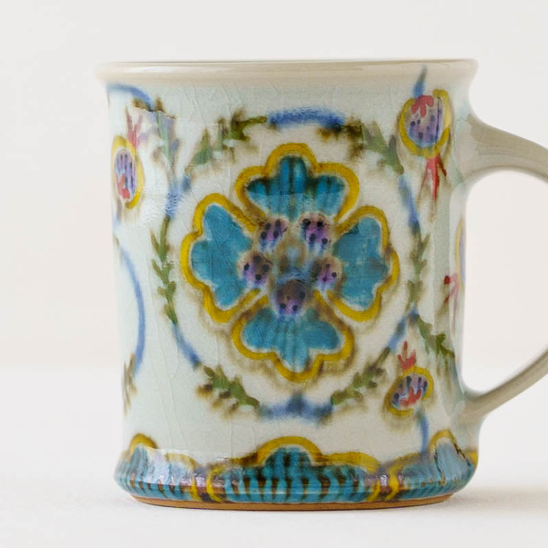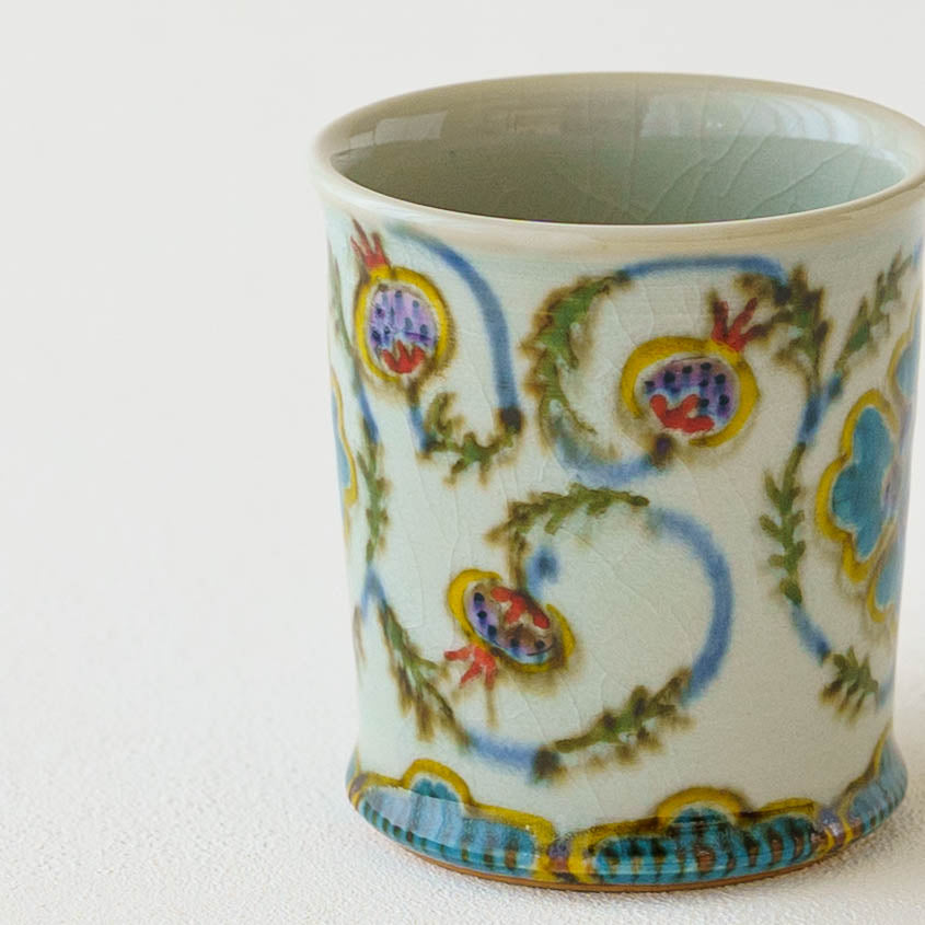 センス溢れるデザイン、絵柄や模様、多彩な色使いは、日本の古い紋様に加え、海外のテキスタイルやタイルなどからもインスパイアされているとのこと。古き良き砥部焼のスタイルと現代的なエッセンスがバランスよく融合され、オリジナリティー溢れる作品を生み出しています。